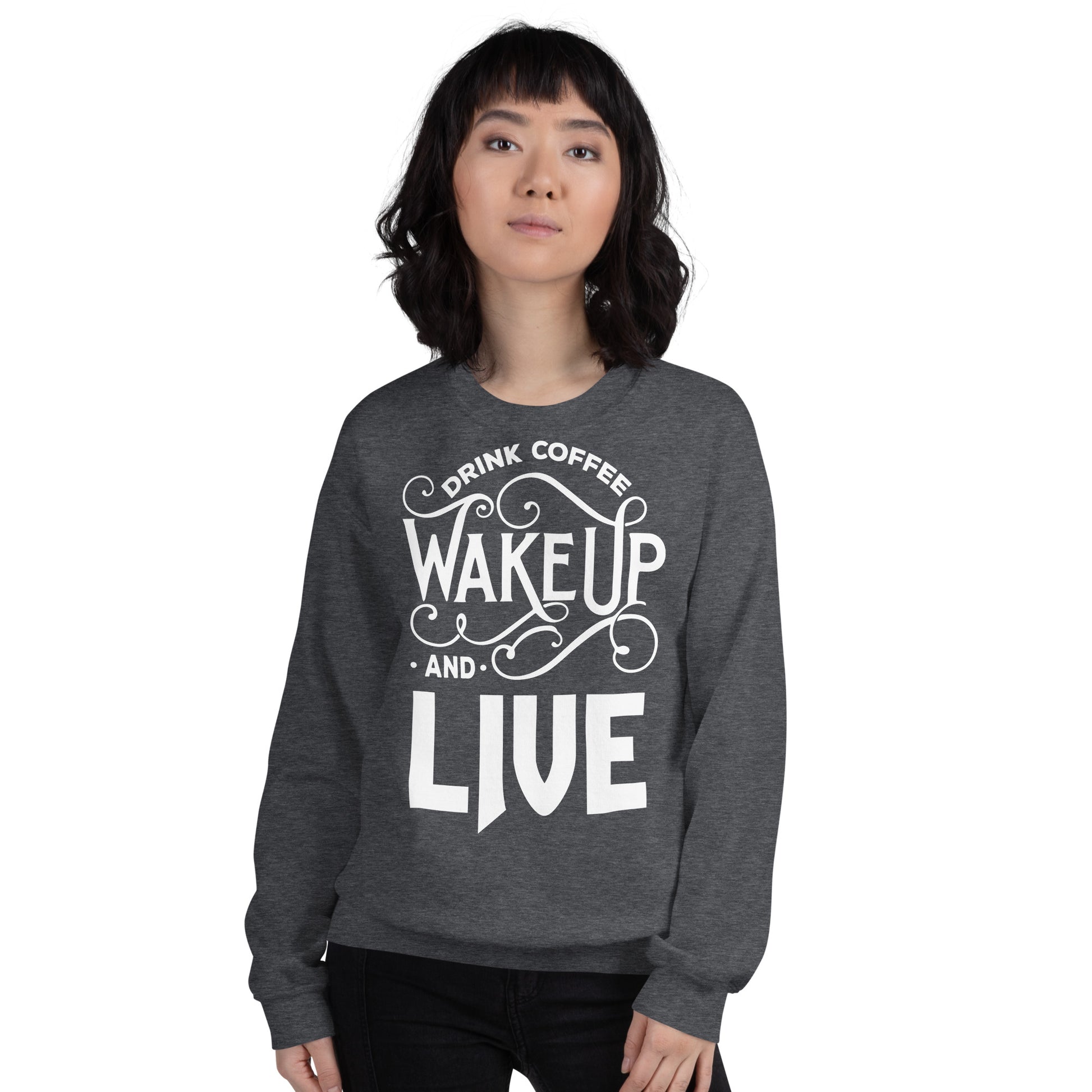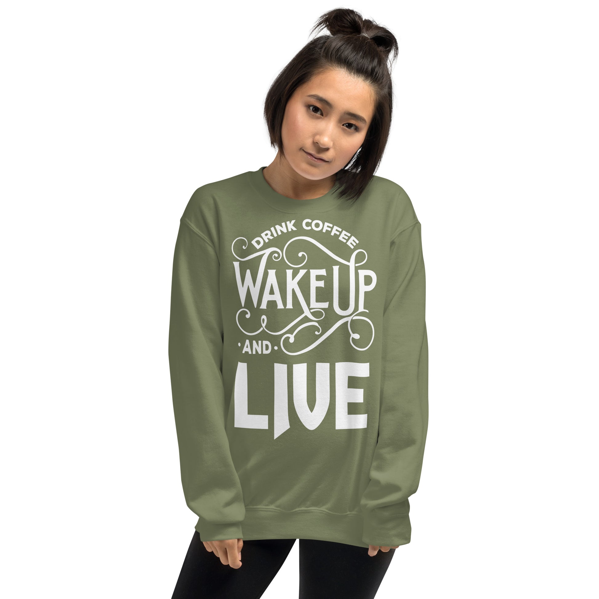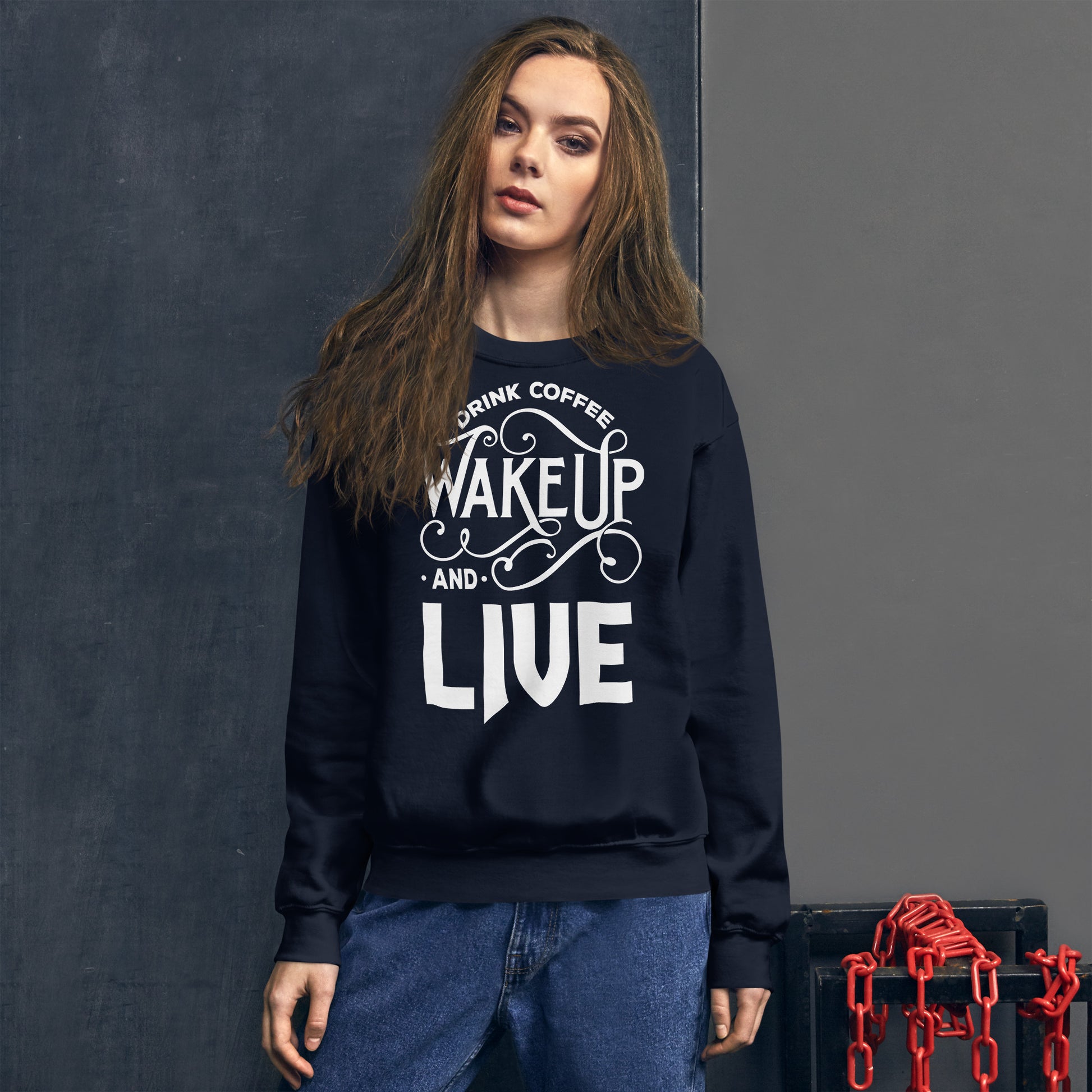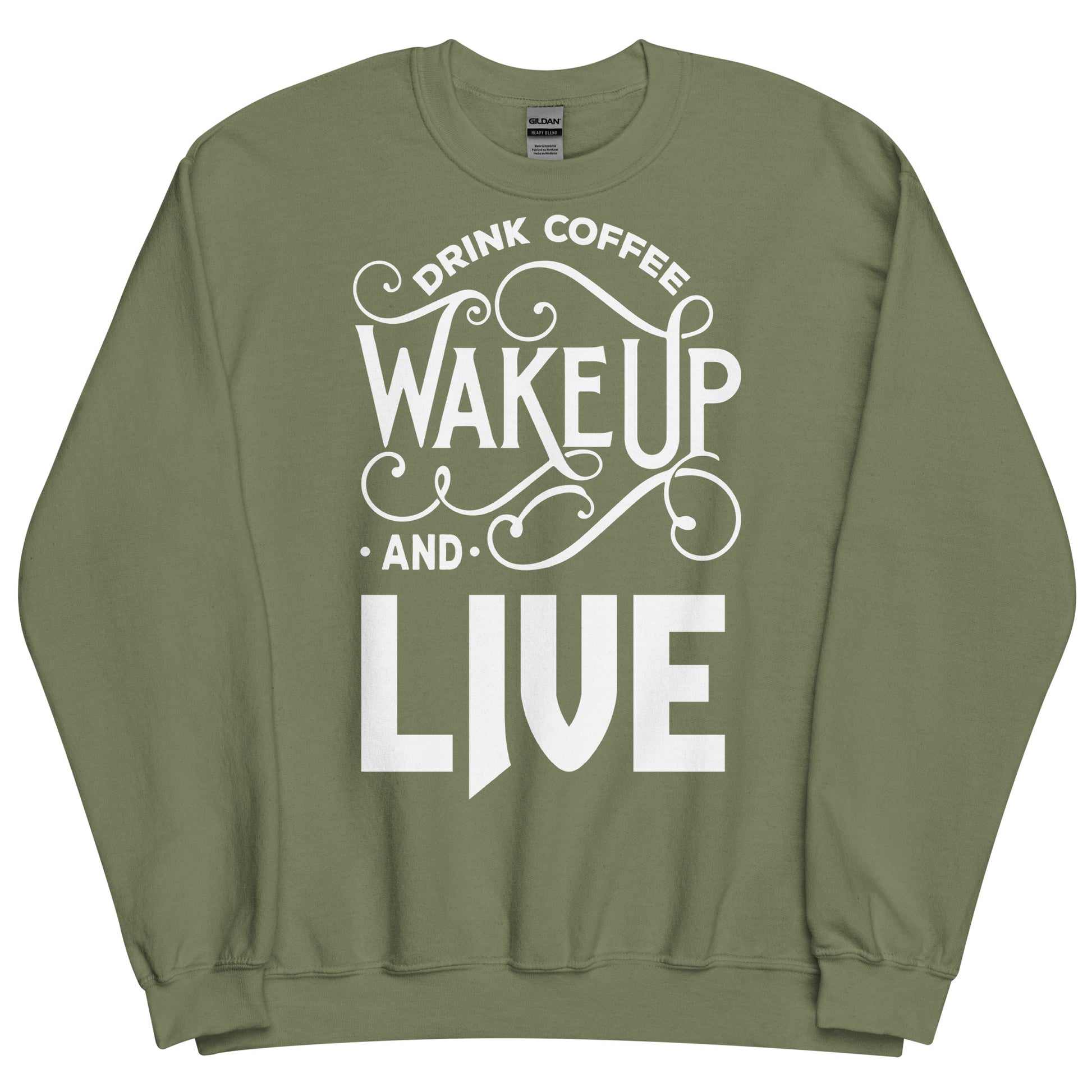 Embrace the mantra that sets the tone for life's grand adventure with our "Livewire Espresso Sweatshirt". This is for the spirited souls who sip their coffee and seize the day, for those who understand that life begins after coffee. With an uplifting message that encourages you to "Drink Coffee, Wake Up, and LIVE", it's not just attire—it's your armor as you charge into the fray of everyday life. This sweatshirt is a cozy reminder to kick start your mornings with a caffeine jolt and live each moment to the fullest. A sturdy and warm sweatshirt bound to keep you warm in the colder months. A pre-shrunk, classic fit sweater that’s made with air-jet spun yarn for a soft feel.