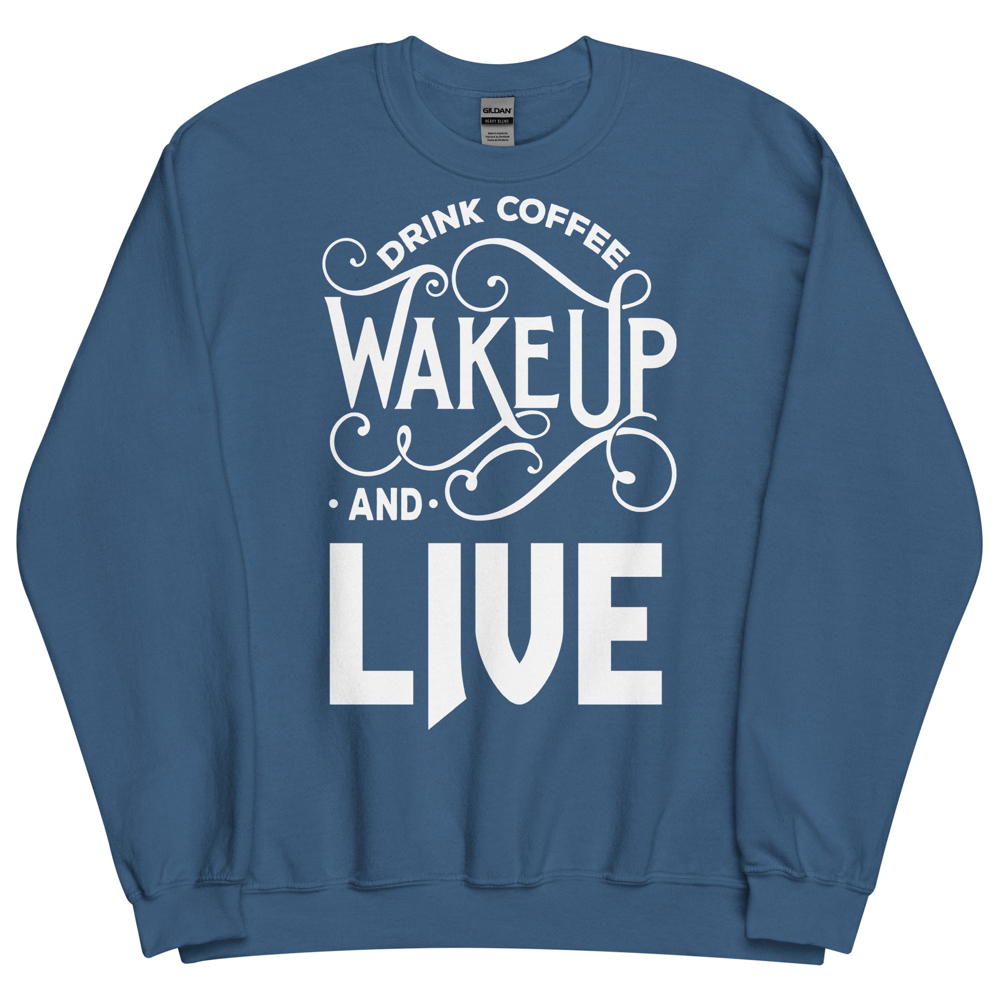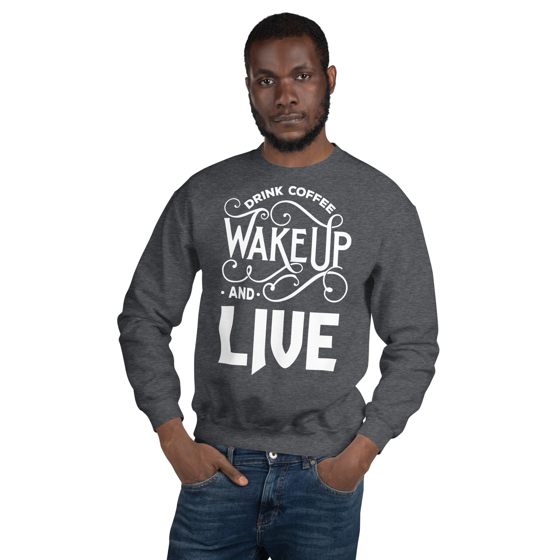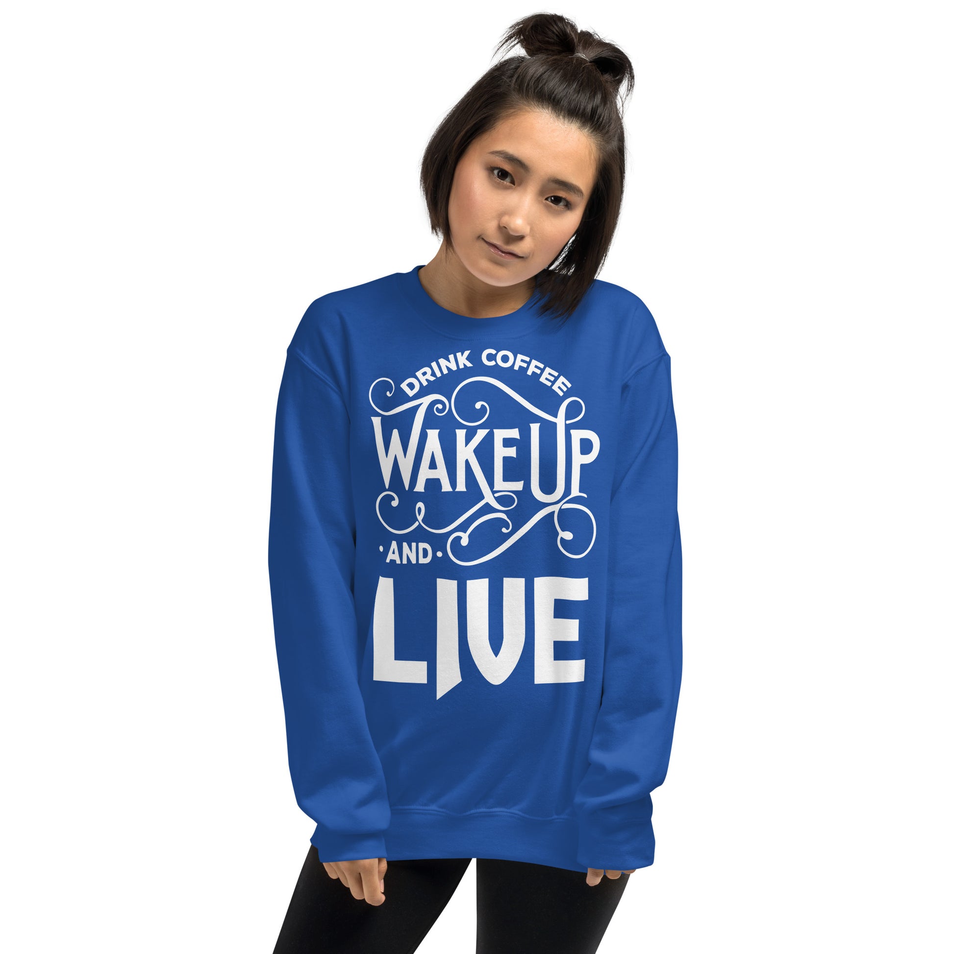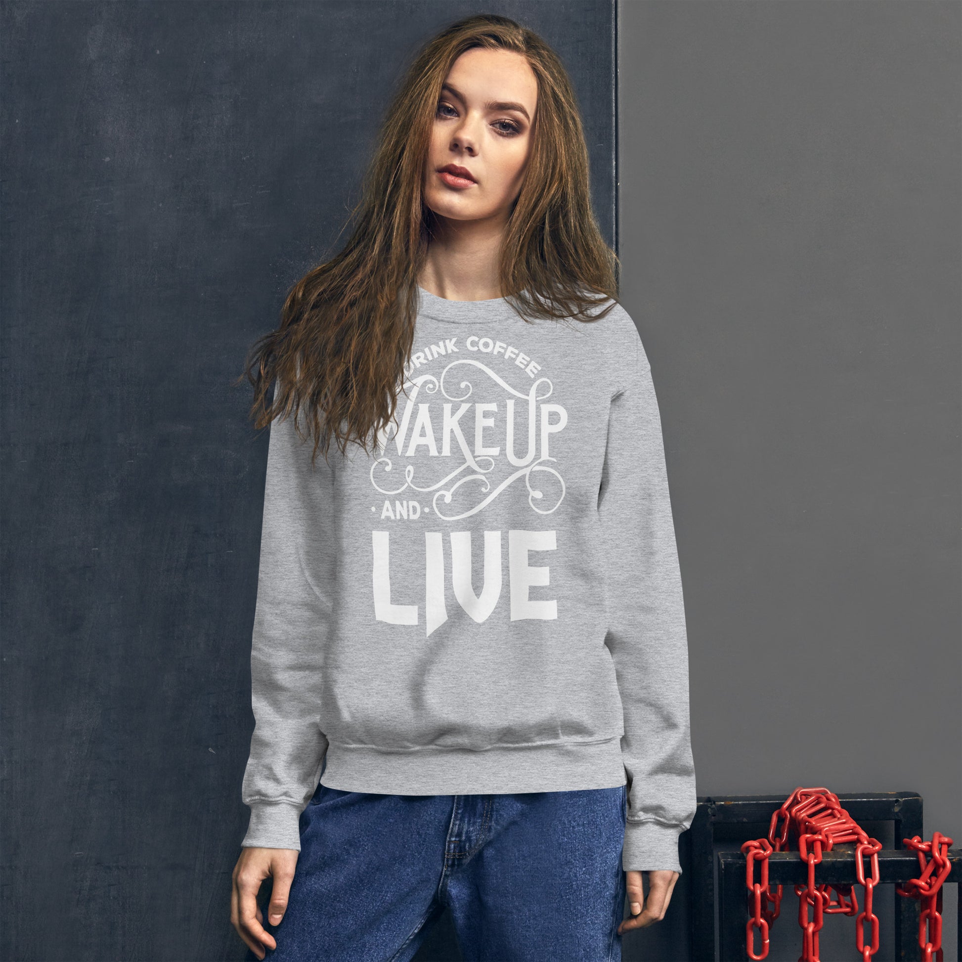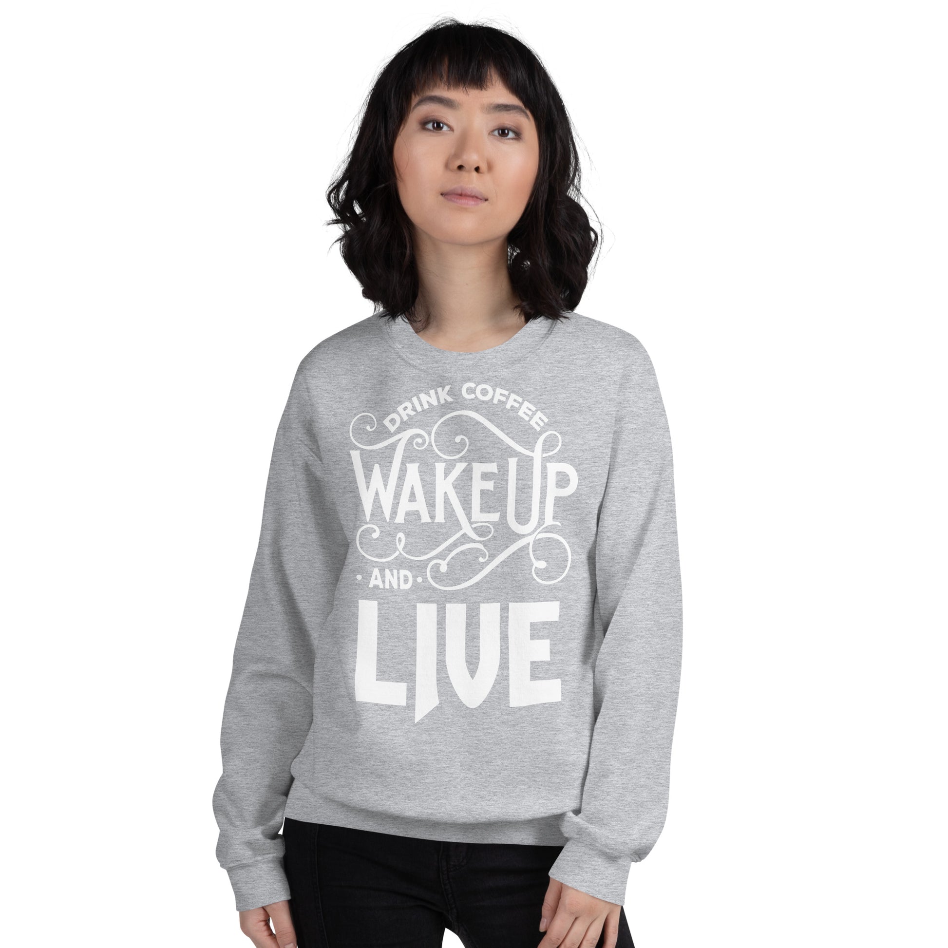 Embrace the mantra that sets the tone for life's grand adventure with our "Livewire Espresso Sweatshirt". This is for the spirited souls who sip their coffee and seize the day, for those who understand that life begins after coffee. With an uplifting message that encourages you to "Drink Coffee, Wake Up, and LIVE", it's not just attire—it's your armor as you charge into the fray of everyday life. This sweatshirt is a cozy reminder to kick start your mornings with a caffeine jolt and live each moment to the fullest. A sturdy and warm sweatshirt bound to keep you warm in the colder months. A pre-shrunk, classic fit sweater that’s made with air-jet spun yarn for a soft feel.