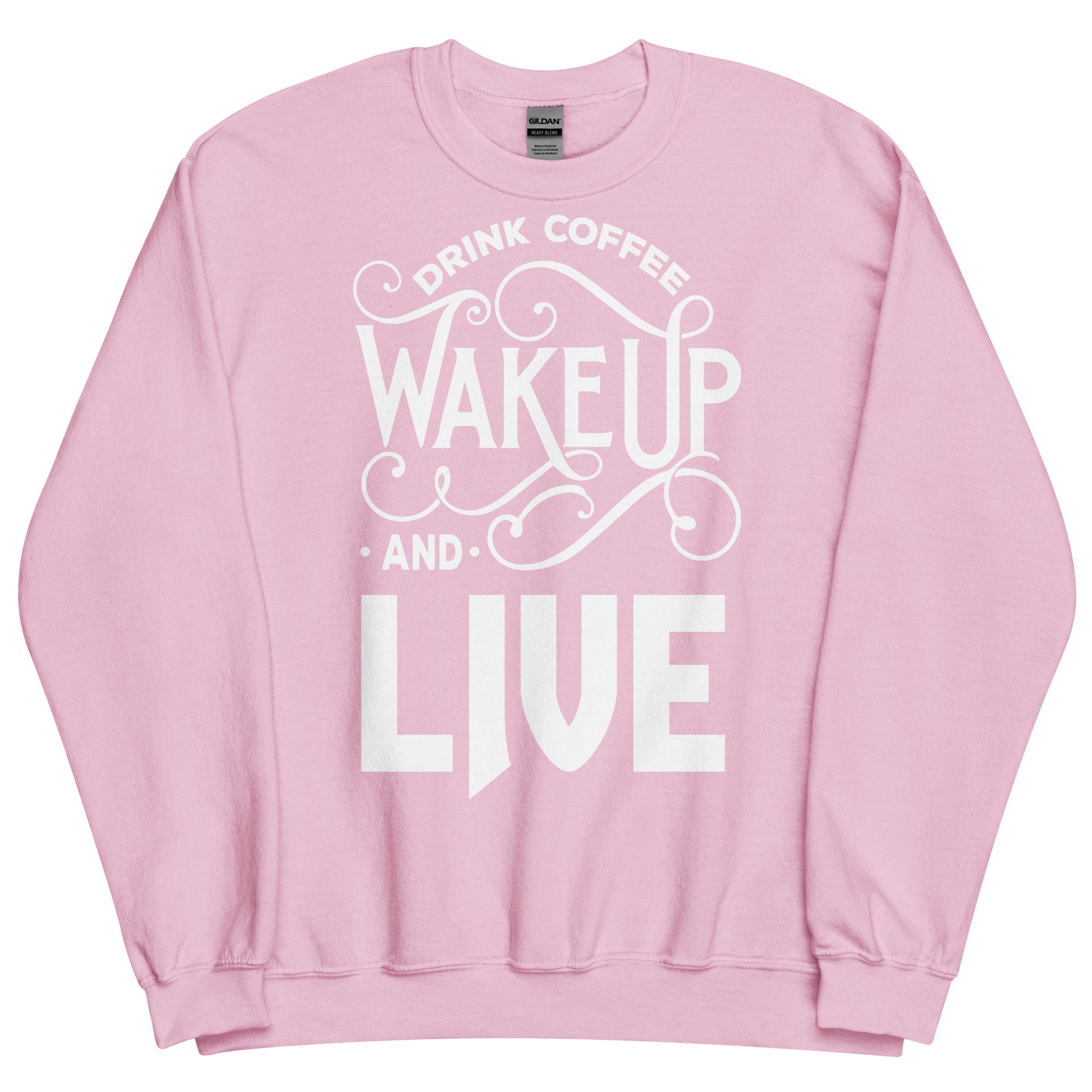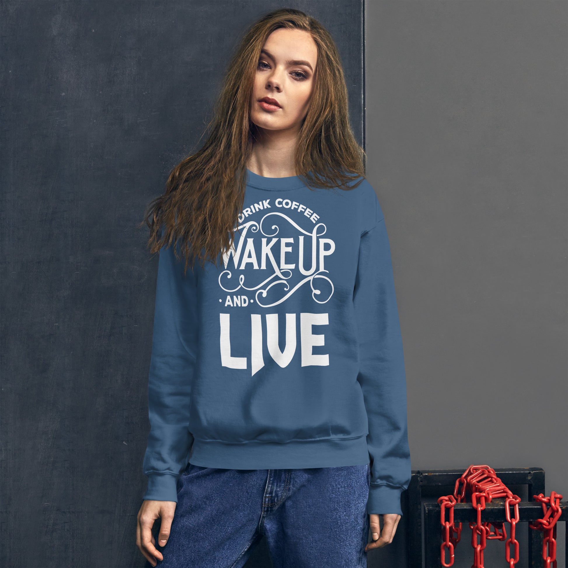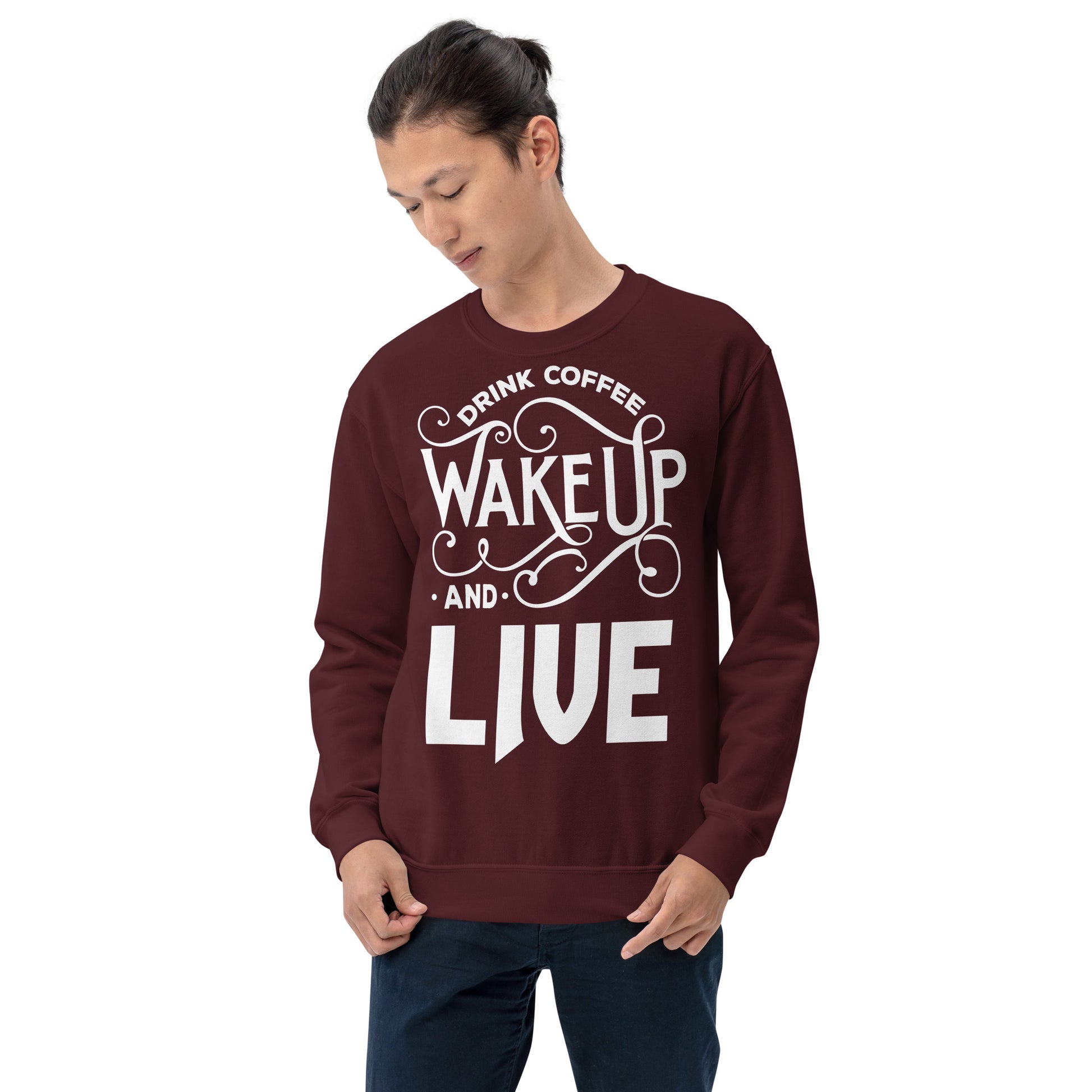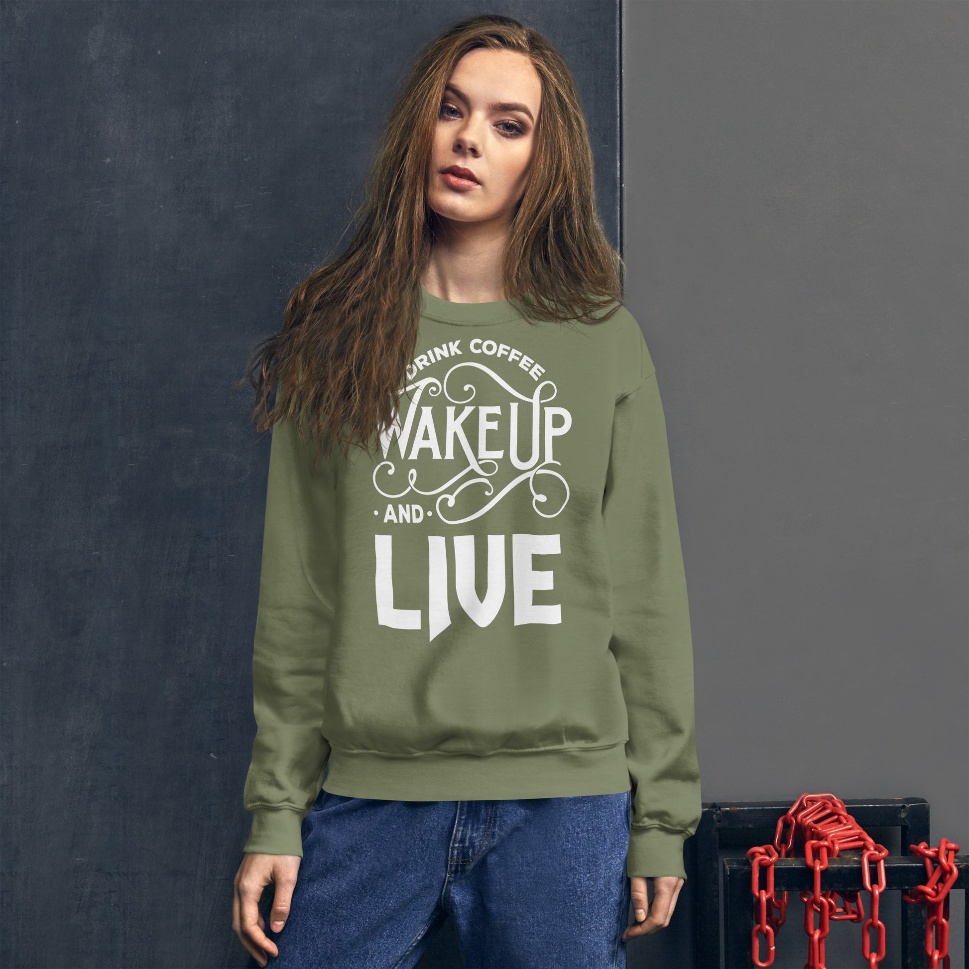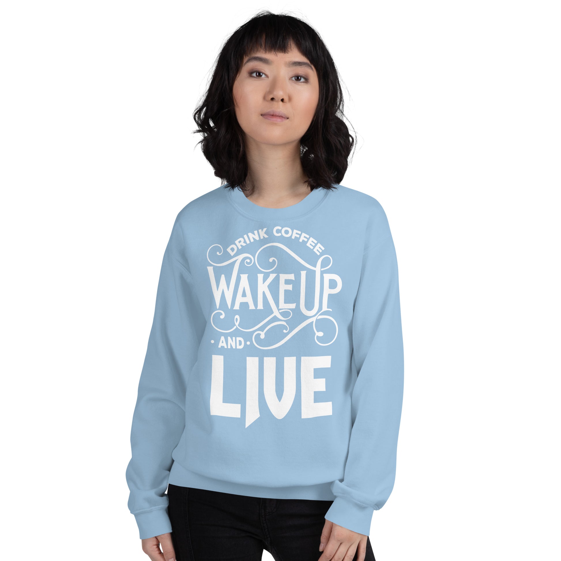 Embrace the mantra that sets the tone for life's grand adventure with our "Livewire Espresso Sweatshirt". This is for the spirited souls who sip their coffee and seize the day, for those who understand that life begins after coffee. With an uplifting message that encourages you to "Drink Coffee, Wake Up, and LIVE", it's not just attire—it's your armor as you charge into the fray of everyday life. This sweatshirt is a cozy reminder to kick start your mornings with a caffeine jolt and live each moment to the fullest. A sturdy and warm sweatshirt bound to keep you warm in the colder months. A pre-shrunk, classic fit sweater that’s made with air-jet spun yarn for a soft feel.