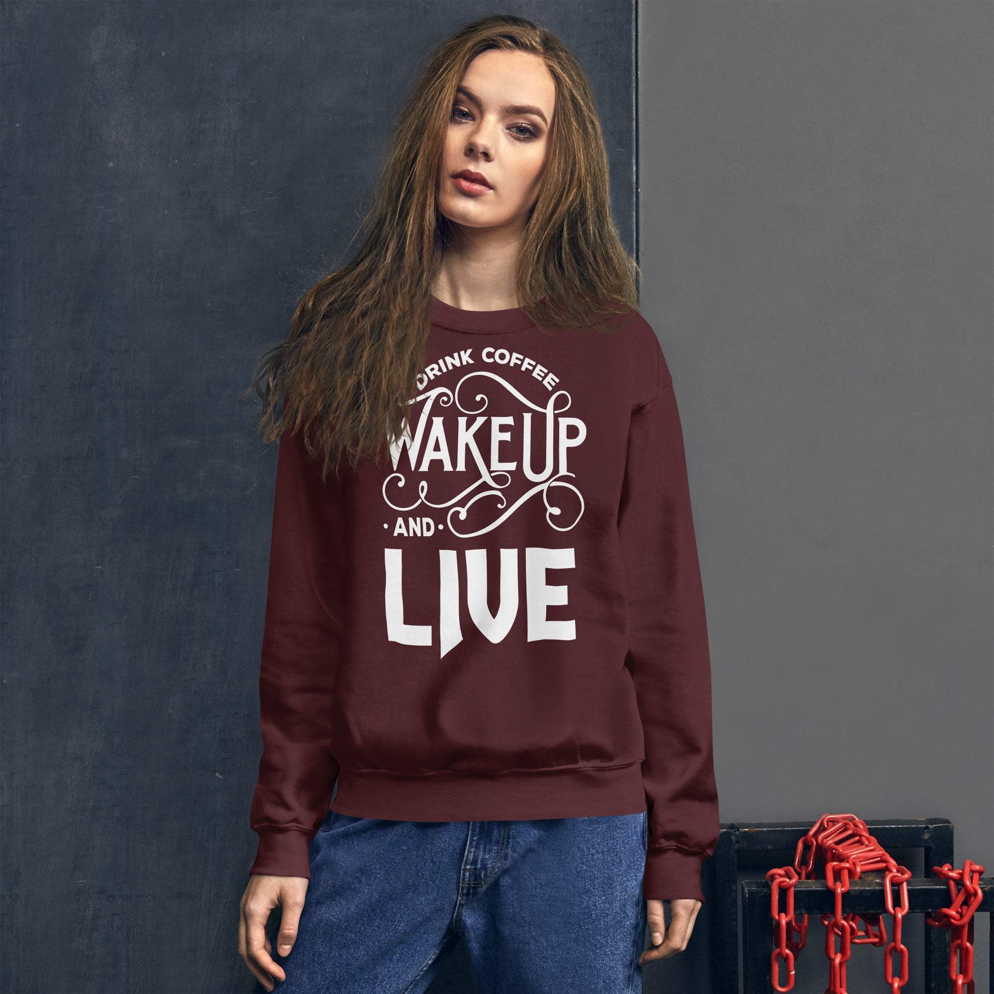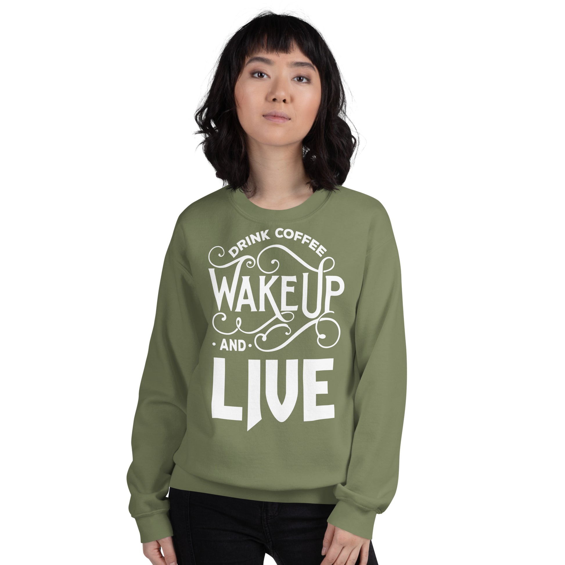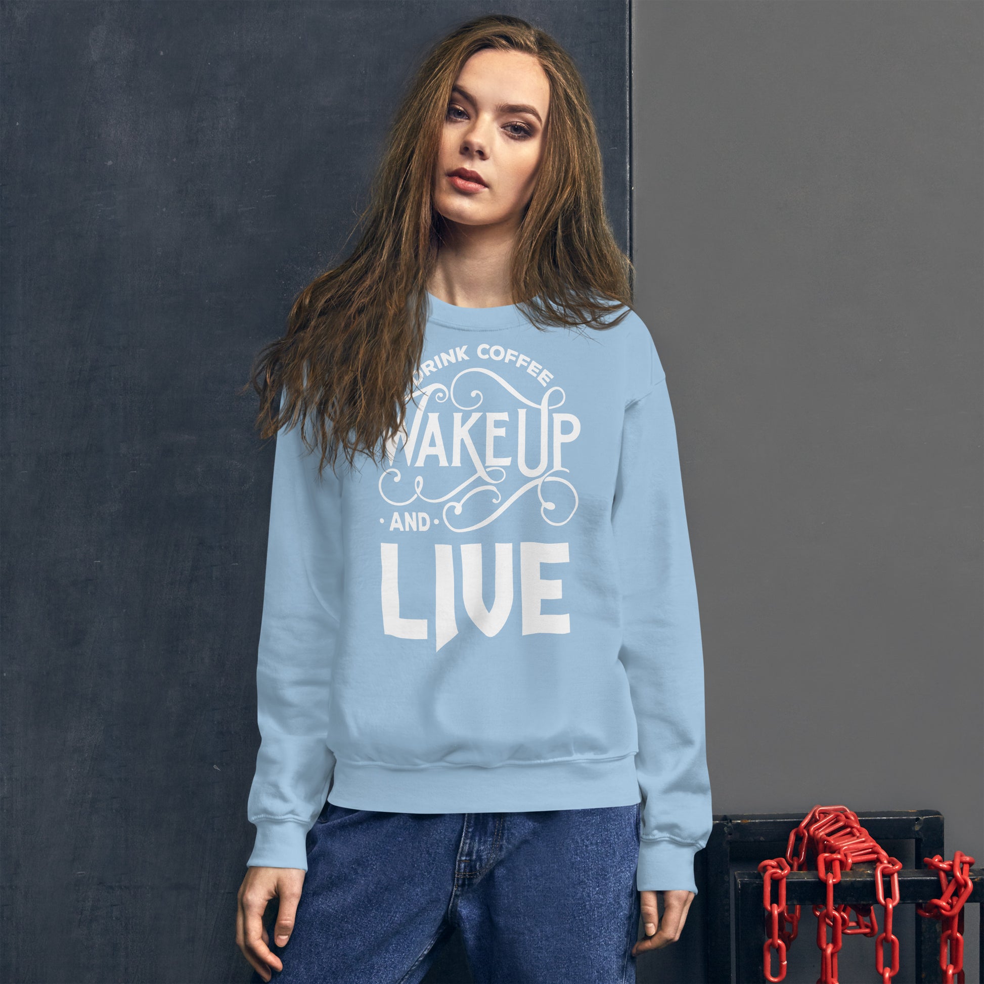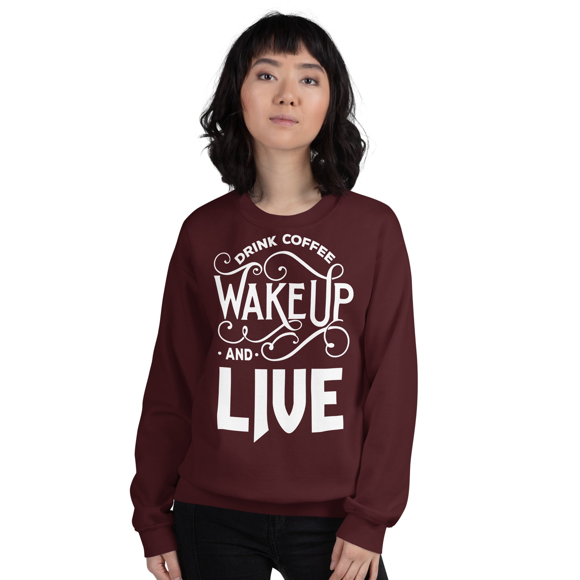 Embrace the mantra that sets the tone for life's grand adventure with our "Livewire Espresso Sweatshirt". This is for the spirited souls who sip their coffee and seize the day, for those who understand that life begins after coffee. With an uplifting message that encourages you to "Drink Coffee, Wake Up, and LIVE", it's not just attire—it's your armor as you charge into the fray of everyday life. This sweatshirt is a cozy reminder to kick start your mornings with a caffeine jolt and live each moment to the fullest. A sturdy and warm sweatshirt bound to keep you warm in the colder months. A pre-shrunk, classic fit sweater that’s made with air-jet spun yarn for a soft feel.
