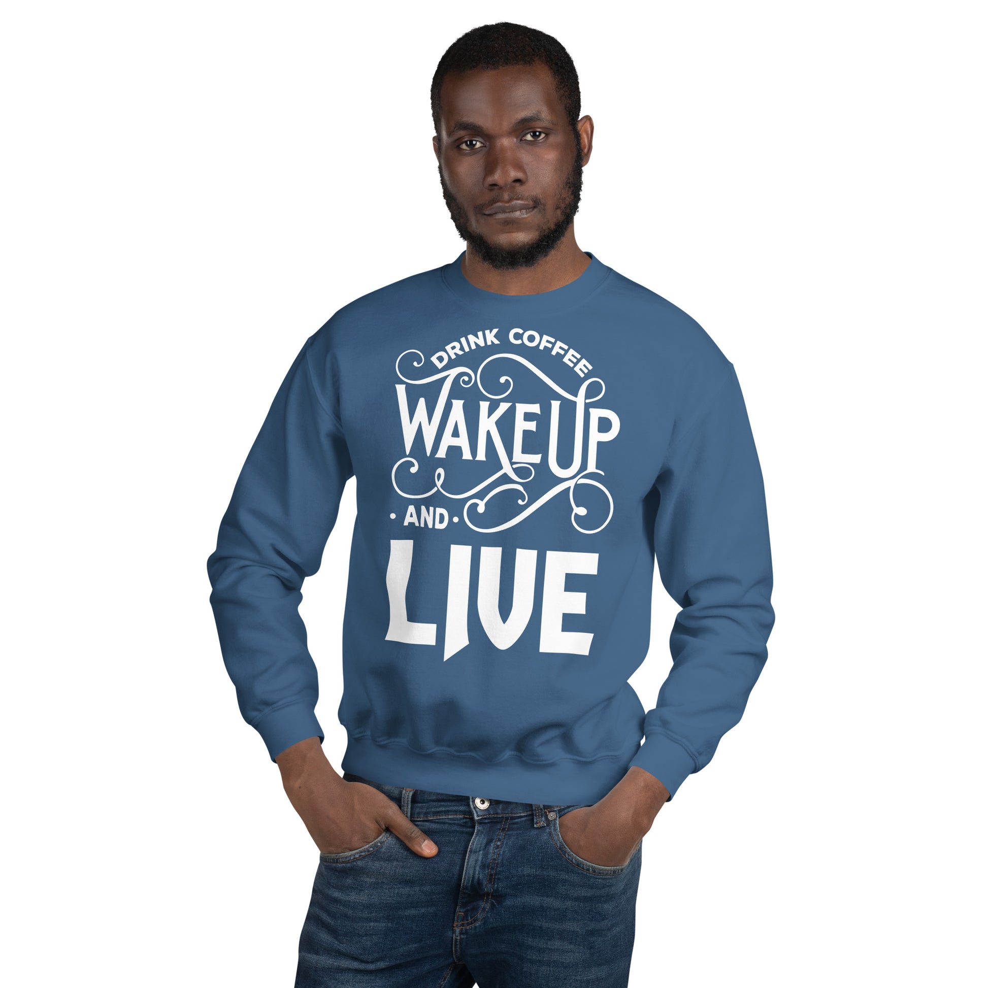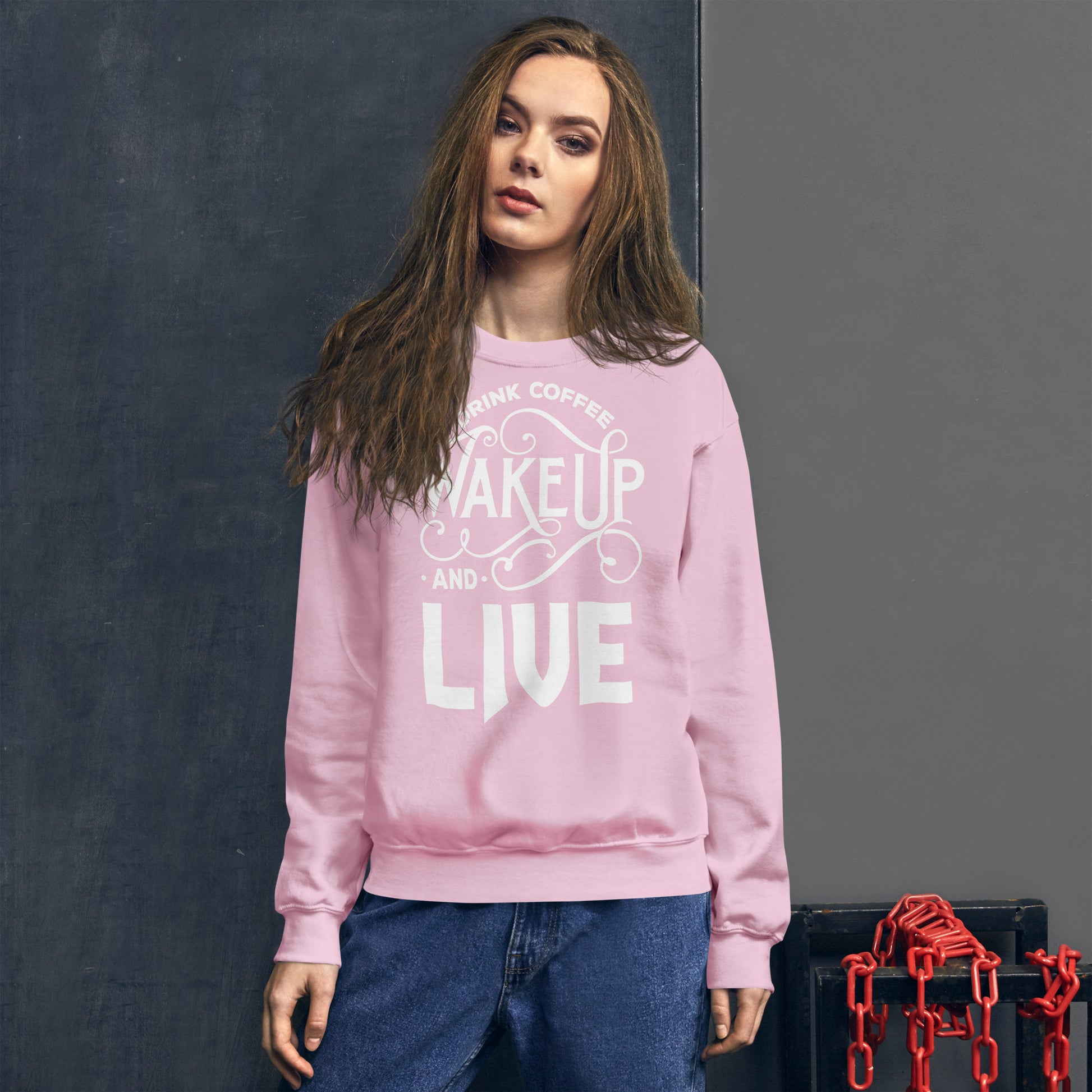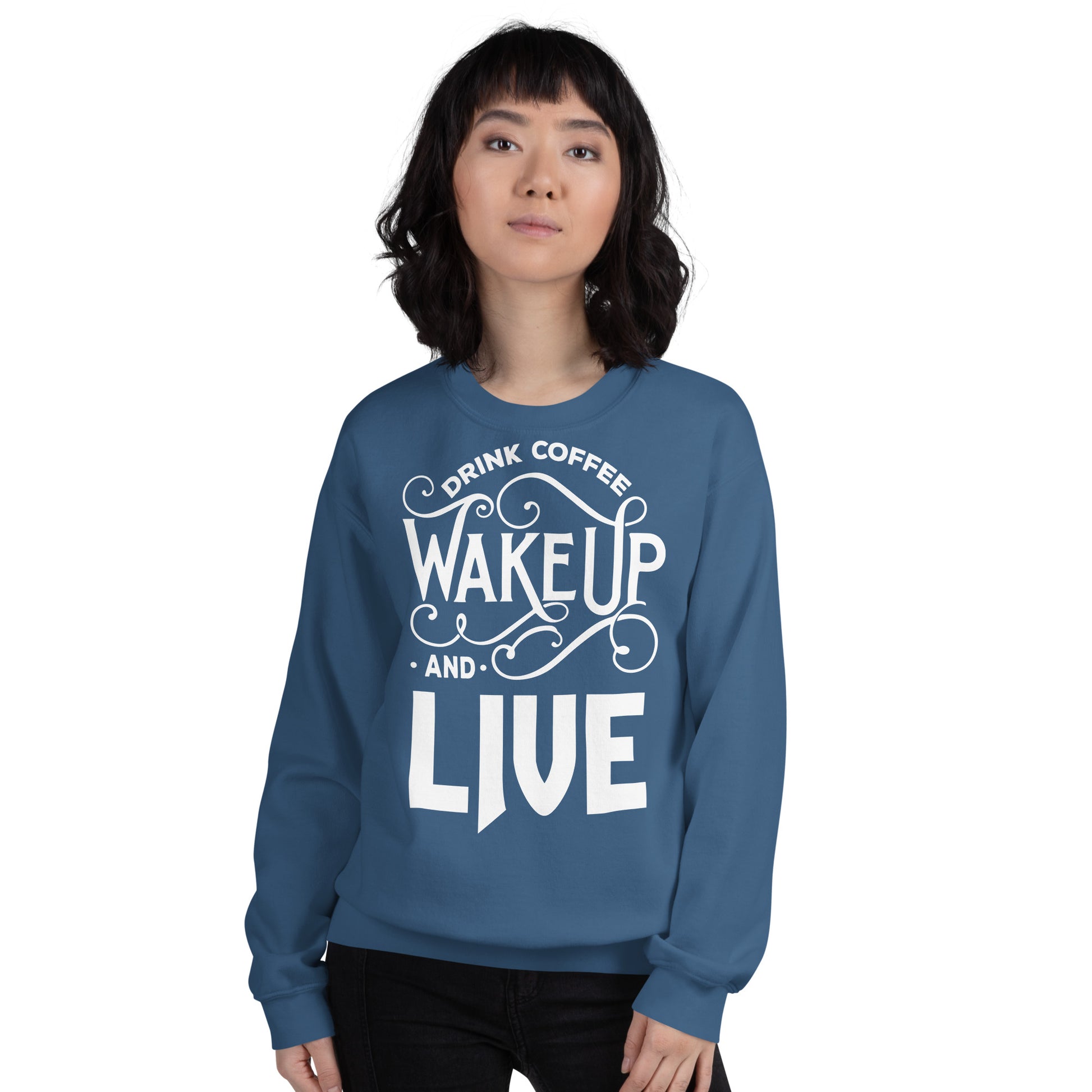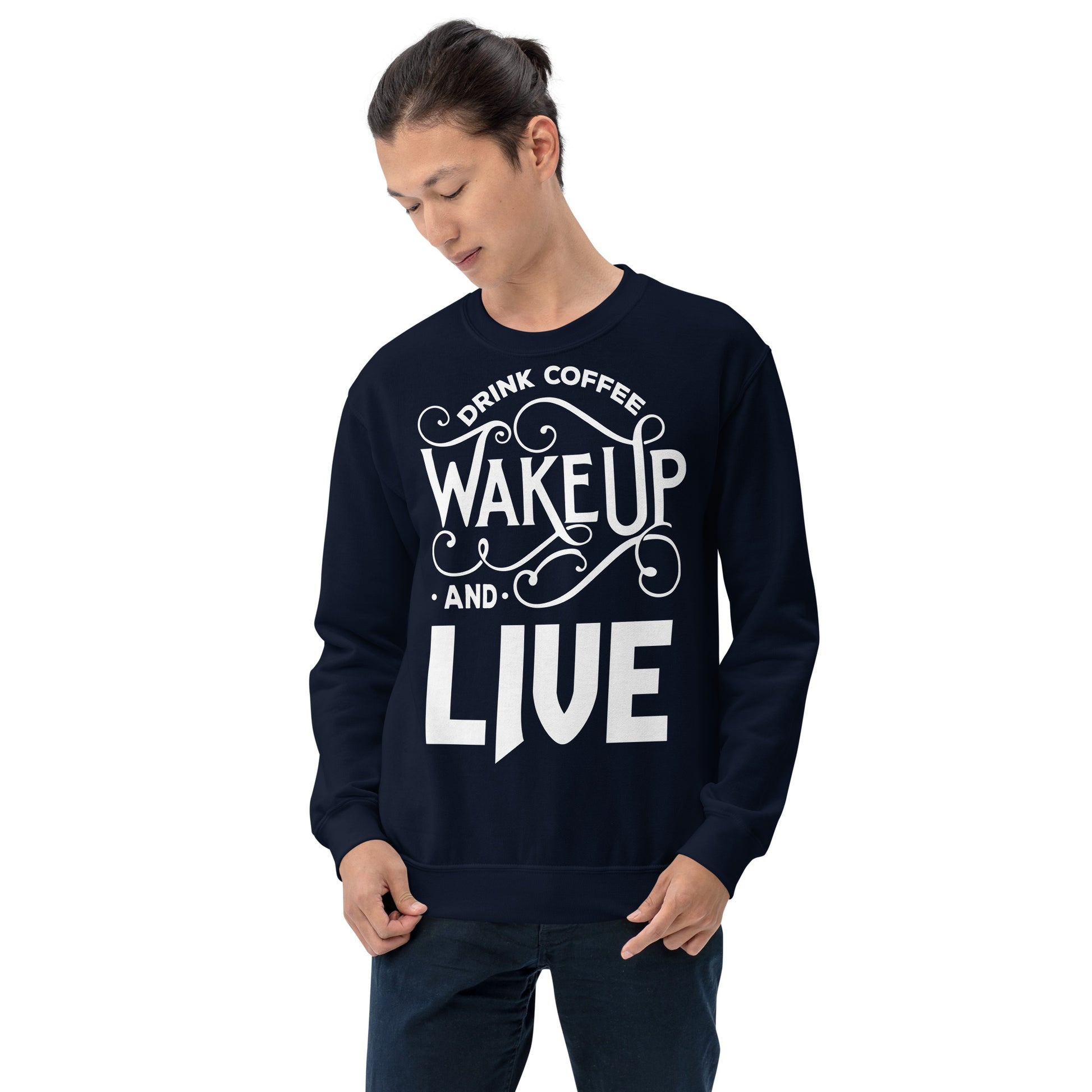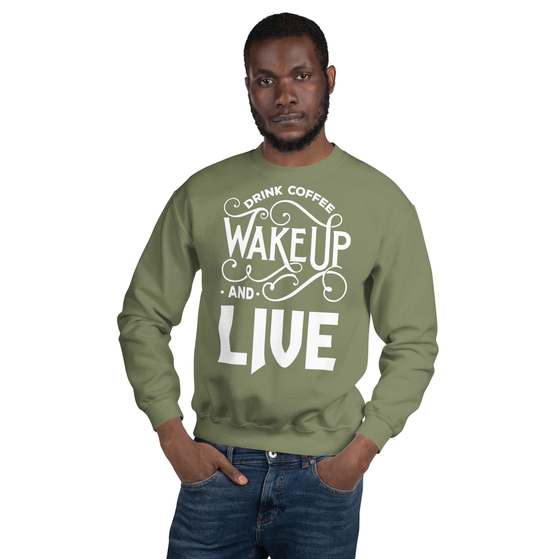 Embrace the mantra that sets the tone for life's grand adventure with our "Livewire Espresso Sweatshirt". This is for the spirited souls who sip their coffee and seize the day, for those who understand that life begins after coffee. With an uplifting message that encourages you to "Drink Coffee, Wake Up, and LIVE", it's not just attire—it's your armor as you charge into the fray of everyday life. This sweatshirt is a cozy reminder to kick start your mornings with a caffeine jolt and live each moment to the fullest. A sturdy and warm sweatshirt bound to keep you warm in the colder months. A pre-shrunk, classic fit sweater that’s made with air-jet spun yarn for a soft feel.