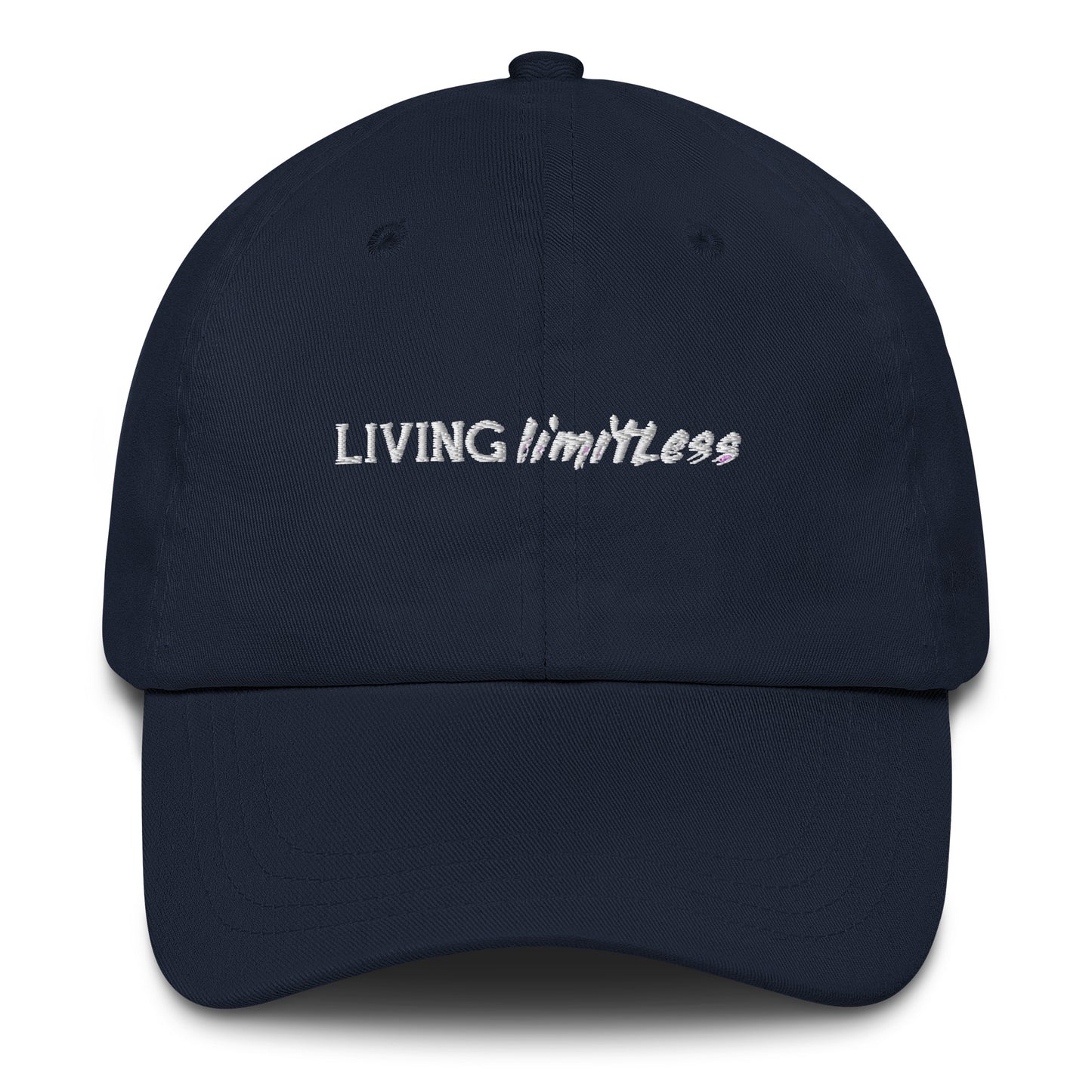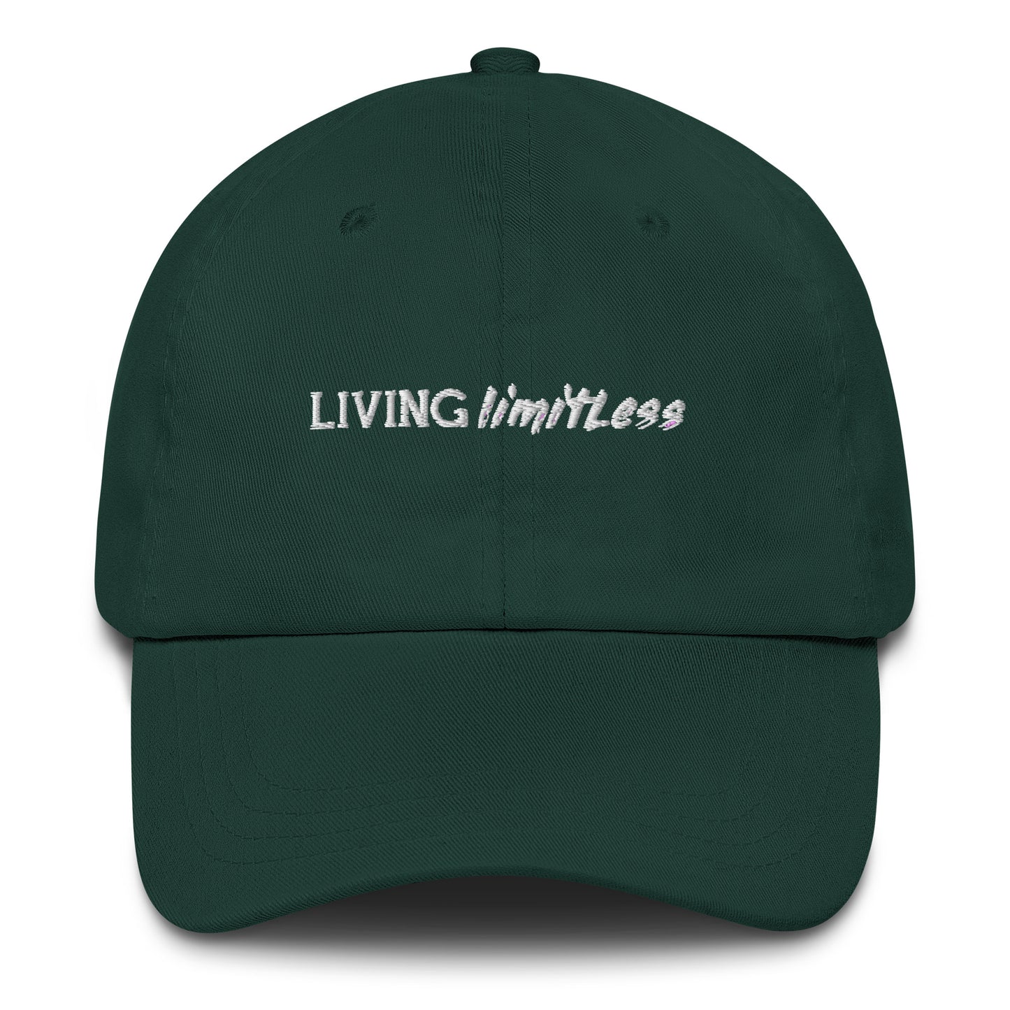 Top off your look with our "Living Limitless Hat" the cap for those who cap no dreams. Whether you're shooting for the stars or crafting your next big venture, this headwear is your personal billboard that screams 'no ceilings.' It's not just a fashion statement; it's a mindset. So go ahead, put on this cap and let the world know you've got a head full of endless possibilities. Dad hats aren't just for dads. This one's got a low profile with an adjustable strap and curved visor.