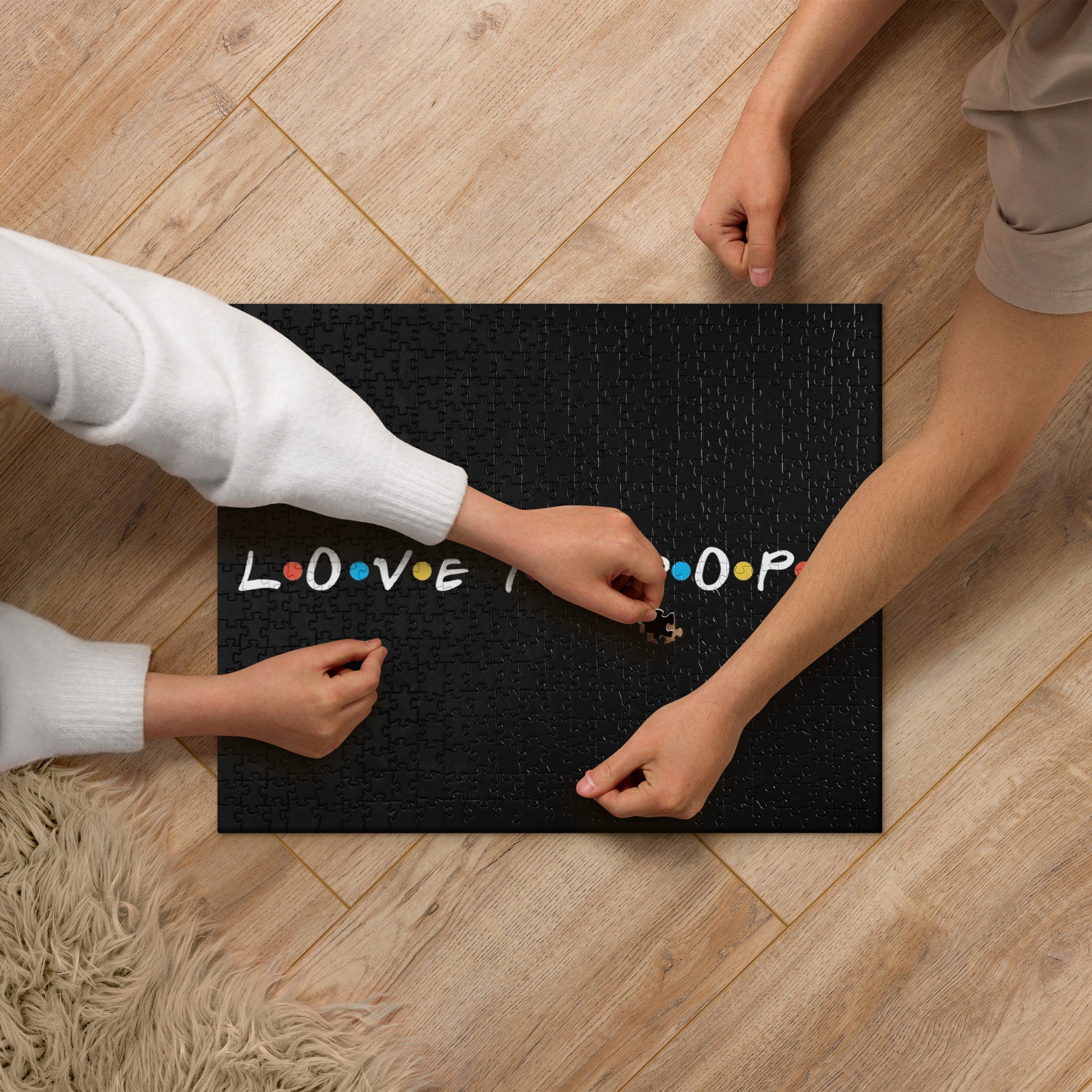 Puzzle out the pieces of passion with the 'Love is Dope Puzzle', where every piece is a part of the love story you're building. Inspired by "Friends" perfect to do gathered with friends, this puzzle invites you to the table for a group challenge or a solo relaxation session. The all black background will make this a challenge for even the most astute puzzler. As the picture comes together, so does the message: love is the ultimate high. It's a fun, engaging way to spend an evening, reminiscent of the times when laughs and puzzling were the heart of every hangout. So, gather your favorite people or enjoy a moment of peace; either way, love is in the air and in the fit of every piece. Assembling puzzles is the perfect family bonding activity. Treat yourself to a unique puzzle and gather your loved ones for an evening filled with joy and teamwork.