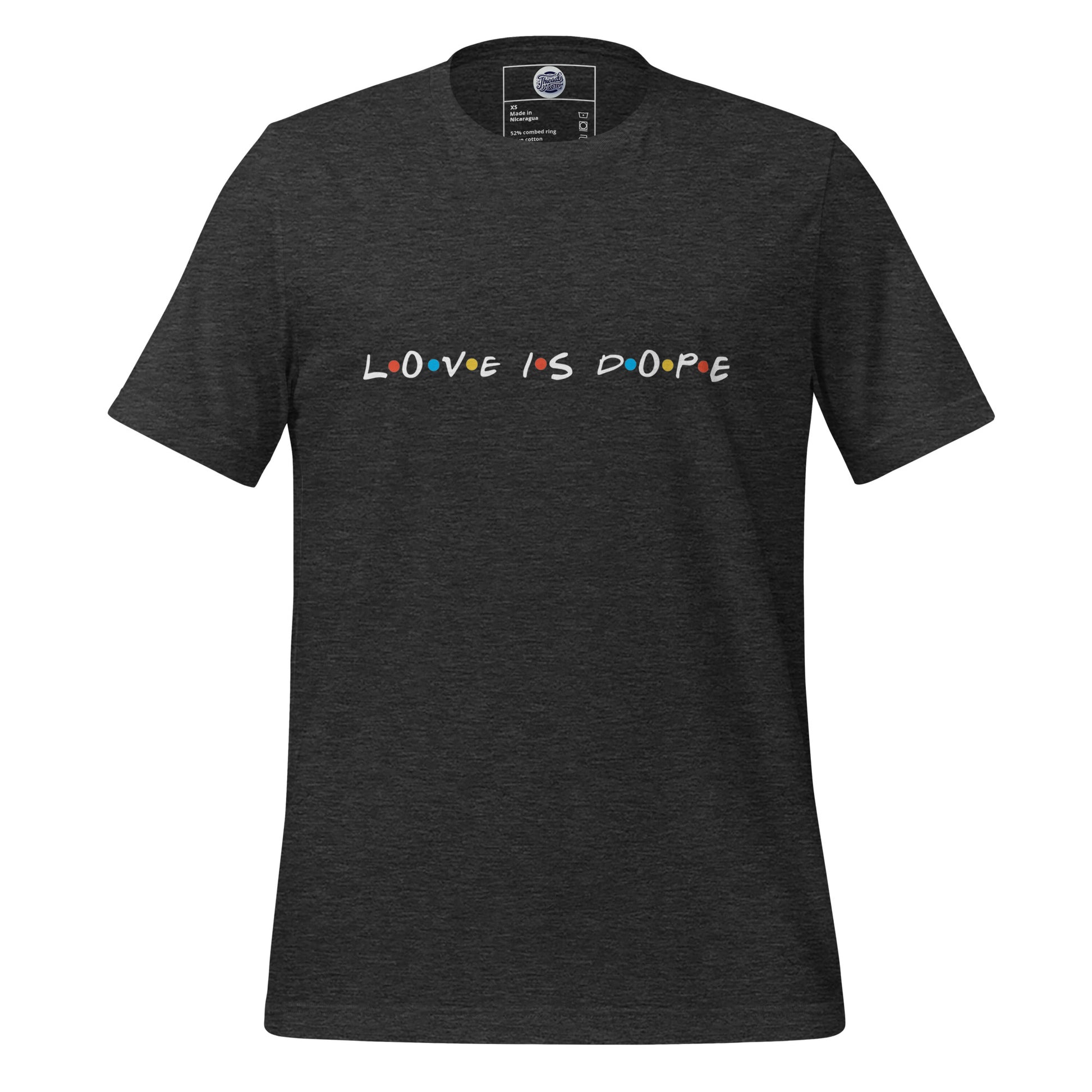 Rock out in the 'Love is Dope T-Shirt' with a nod to the Friends era of effortless cool. This tee captures the spirit of your favorite Central Perk gang, proving that love, like a good 90s sitcom, never goes out of style. So, whether you're chilling with your lobsters or dancing in fountains, this shirt has got you covered. This t-shirt is everything you've dreamed of and more. It feels soft and lightweight, with the right amount of stretch. It's comfortable and flattering for all.