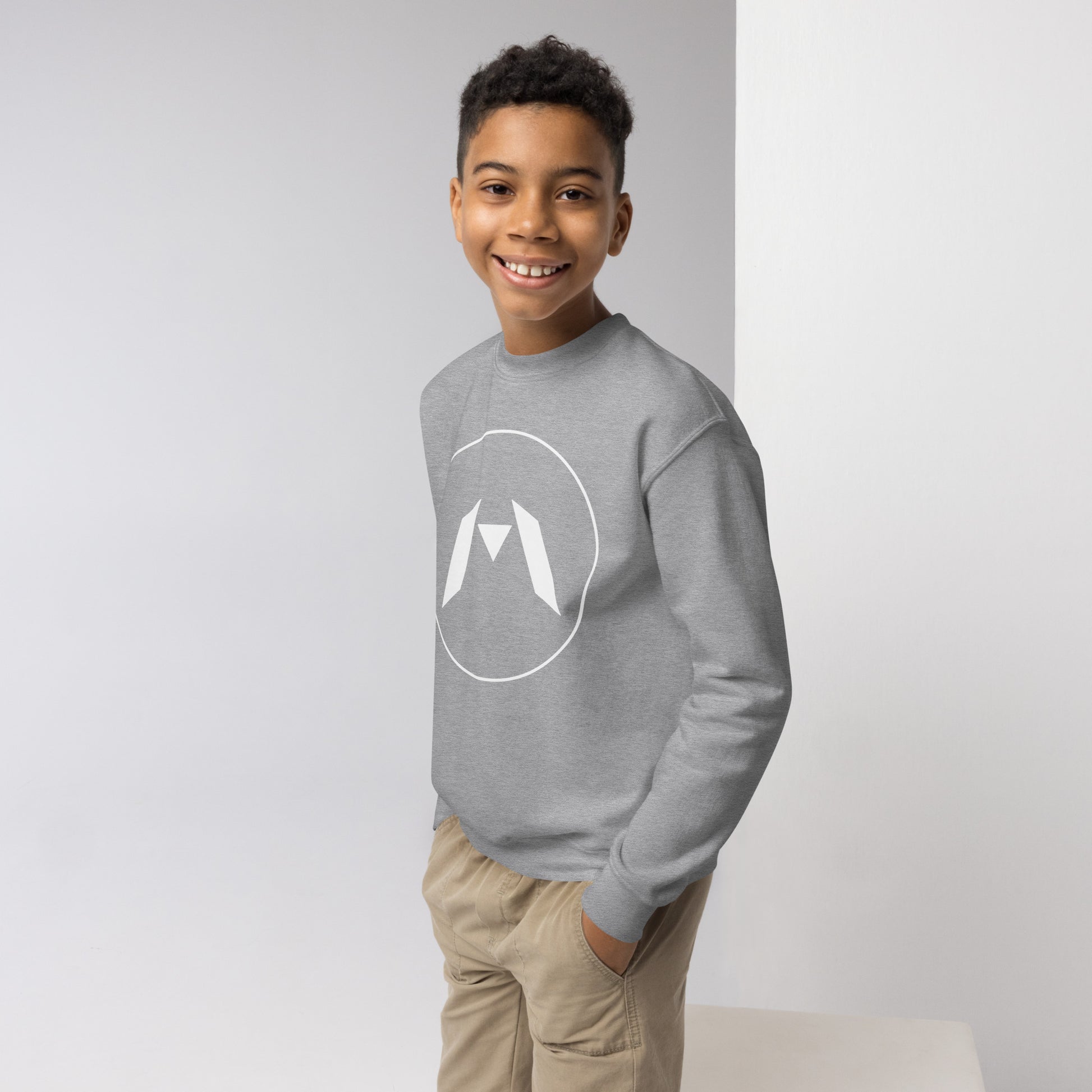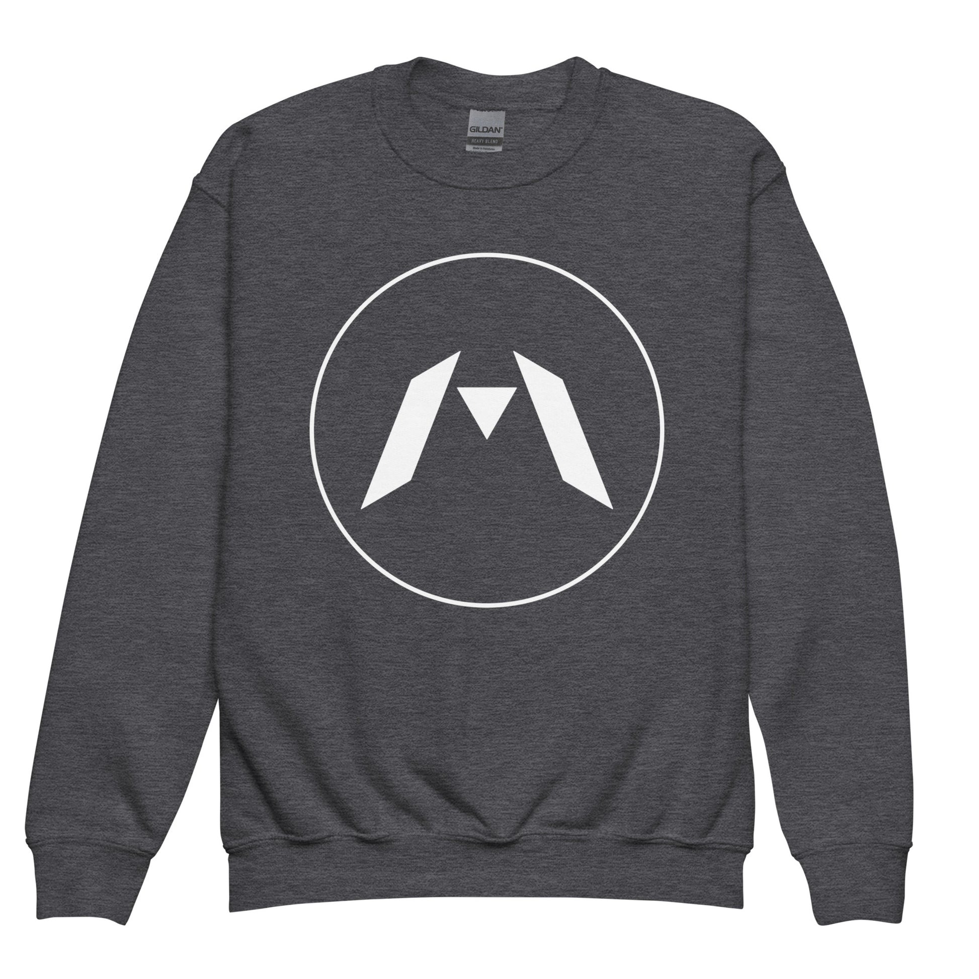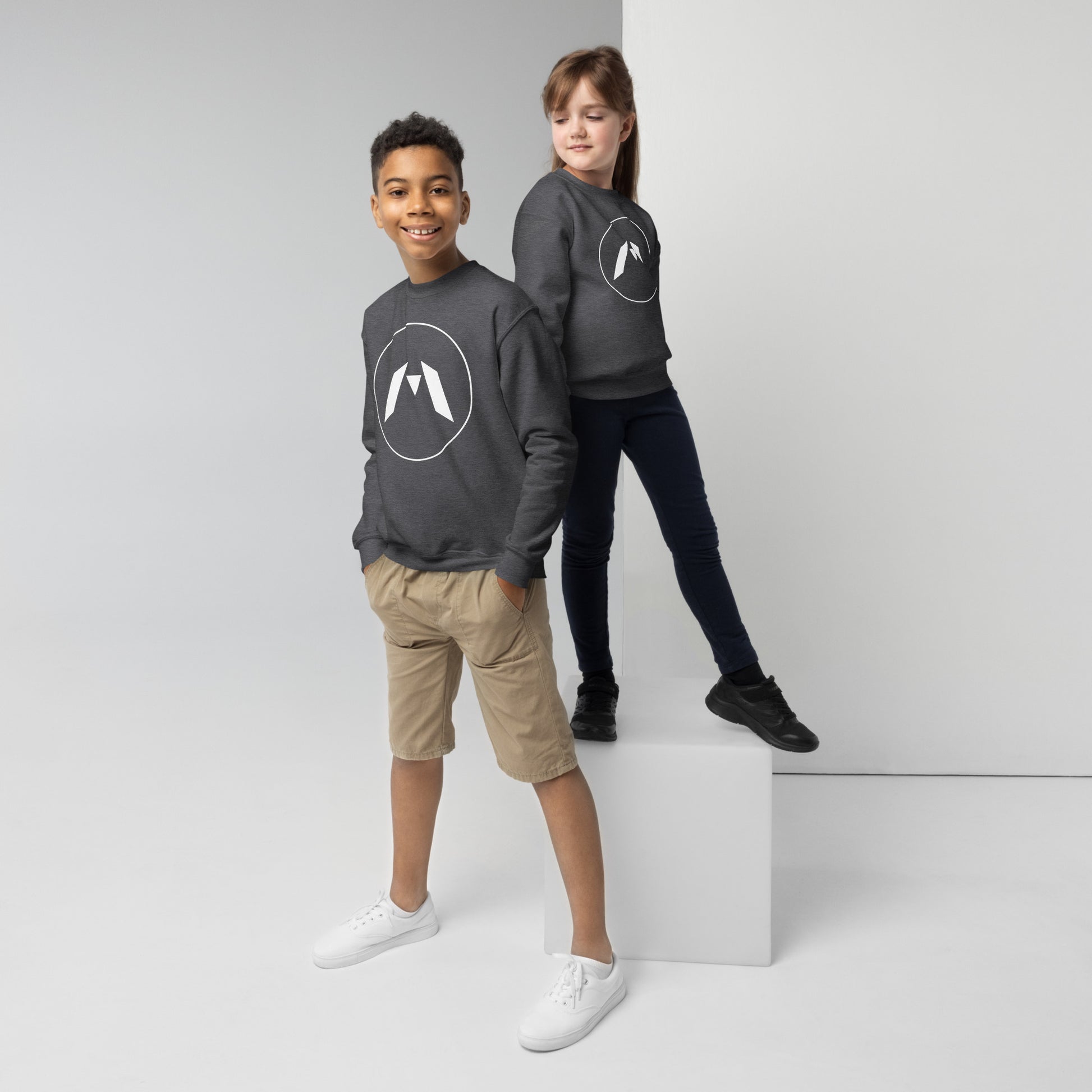 Crafted for simplicity and style, this sleek sweatshirt features a minimalist design with a bold 'M' encircled in white, standing out against the solid background. The classic cut provides a comfortable fit, while the iconic 'M' makes a subtle yet strong statement about identity and presence. It's a versatile piece that can be dressed up or down, perfect for those who prefer their fashion understated but impactful. This sweatshirt is as suitable for a relaxed day at home as it is for an outing with friends, embodying modern elegance with every wear. Cozy and cool, this youth crewneck sweatshirt is designed for every adventure. Made from soft fleece fabric, it’s easy to wear and hassle-free to wash. Whether headed out or snuggled up on the couch, the younger crowd will love the look and feel of this sweatshirt.