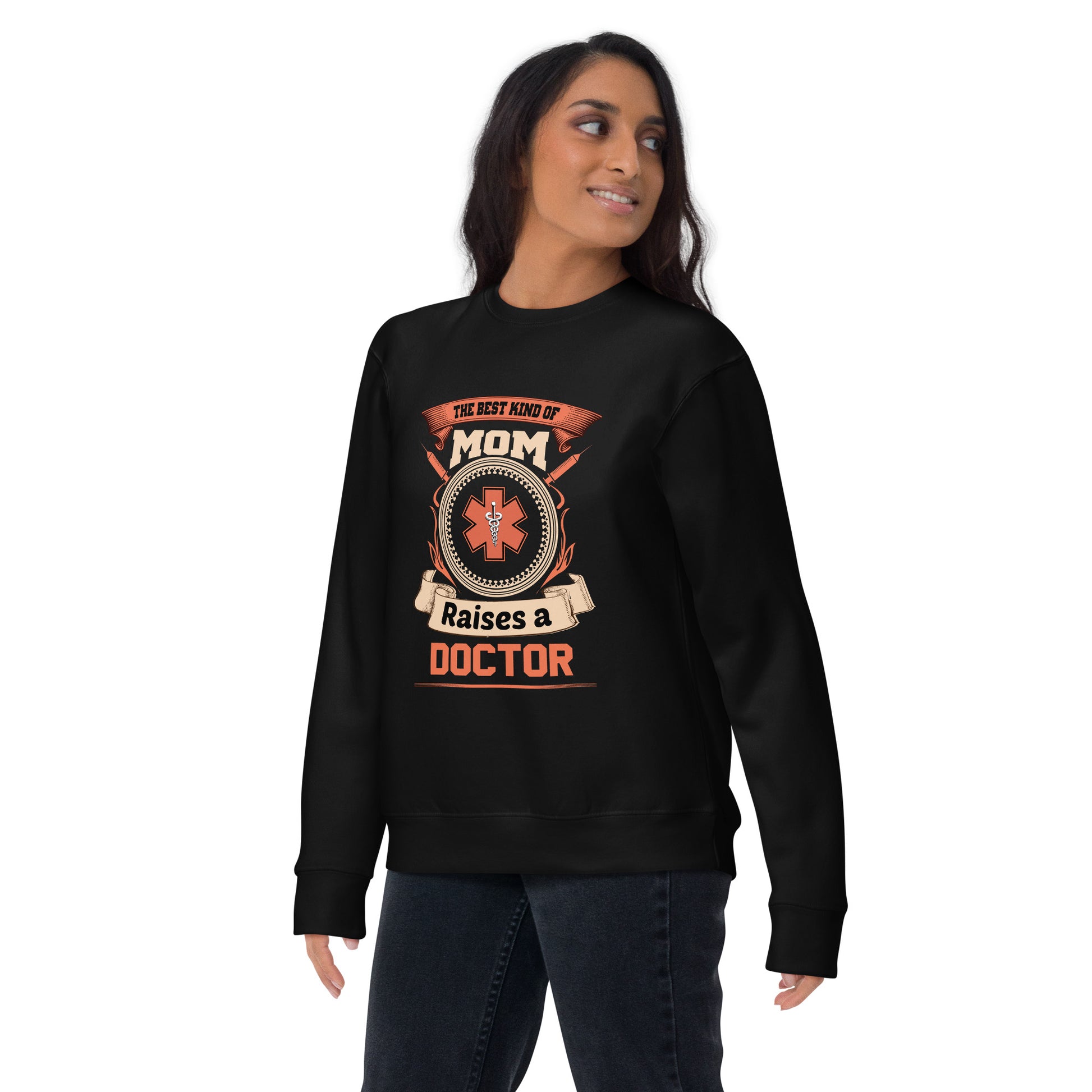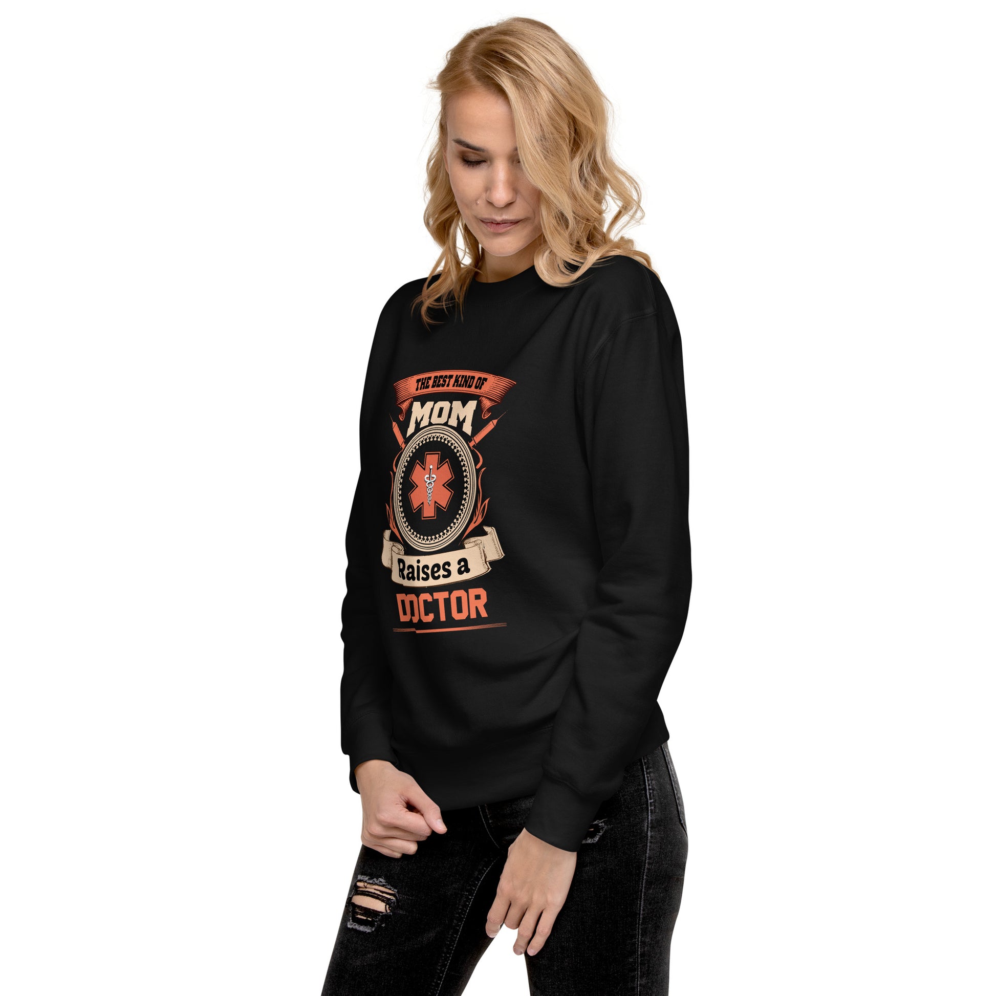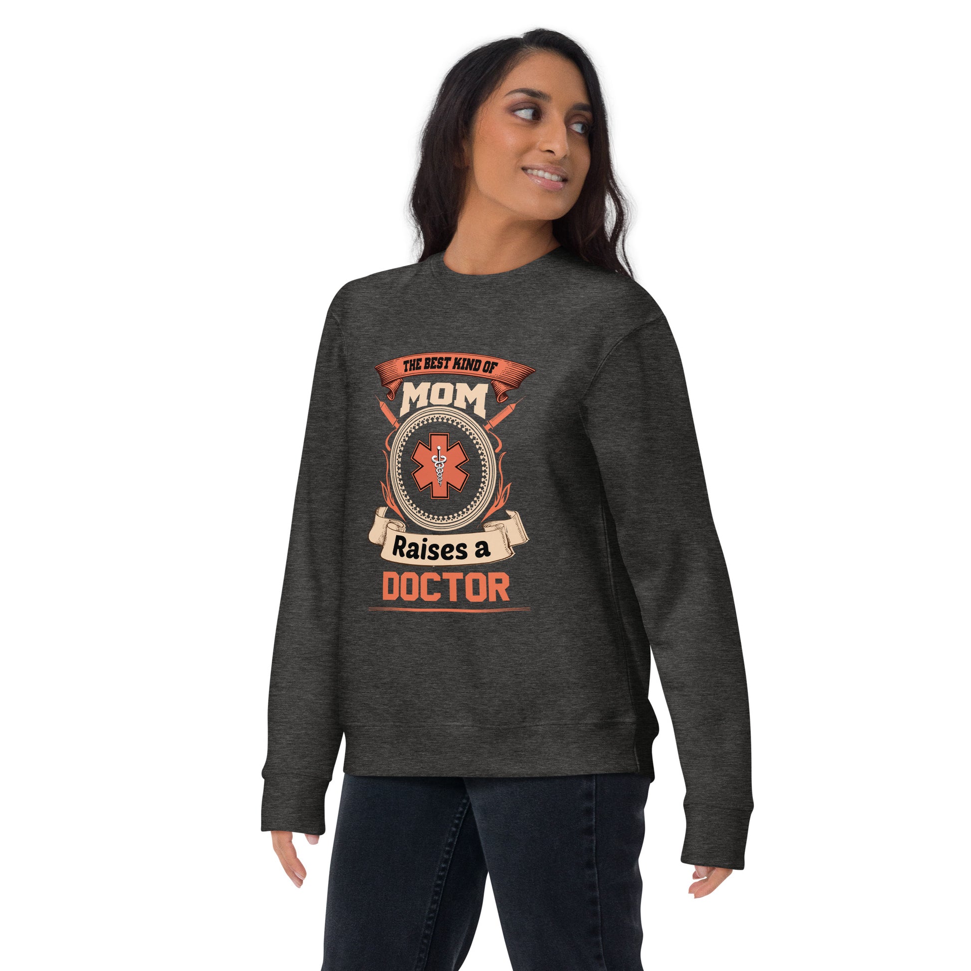 Celebrate the heartbeat behind the white coat with our "Medic Mom" Sweatshirt. It's a tribute to the unsung heroes who raise the healers of the world. Emblazoned with "The Best Kind of Mom Raises a Doctor," this sweatshirt is for the proud mothers who have nurtured future lifesavers. The bold lettering is set against a timeless caduceus emblem, symbolizing the medical profession and the tireless dedication behind it. Crafted from comforting fabrics as warm and reliable as a mother's embrace, it’s perfect for those crisp mornings or relaxed evenings reflecting on a journey of dedication. Whether you're a doctor honoring your roots or a mom flaunting your contribution to the world of medicine, this sweatshirt is your badge of honor. Rock a classic sweatshirt silhouette with ribbed crew neck, long sleeve cuffs, and a flat hem. Layer it up or wear it on its own for a contemporary streetwear look. With the soft fleece inside and comfortable fit, it’s sure to become your favorite everyday sweater right away!