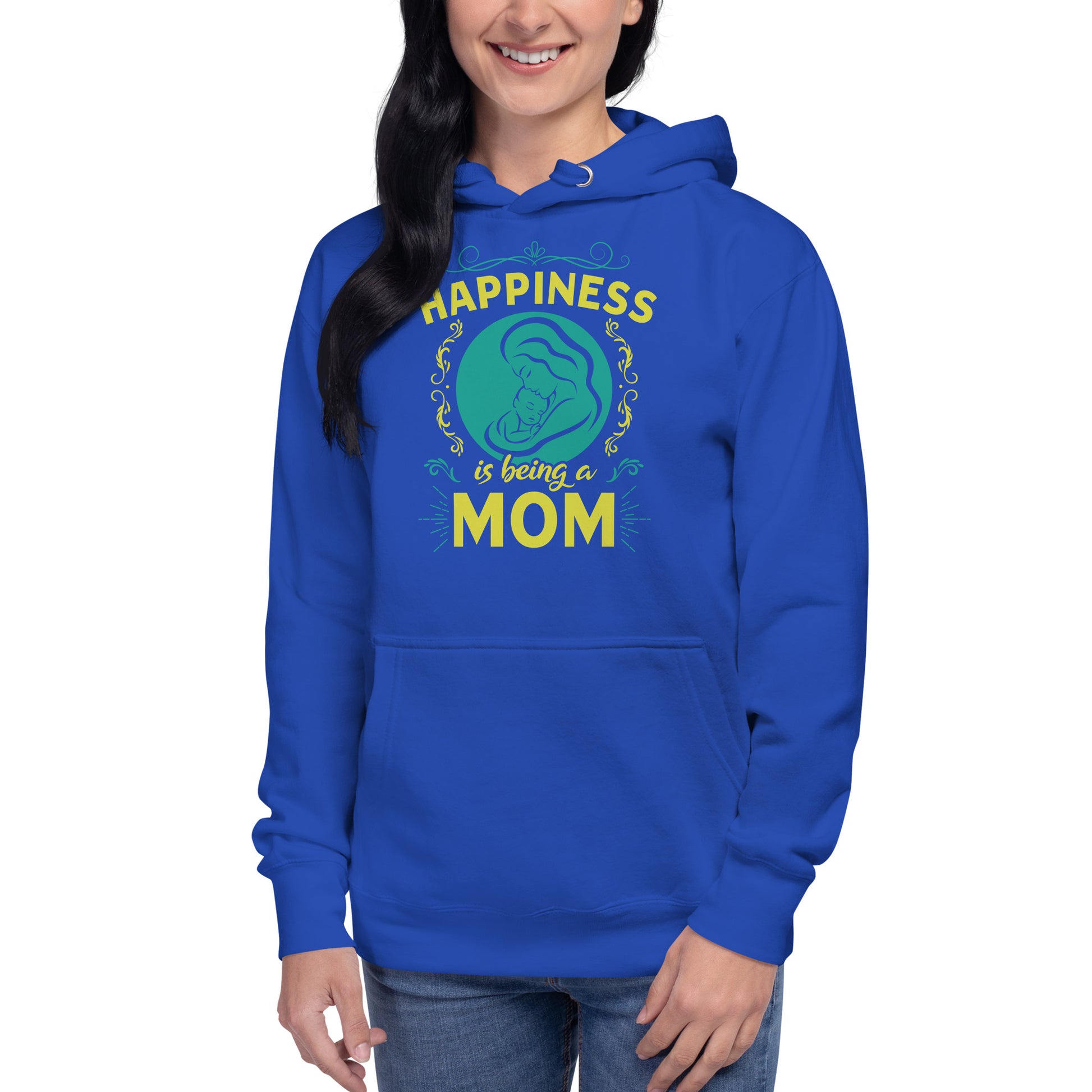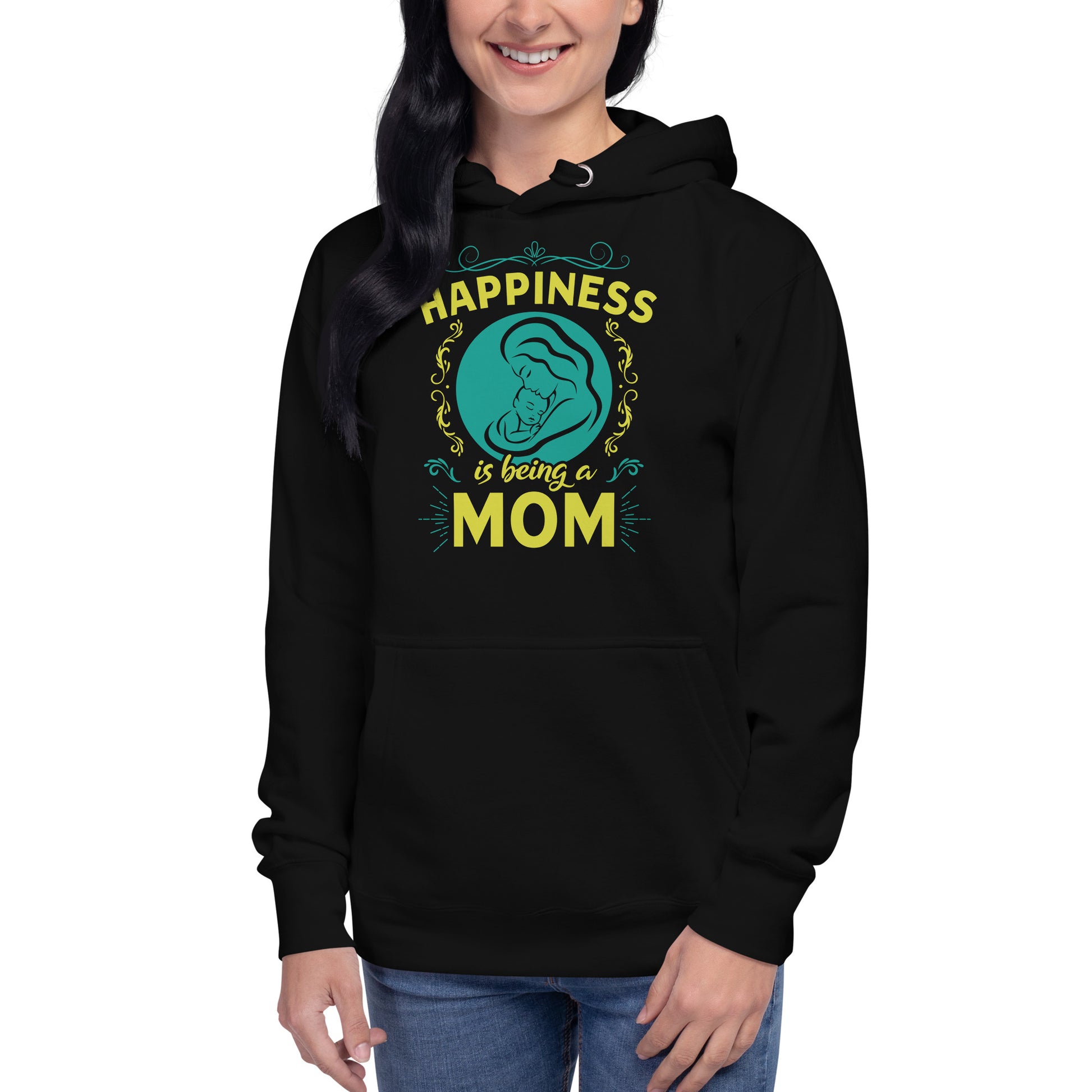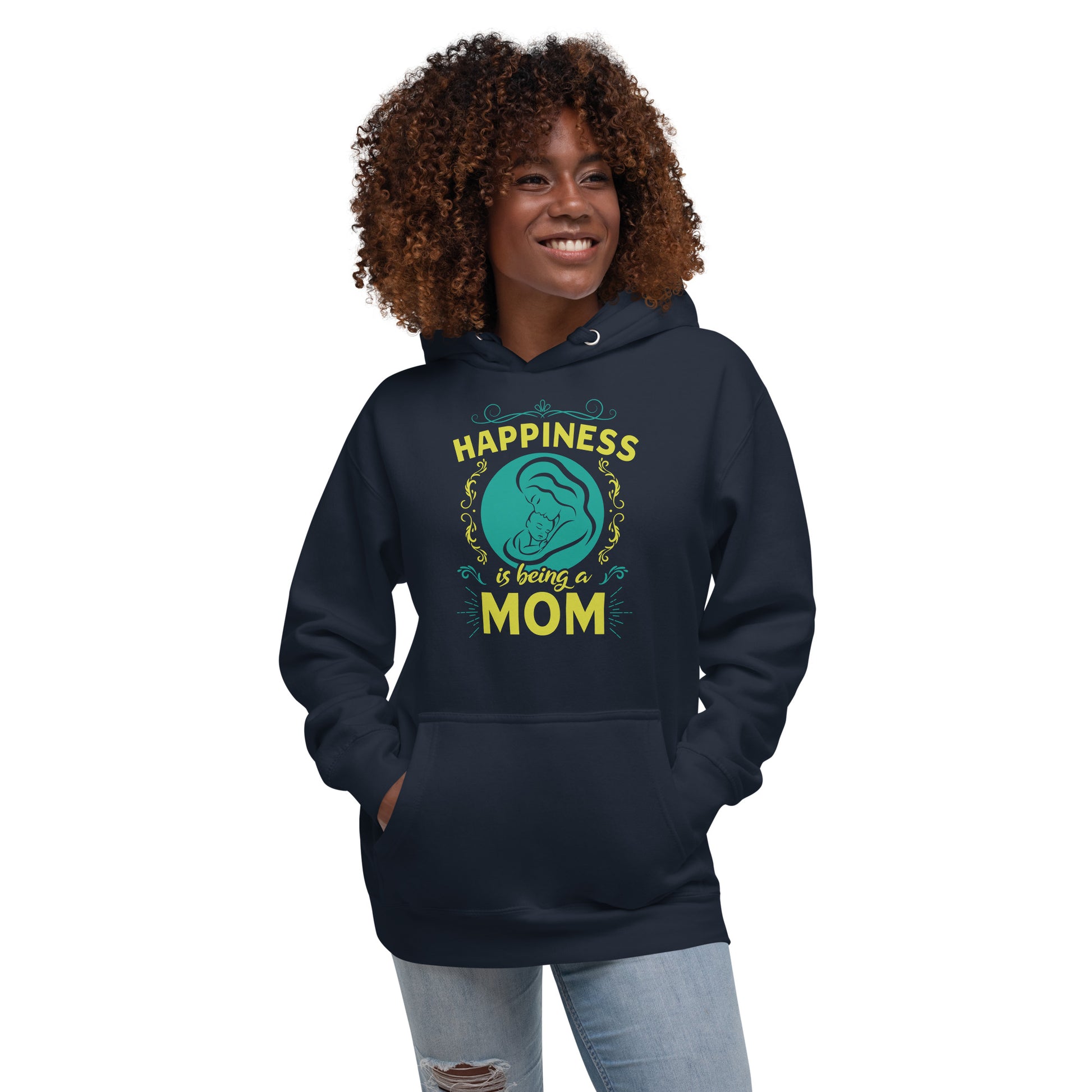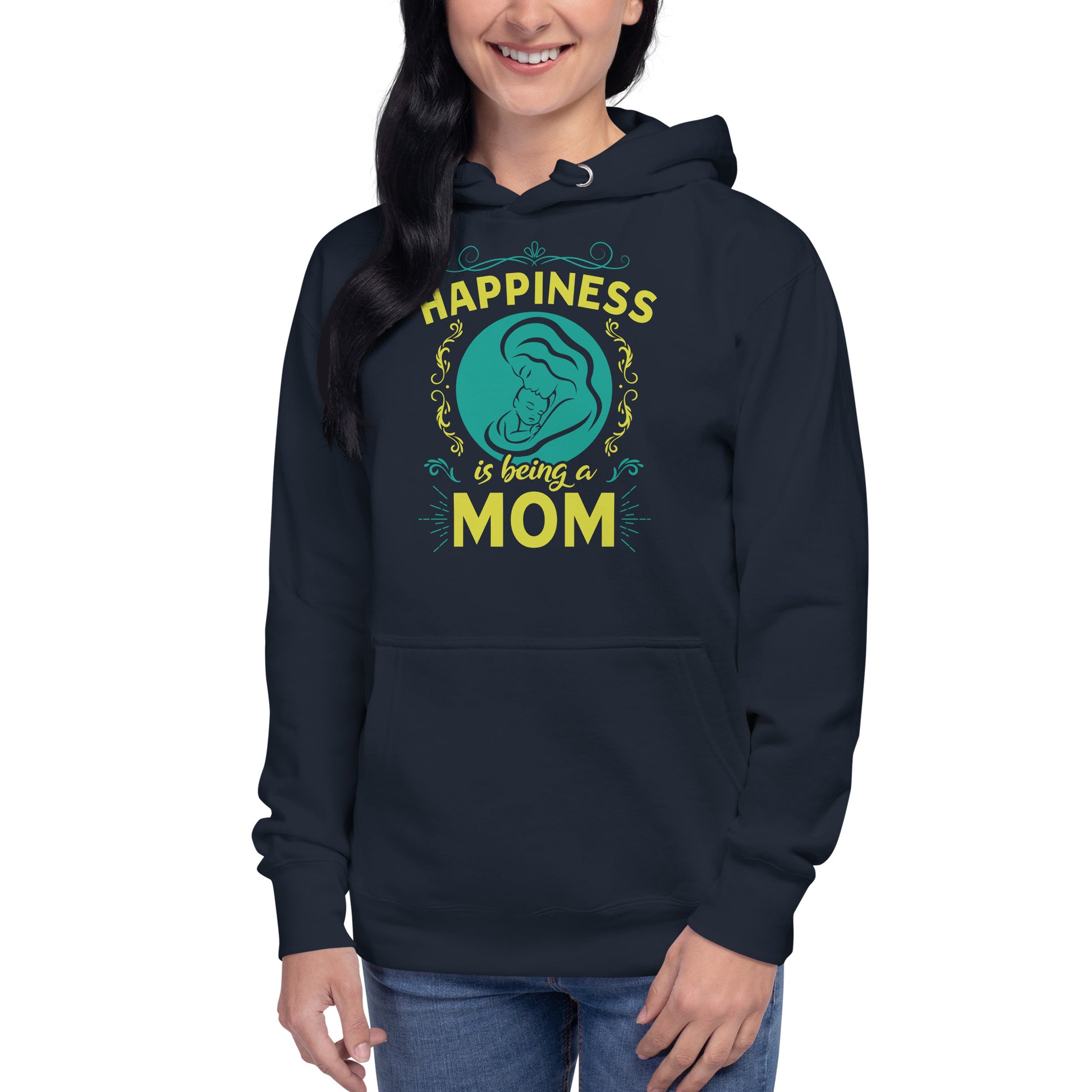 Wrap yourself in the warmth and love of motherhood with our "Happiness is Being a Mom" hoodie. This cozy hoodie showcases a beautiful illustration of a mother's embrace, encircled by a delicate floral design and the touching sentiment "Happiness is Being a Mom." Made from a soft, plush blend of cotton and polyester, this hoodie is perfect for chilly days, family gatherings, or simply lounging at home. The spacious front pocket provides a convenient spot for storing essentials or keeping your hands warm. Available in a range of sizes and colors, this hoodie makes a wonderful gift for the devoted moms in your life. Who knew that the softest hoodie you'll ever own comes with such a cool design. You won't regret buying this classic streetwear piece of apparel with a convenient pouch pocket and warm hood for chilly evenings.
