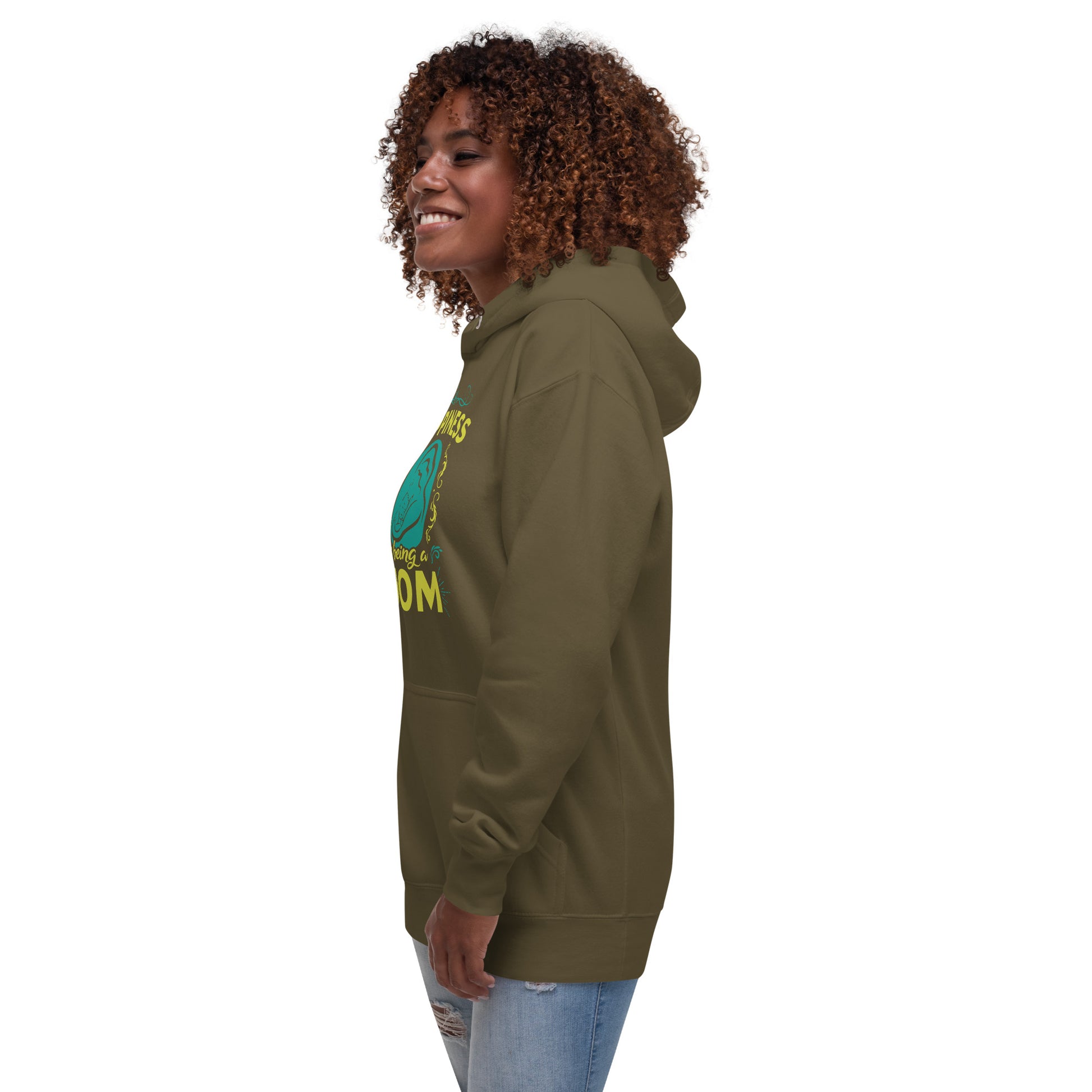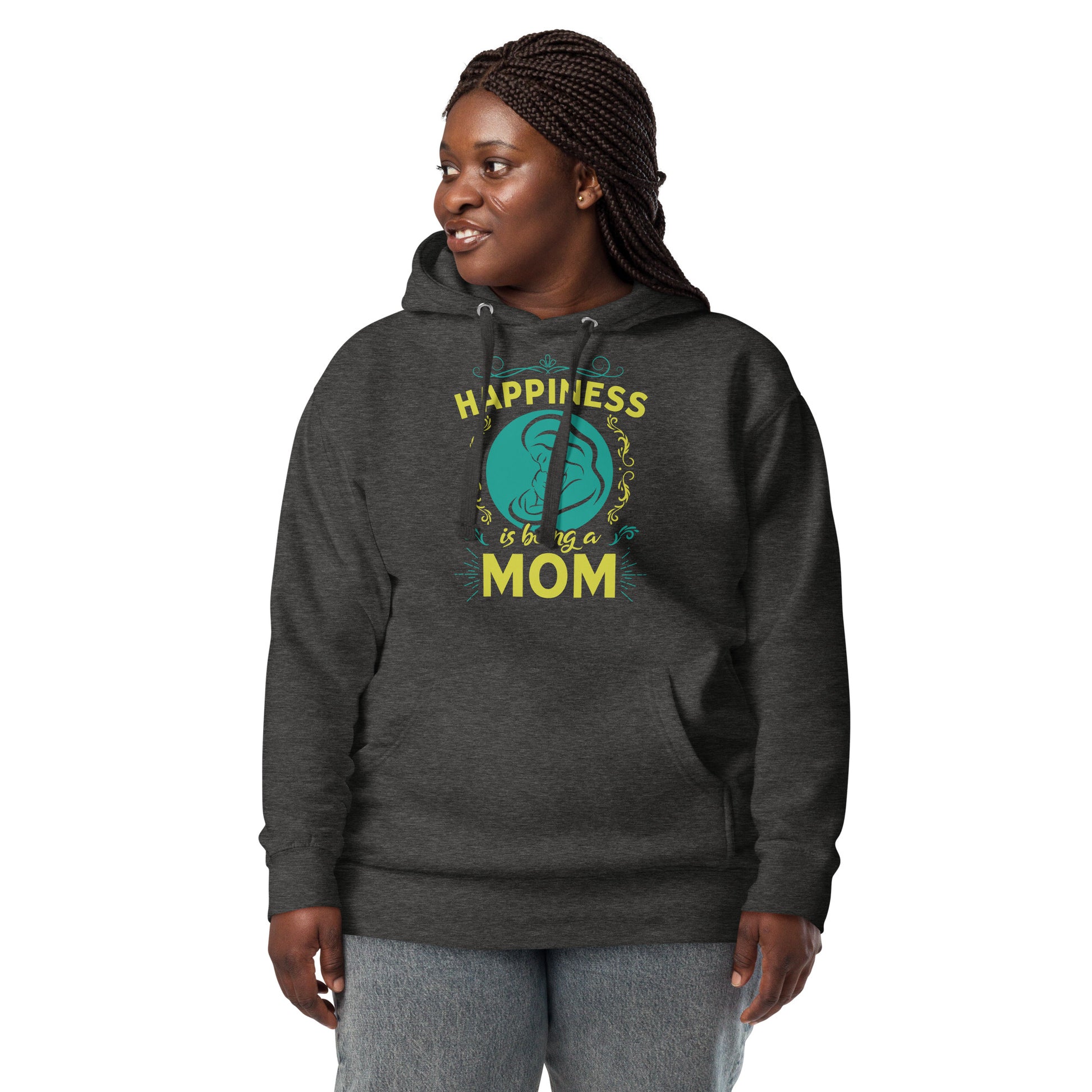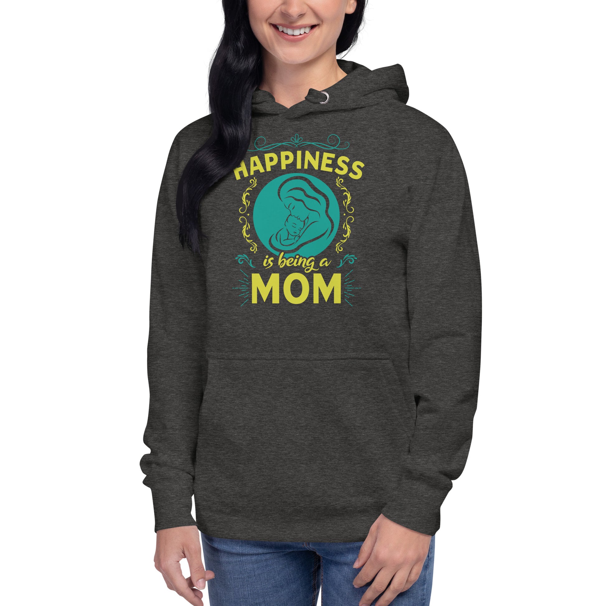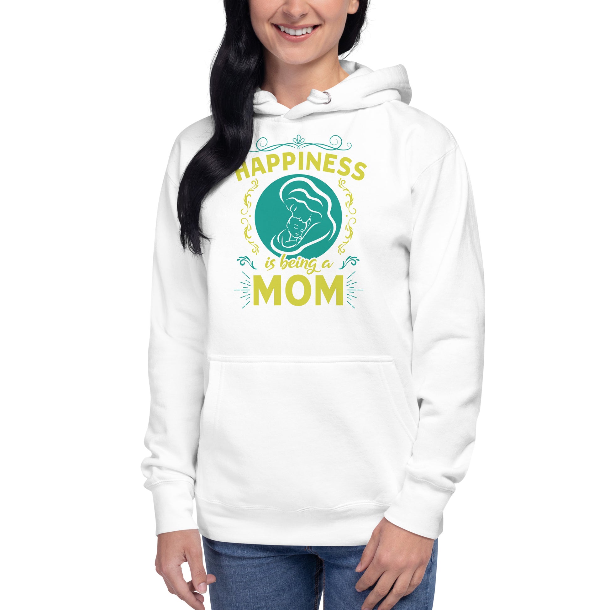 Wrap yourself in the warmth and love of motherhood with our "Happiness is Being a Mom" hoodie. This cozy hoodie showcases a beautiful illustration of a mother's embrace, encircled by a delicate floral design and the touching sentiment "Happiness is Being a Mom." Made from a soft, plush blend of cotton and polyester, this hoodie is perfect for chilly days, family gatherings, or simply lounging at home. The spacious front pocket provides a convenient spot for storing essentials or keeping your hands warm. Available in a range of sizes and colors, this hoodie makes a wonderful gift for the devoted moms in your life. Who knew that the softest hoodie you'll ever own comes with such a cool design. You won't regret buying this classic streetwear piece of apparel with a convenient pouch pocket and warm hood for chilly evenings.