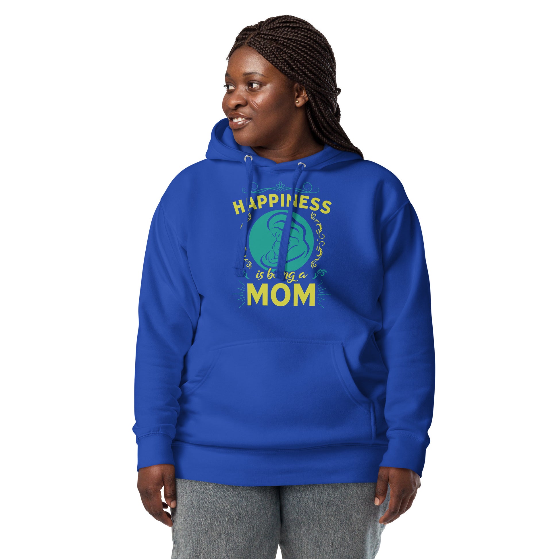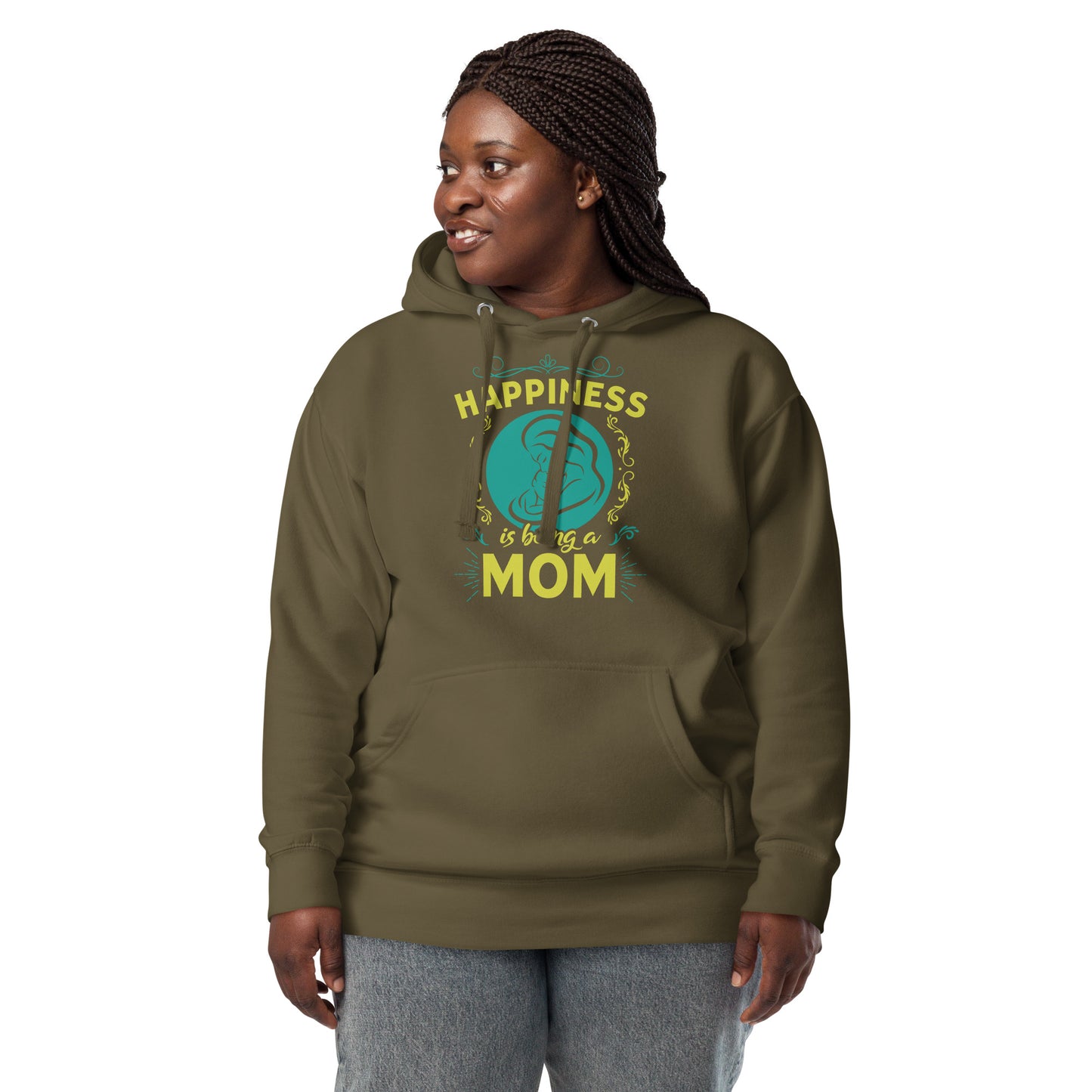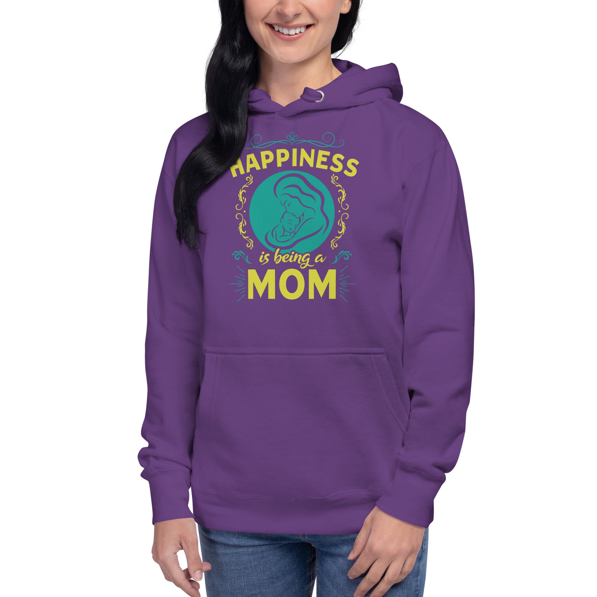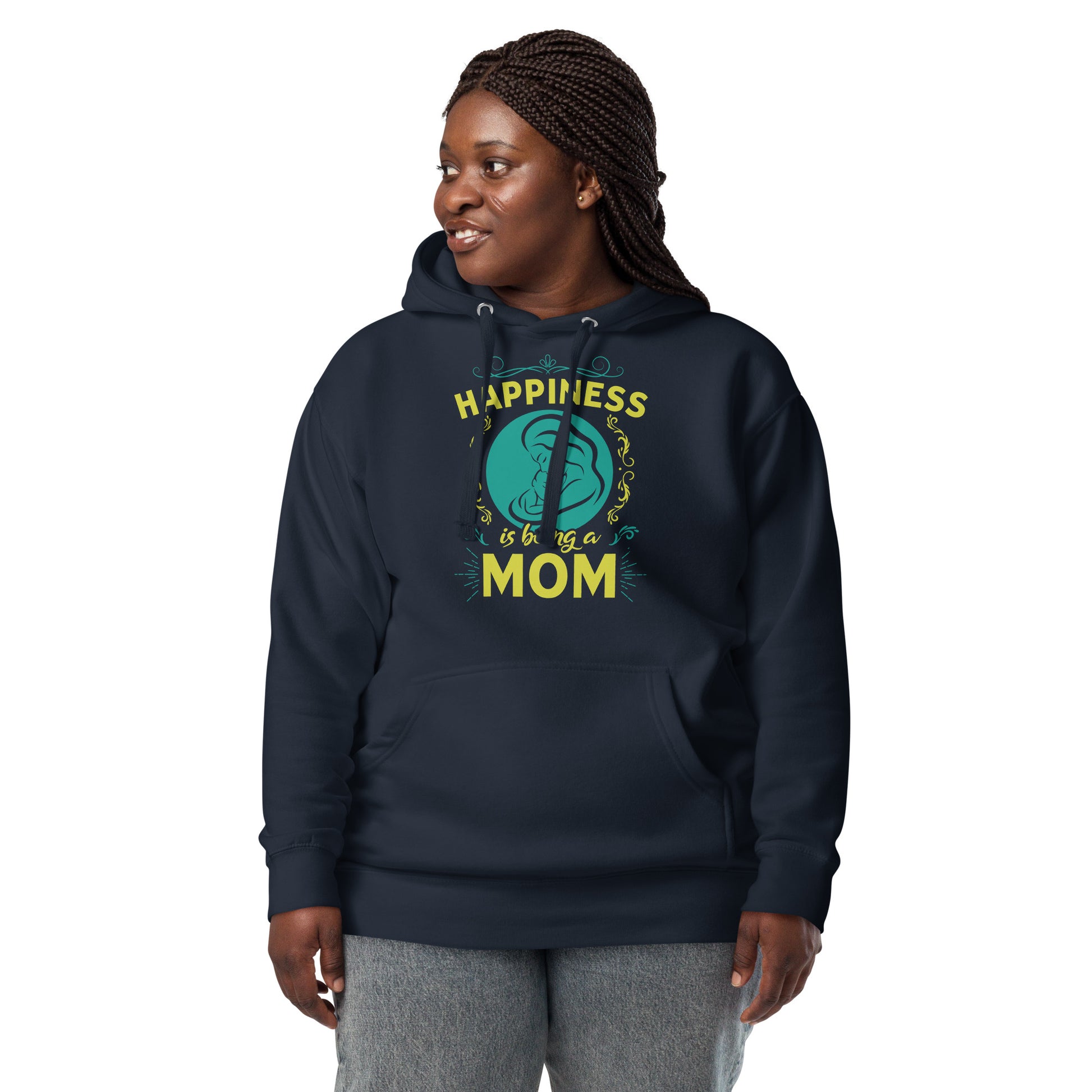 Wrap yourself in the warmth and love of motherhood with our "Happiness is Being a Mom" hoodie. This cozy hoodie showcases a beautiful illustration of a mother's embrace, encircled by a delicate floral design and the touching sentiment "Happiness is Being a Mom." Made from a soft, plush blend of cotton and polyester, this hoodie is perfect for chilly days, family gatherings, or simply lounging at home. The spacious front pocket provides a convenient spot for storing essentials or keeping your hands warm. Available in a range of sizes and colors, this hoodie makes a wonderful gift for the devoted moms in your life. Who knew that the softest hoodie you'll ever own comes with such a cool design. You won't regret buying this classic streetwear piece of apparel with a convenient pouch pocket and warm hood for chilly evenings.