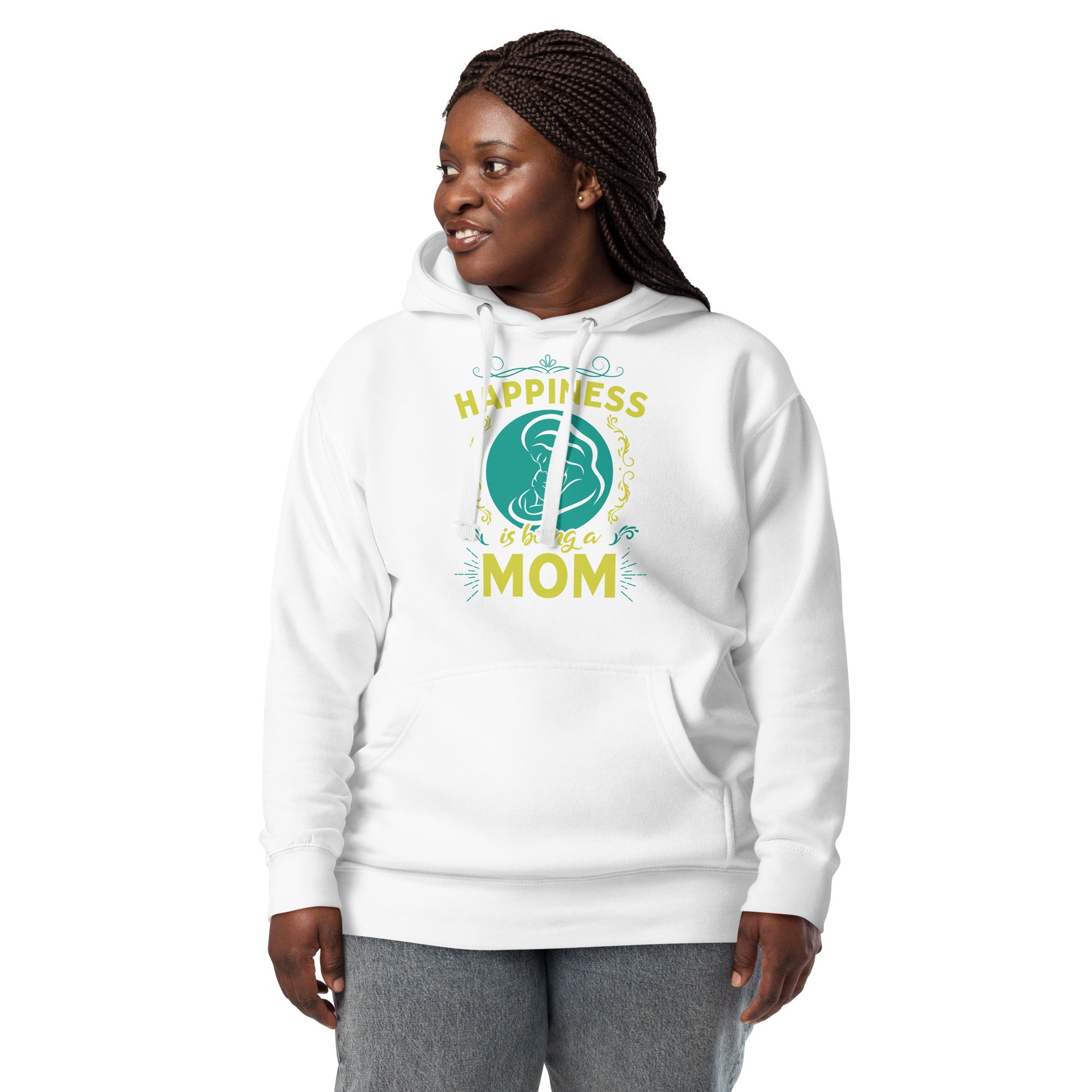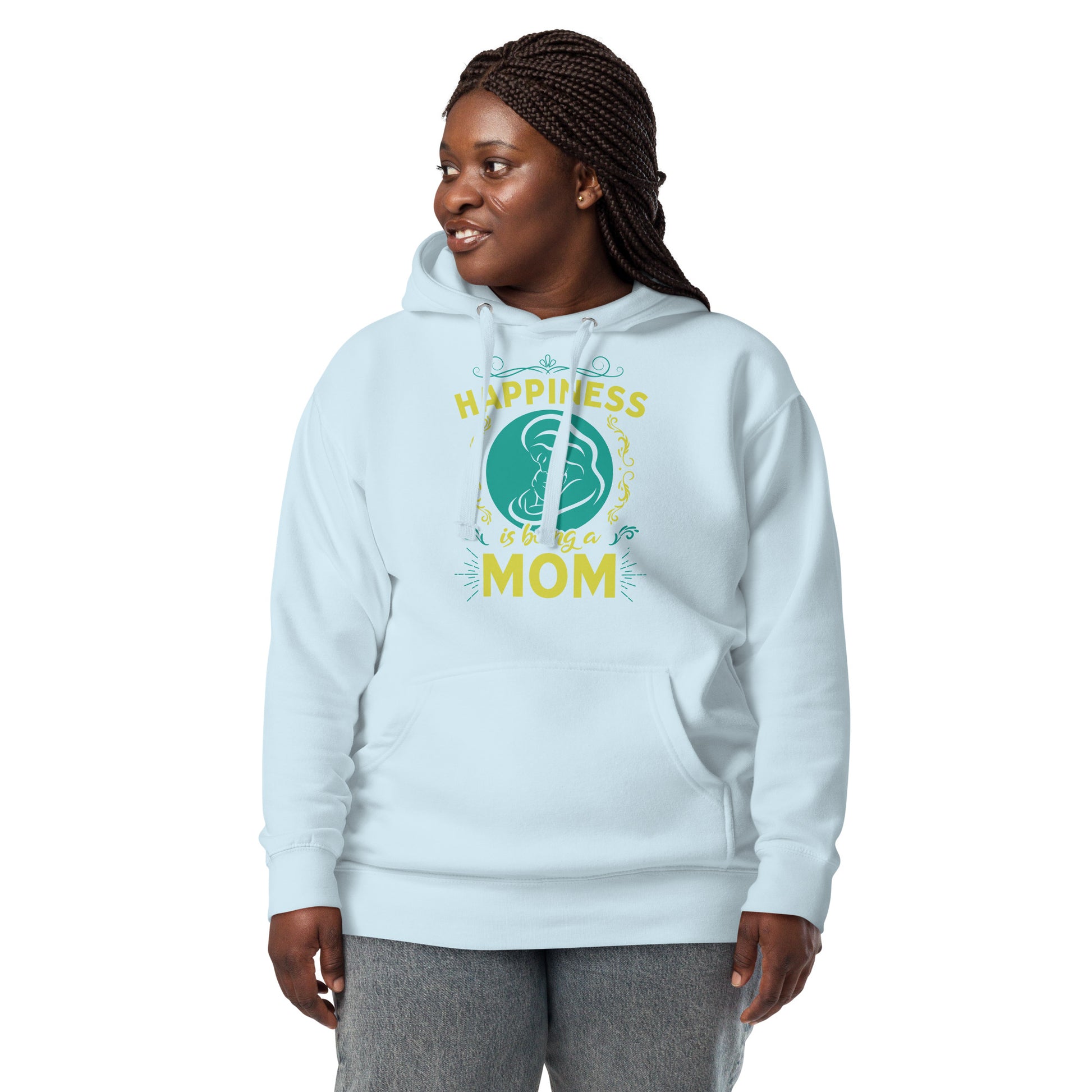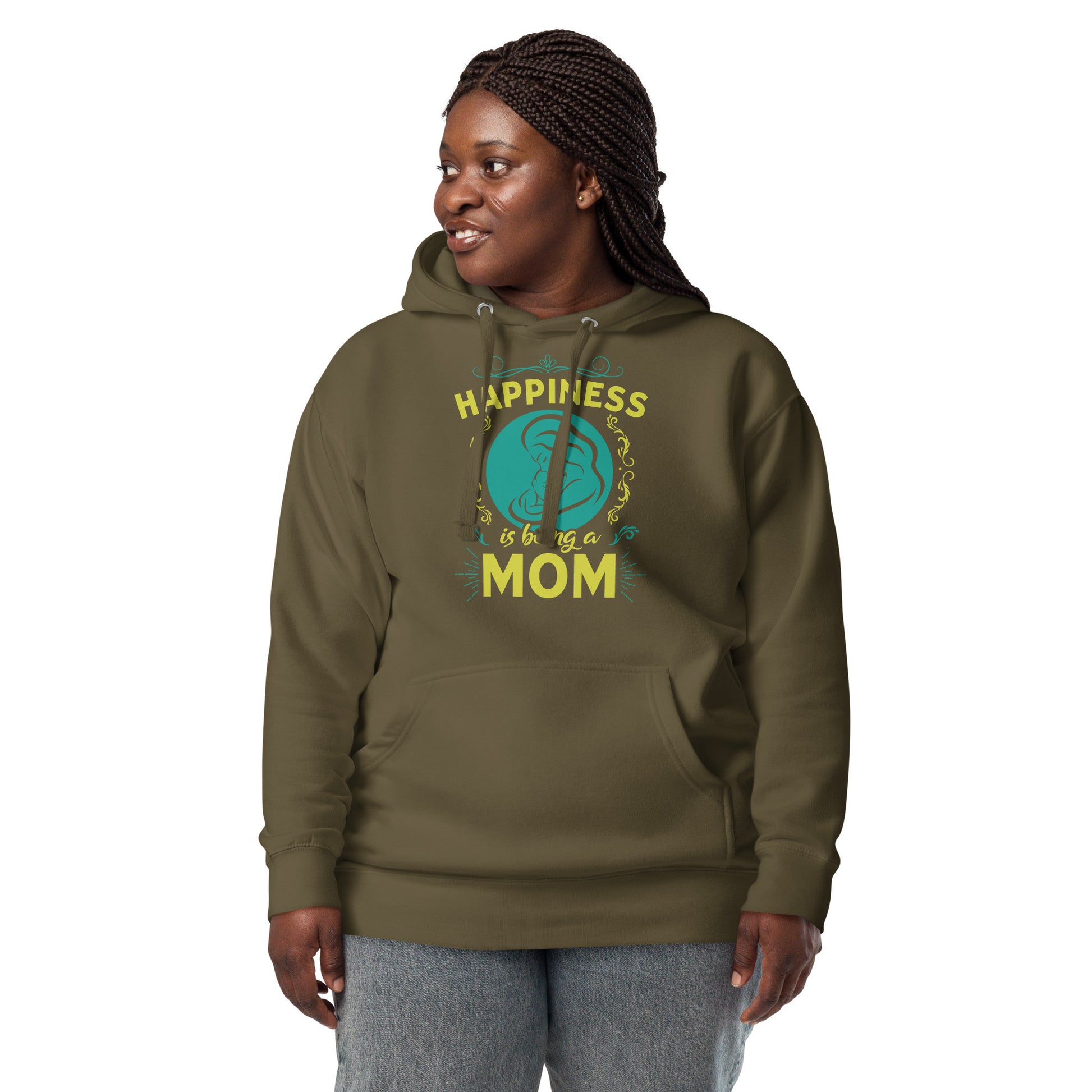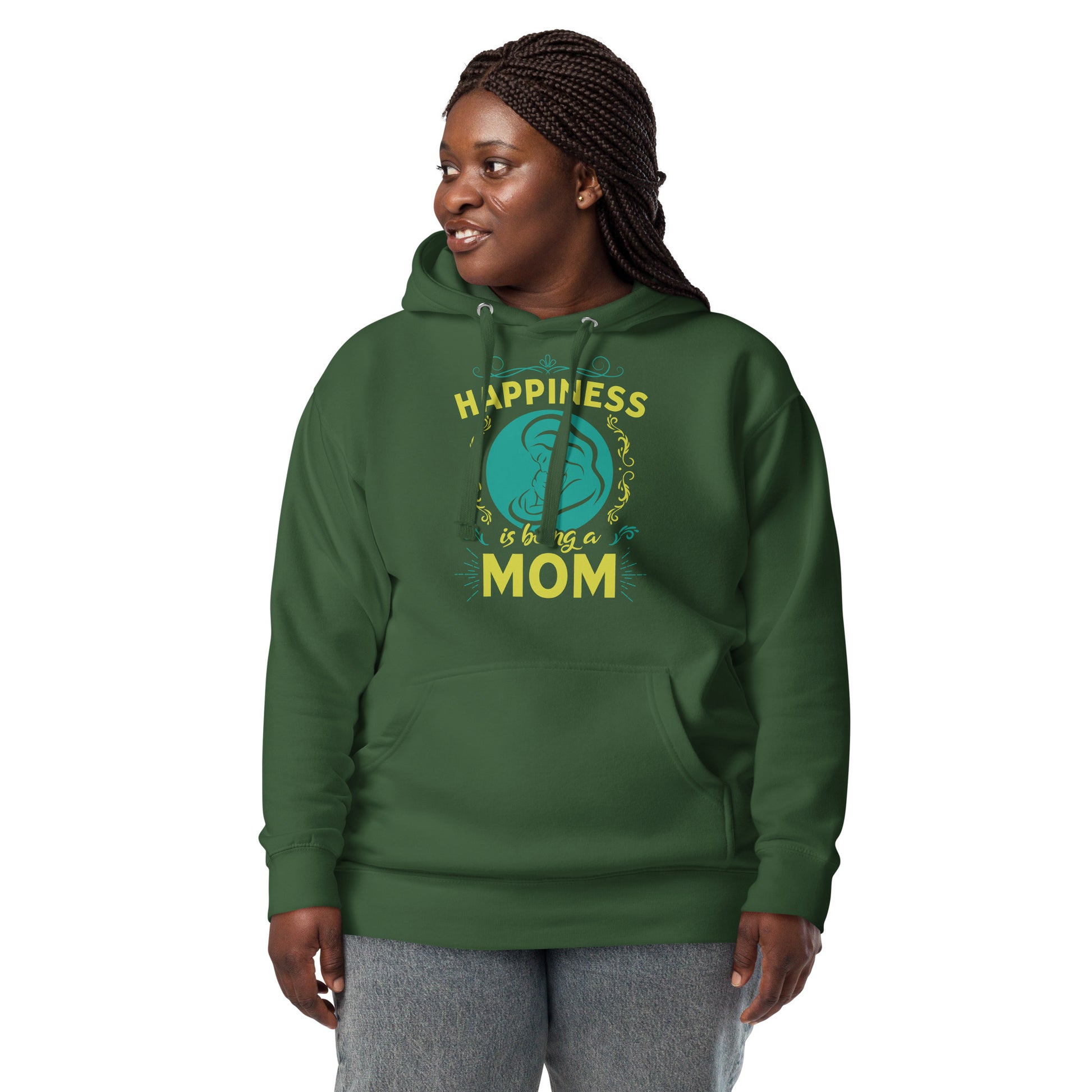 Wrap yourself in the warmth and love of motherhood with our "Happiness is Being a Mom" hoodie. This cozy hoodie showcases a beautiful illustration of a mother's embrace, encircled by a delicate floral design and the touching sentiment "Happiness is Being a Mom." Made from a soft, plush blend of cotton and polyester, this hoodie is perfect for chilly days, family gatherings, or simply lounging at home. The spacious front pocket provides a convenient spot for storing essentials or keeping your hands warm. Available in a range of sizes and colors, this hoodie makes a wonderful gift for the devoted moms in your life. Who knew that the softest hoodie you'll ever own comes with such a cool design. You won't regret buying this classic streetwear piece of apparel with a convenient pouch pocket and warm hood for chilly evenings.