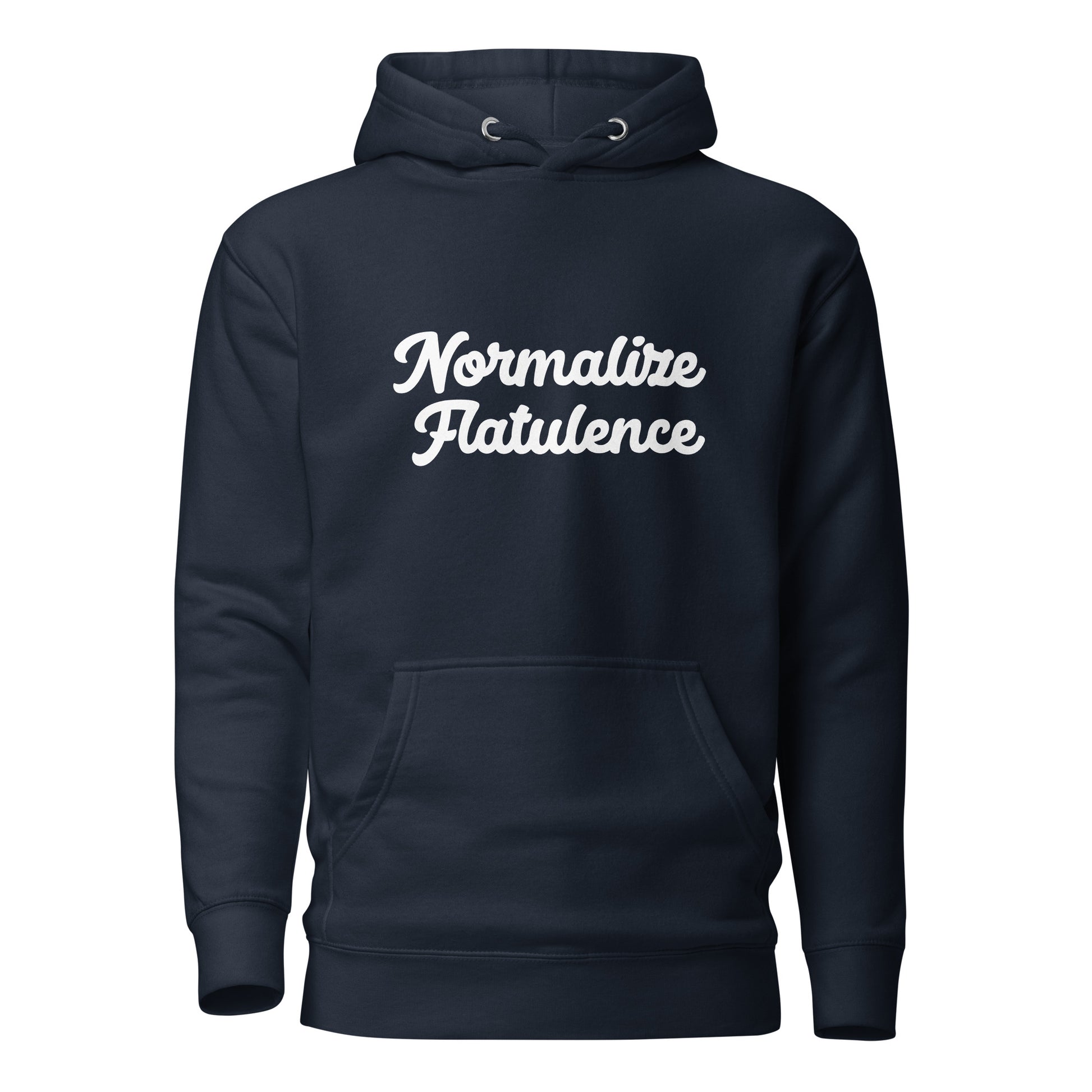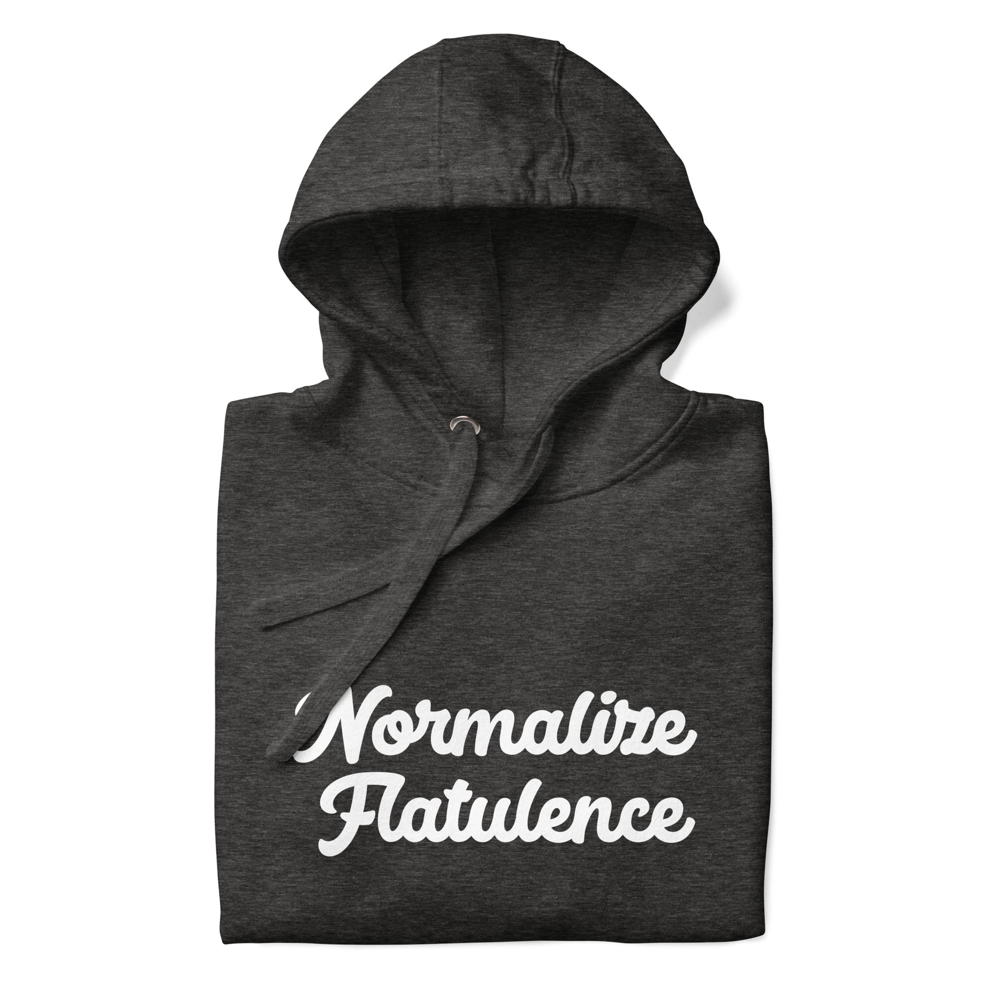 Slip into the ultimate giggle gear with our "Normalize Flatulence" hoodie. It’s a fashion statement that dares to declare what we all do... but seldom admit! This cozy hoodie isn’t just about keeping you warm; it's about breaking the ice with a silent-but-deadly sense of humor. Perfect for those with the guts to acknowledge that every now and then, we all toot our own horn. Whether you're chilling at home, stepping out for a casual hangout, or just looking to lift spirits (and maybe a few eyebrows), this hoodie guarantees a burst of laughter. It’s not just a piece. Who knew that the softest hoodie you'll ever own comes with such a cool design. You won't regret buying this classic streetwear piece of apparel with a convenient pouch pocket and warm hood for chilly evenings.