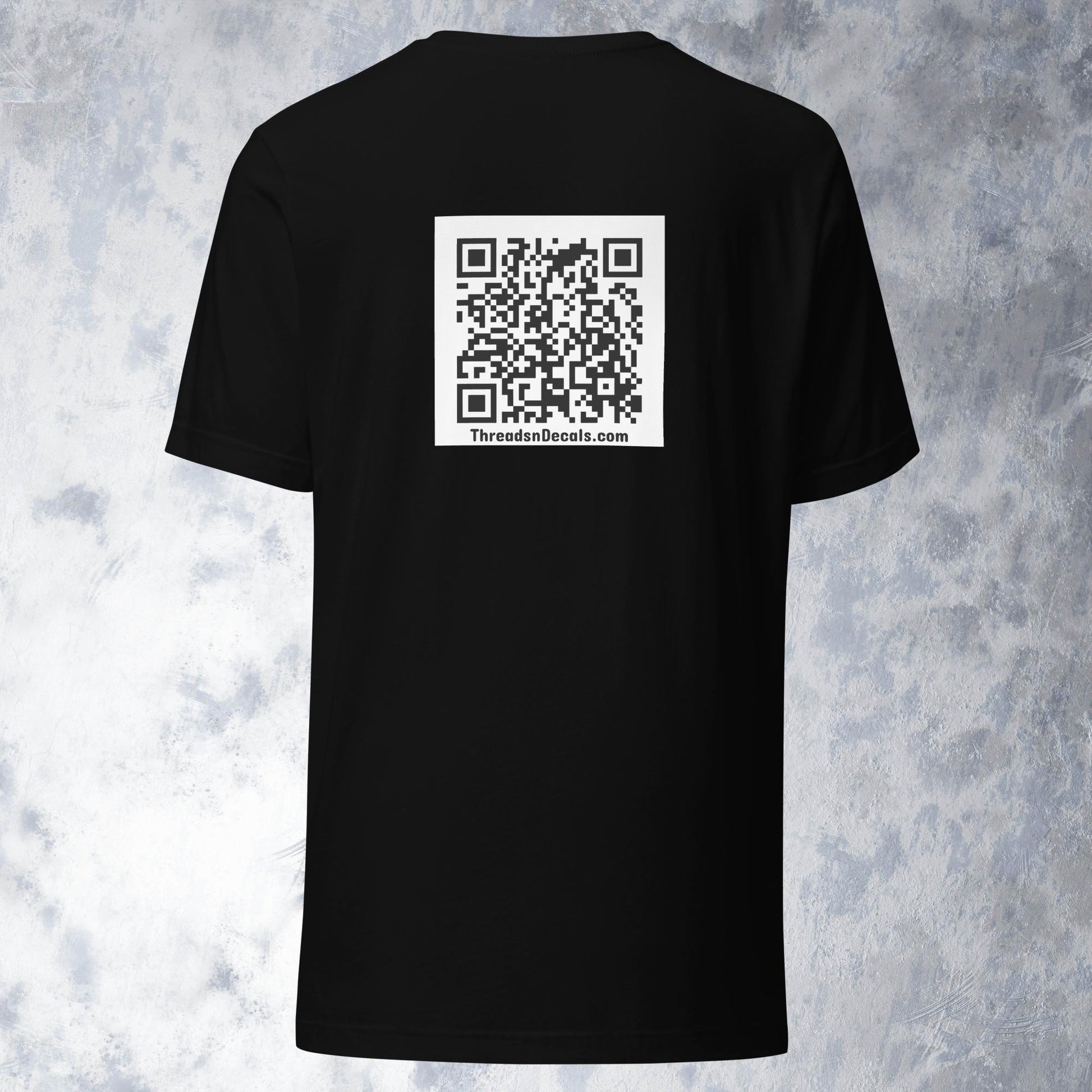 Get ready to turn heads with this unique QR code shirt. The clean front design keeps you casual, while the QR code on the back brings the person scanning it to an uplifting positive message.
