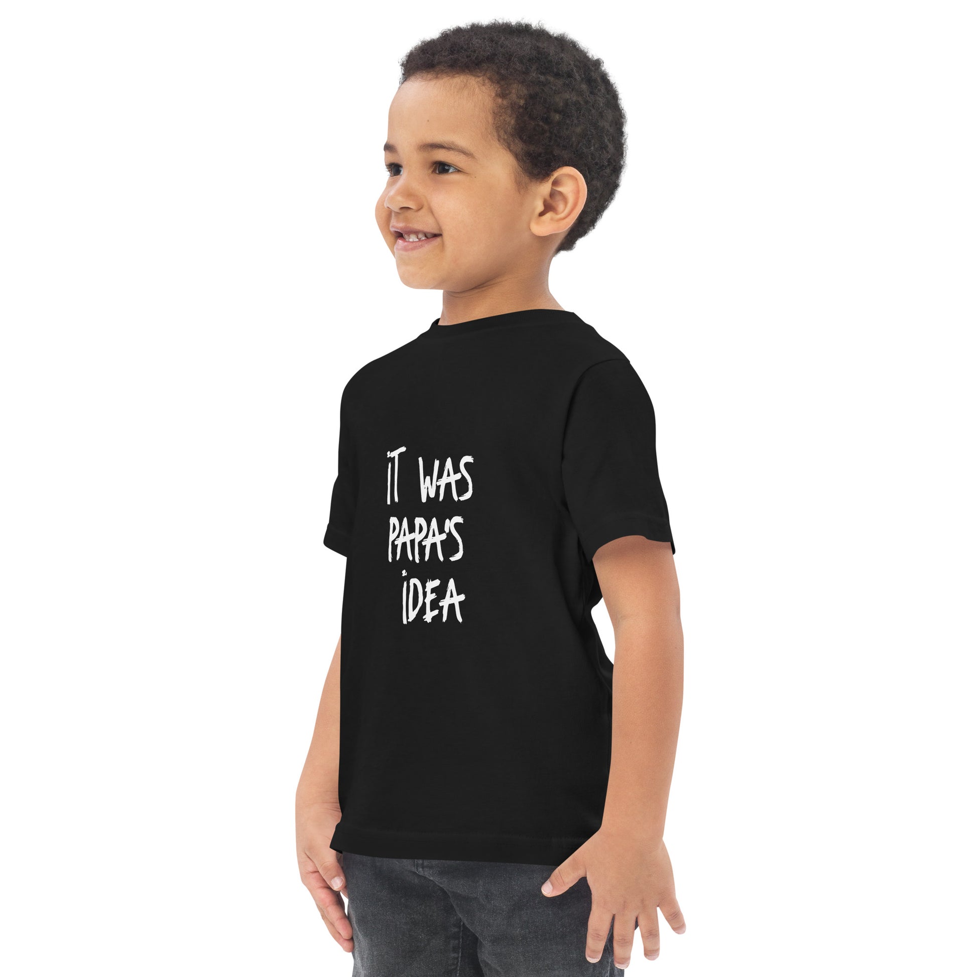 Unleash your toddler's playful spirit with our charming "It Was Papa's Idea" T-Shirt! Crafted for the little adventurers, this tee is a heartwarming tribute to the fun and sometimes mischievous bond shared with grandpa. It's more than just a tee, it's a story of giggles and shared secrets.