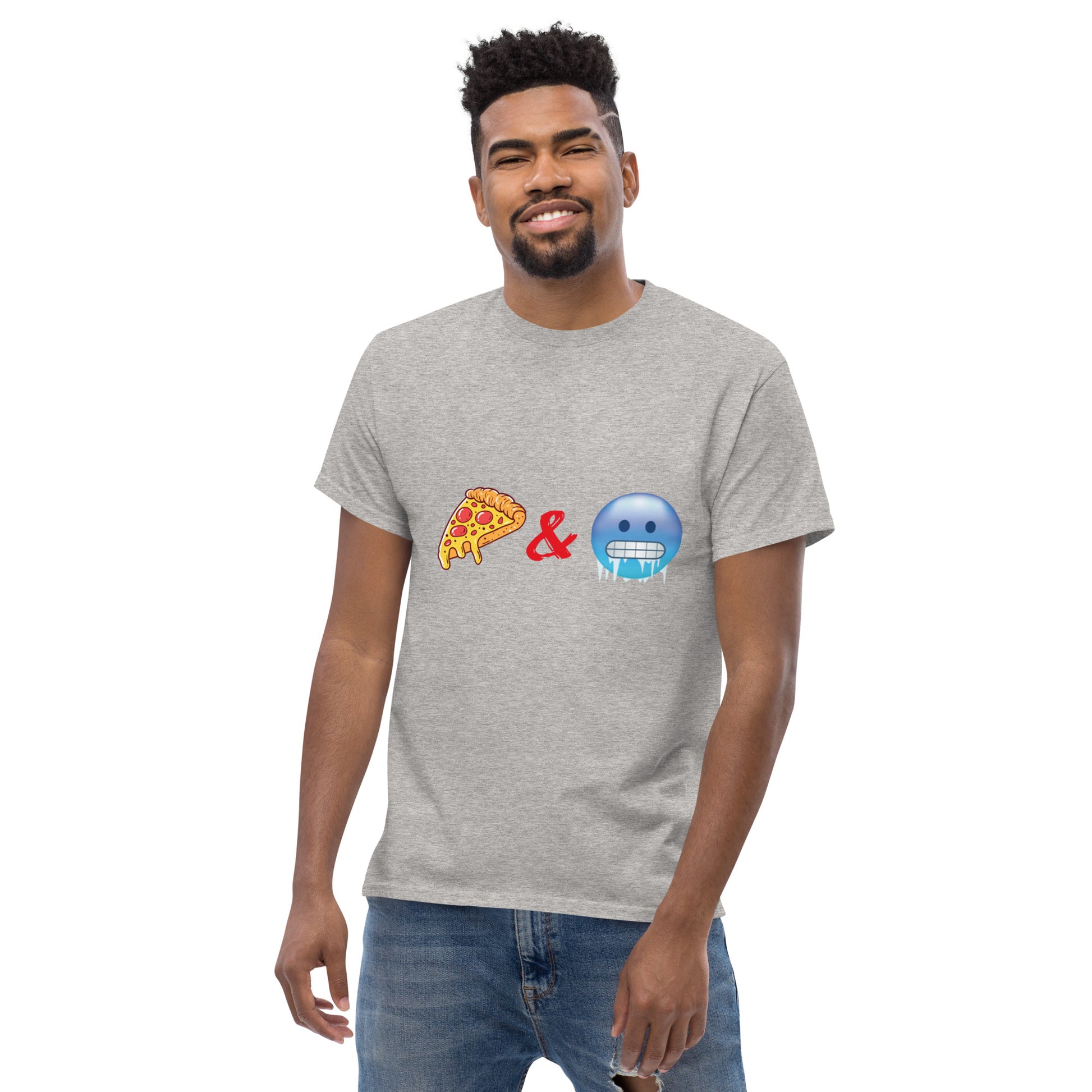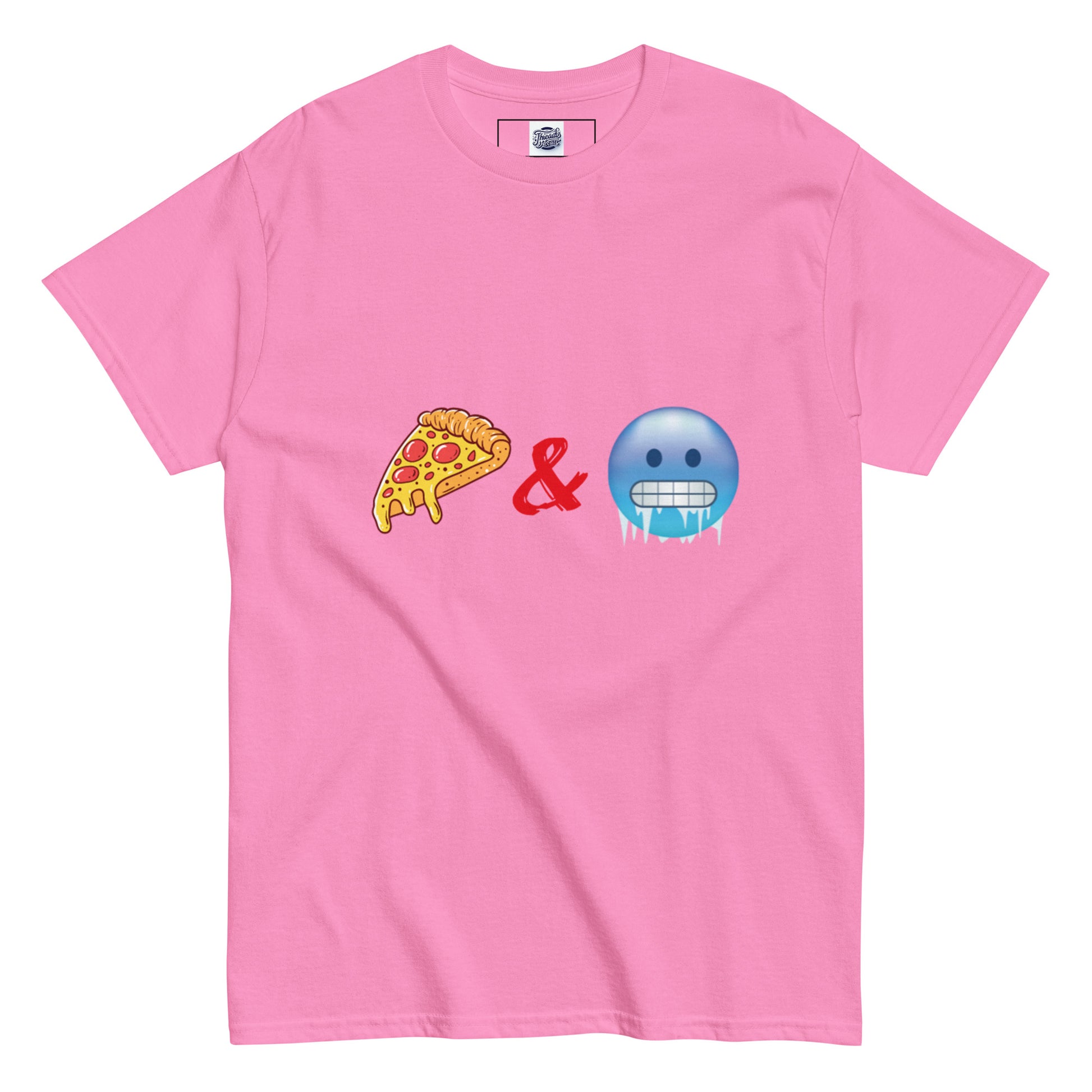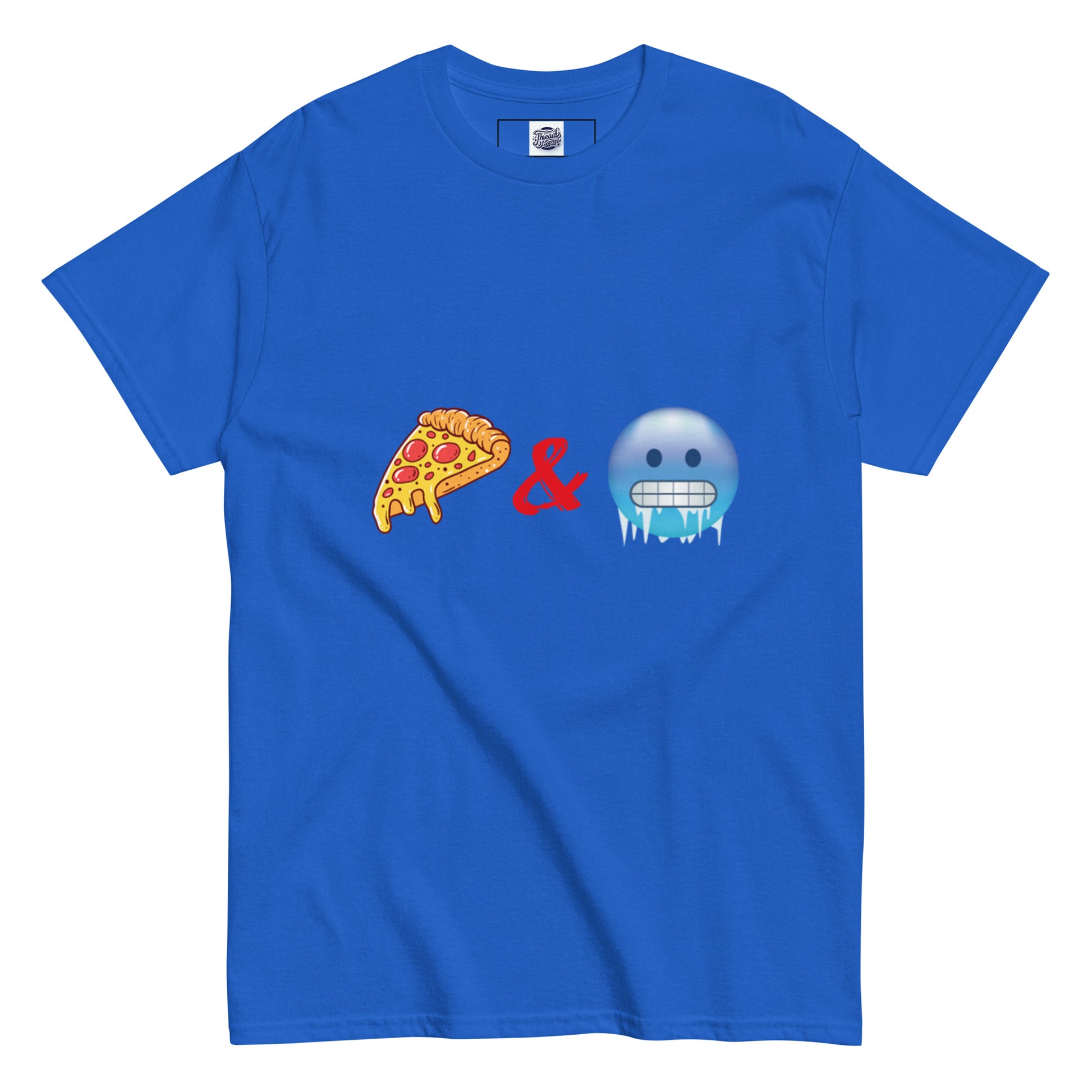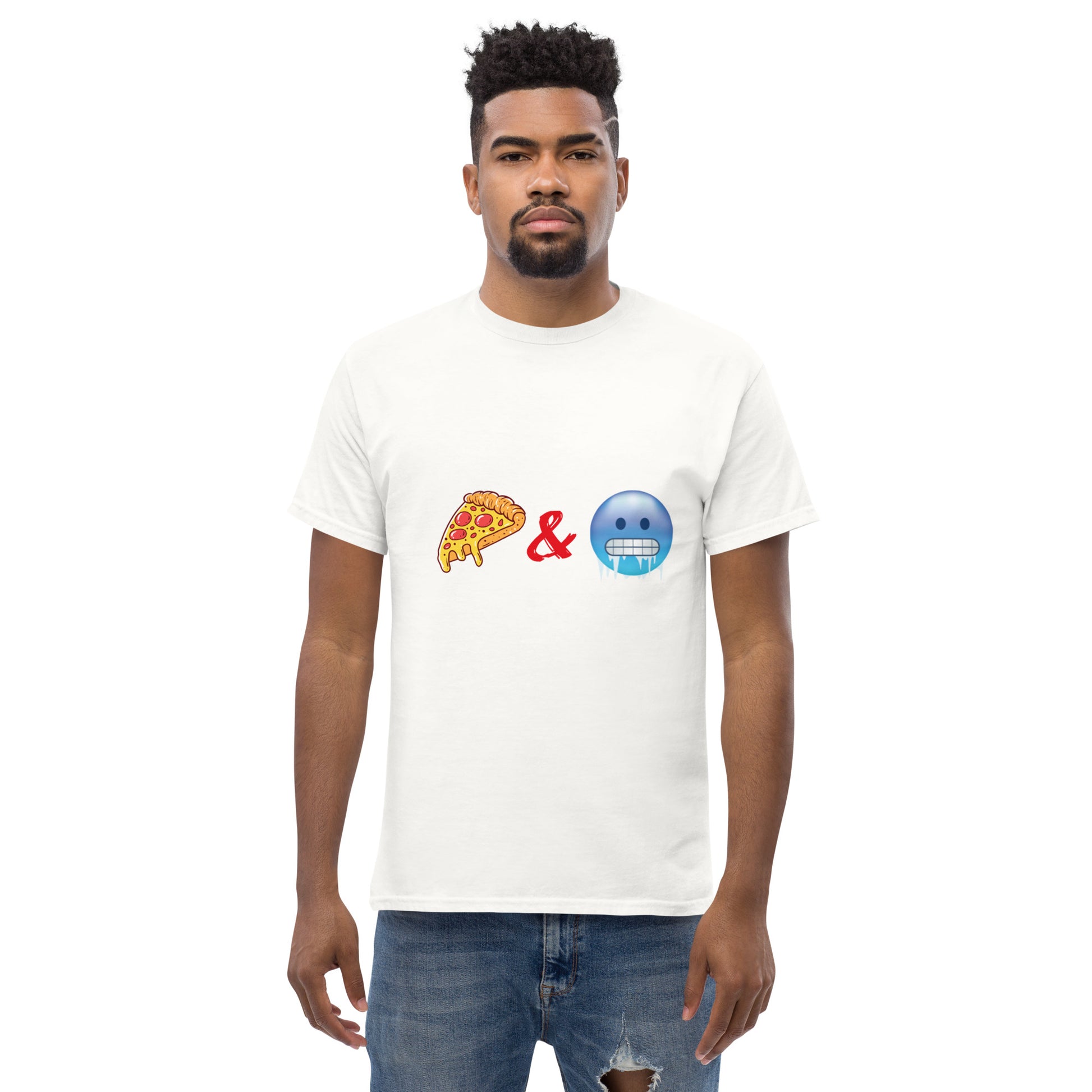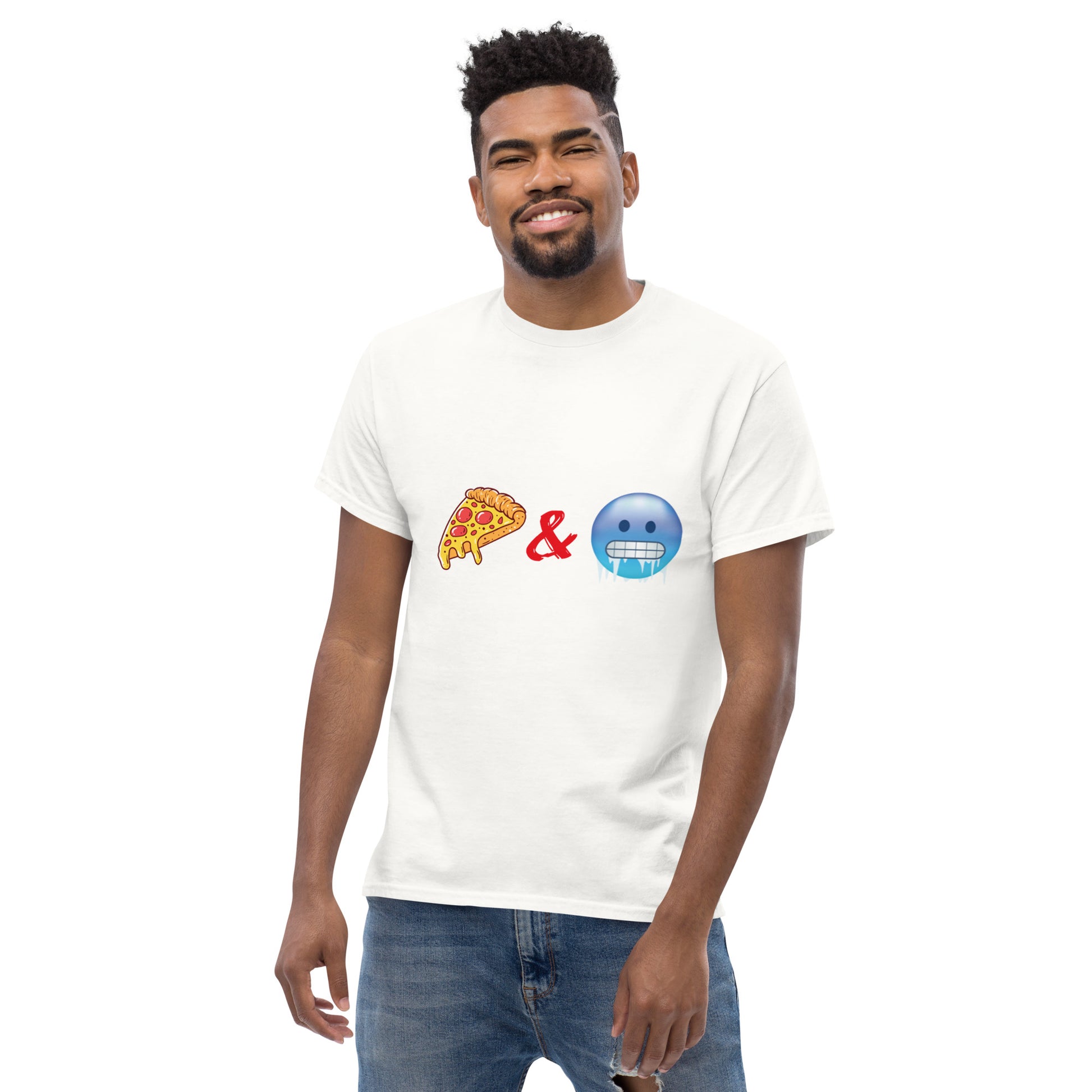 Cook up some laughs with our "Pizza & Chill" Tee, where emojis take center stage to serve you a slice of humor! This shirt, showcases the internet's favorite food-tainment combo: a scrumptious pizza slice and a frosty blue pal exuding those cool, chill-out vibes. The recipe is simple: take one part comfort, one part conversation starter, and a generous helping of playful graphics. This tee is spun from cotton so soft, you'll think you fell into a dough mixer. Ideal for those who pledge allegiance to the pizza party lifestyle and live by the mantra of keeping things breezy. It's not just a piece of clothing; it's the crust to your pizza life. Throw it on and let the world know that you're in the mood for pizza and relaxation – now that's a topping no one can refuse!The 100% cotton men's classic tee will help you land a more structured look. It sits nicely, maintains sharp lines around the edges, and goes perfectly with layered streetwear outfits. Plus, it's extra trendy now!