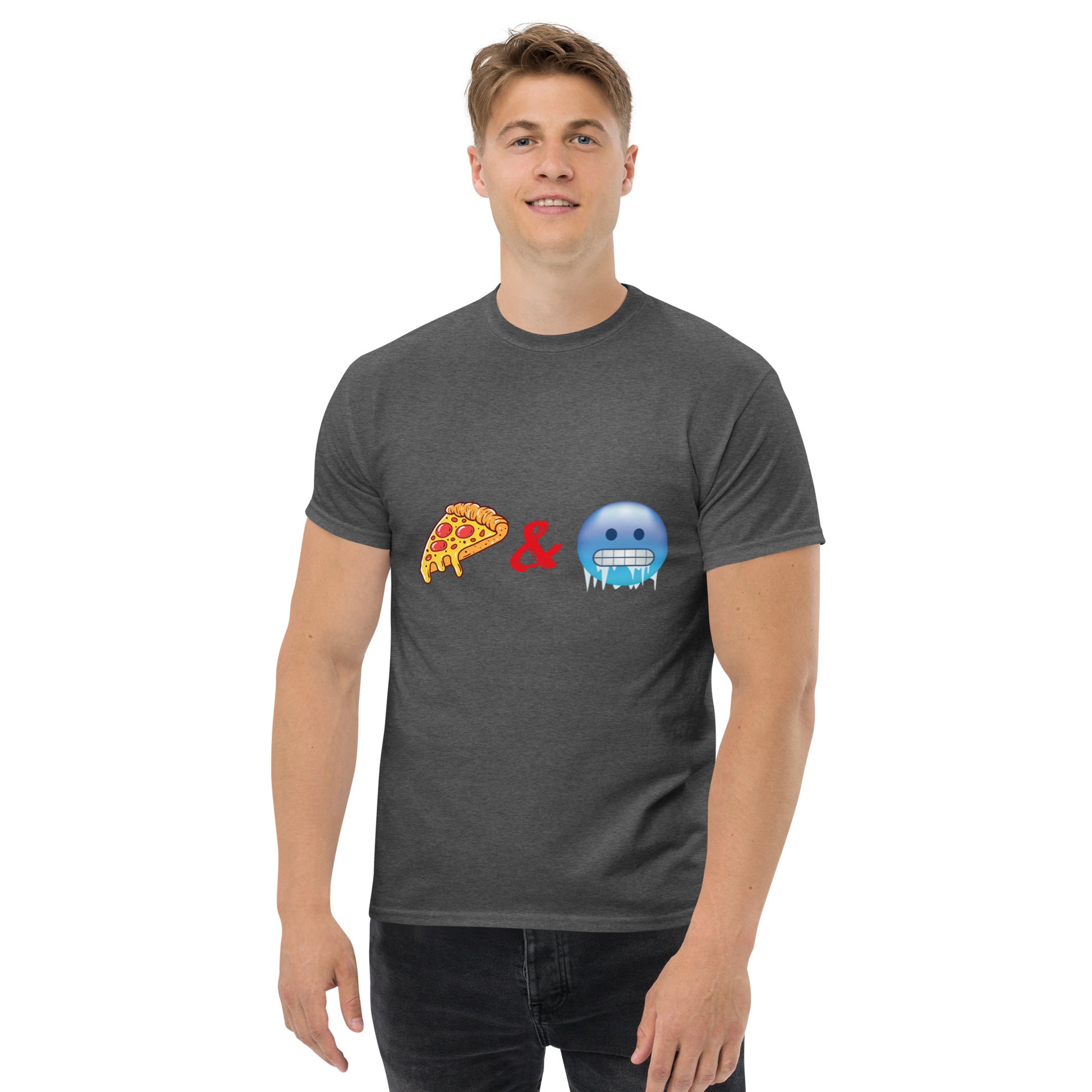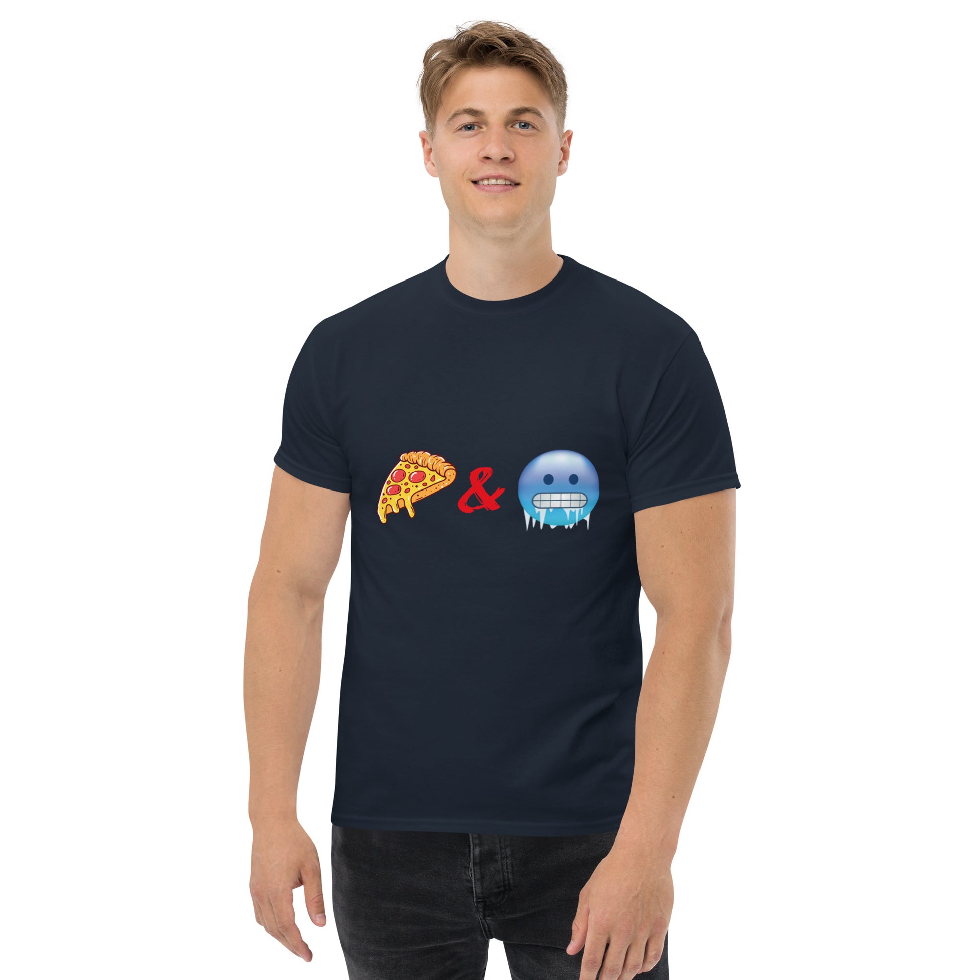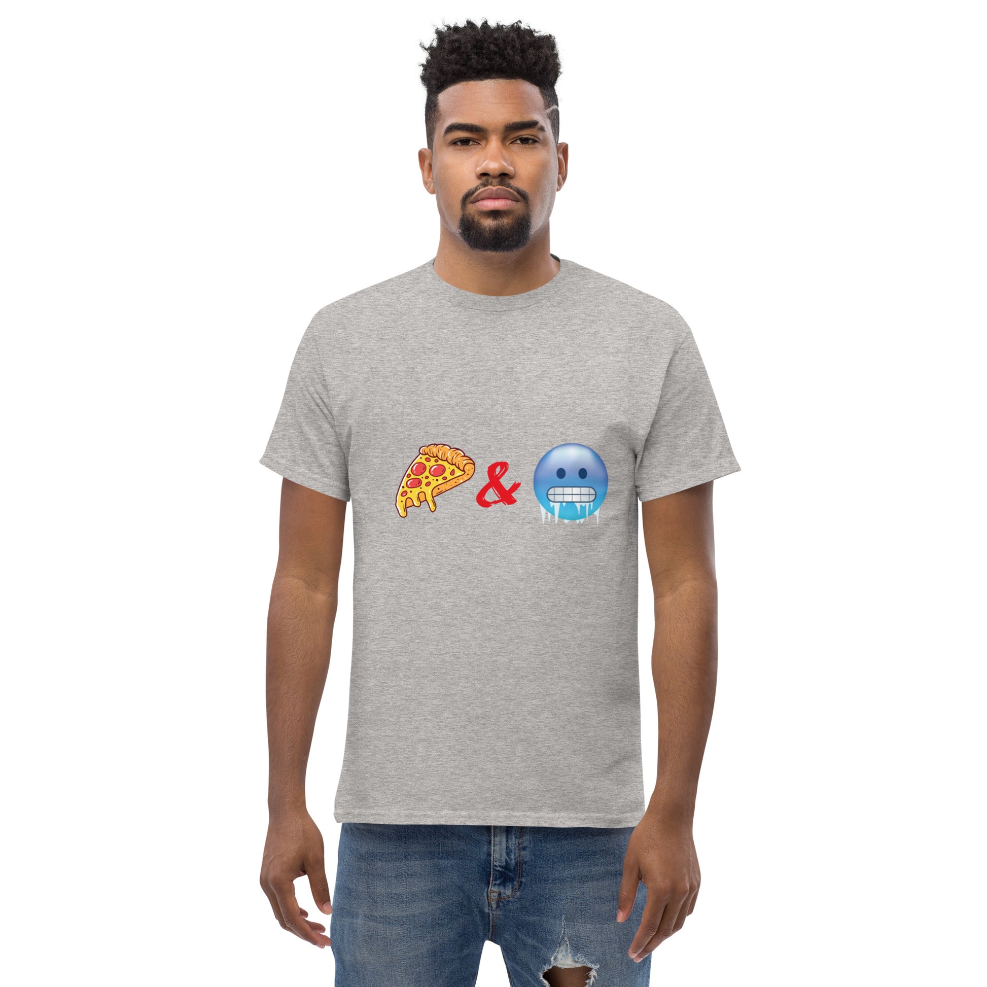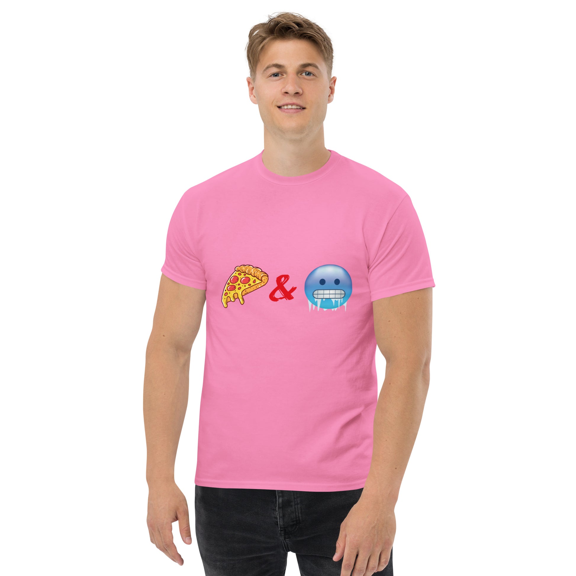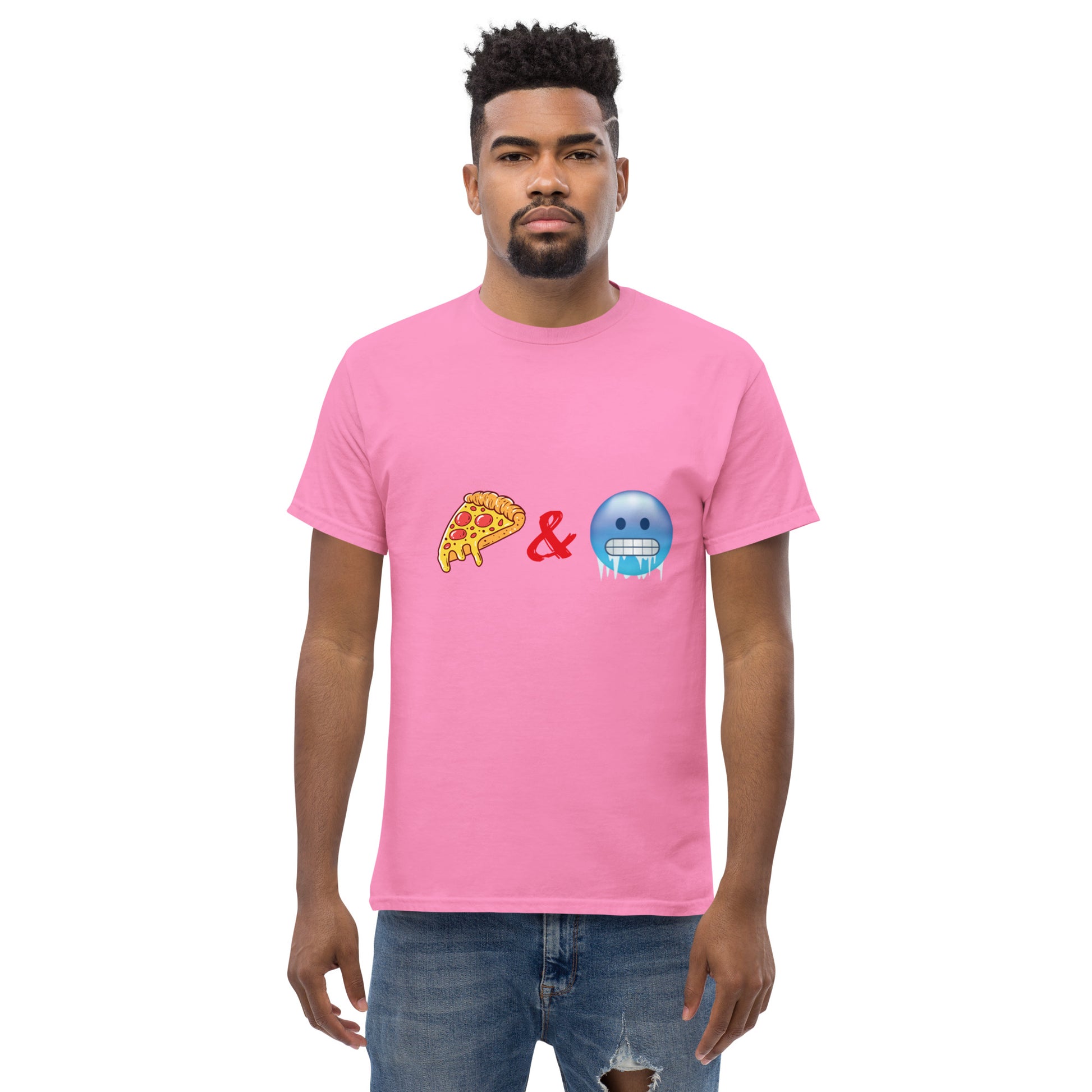 Cook up some laughs with our "Pizza & Chill" Tee, where emojis take center stage to serve you a slice of humor! This shirt, showcases the internet's favorite food-tainment combo: a scrumptious pizza slice and a frosty blue pal exuding those cool, chill-out vibes. The recipe is simple: take one part comfort, one part conversation starter, and a generous helping of playful graphics. This tee is spun from cotton so soft, you'll think you fell into a dough mixer. Ideal for those who pledge allegiance to the pizza party lifestyle and live by the mantra of keeping things breezy. It's not just a piece of clothing; it's the crust to your pizza life. Throw it on and let the world know that you're in the mood for pizza and relaxation – now that's a topping no one can refuse!The 100% cotton men's classic tee will help you land a more structured look. It sits nicely, maintains sharp lines around the edges, and goes perfectly with layered streetwear outfits. Plus, it's extra trendy now!