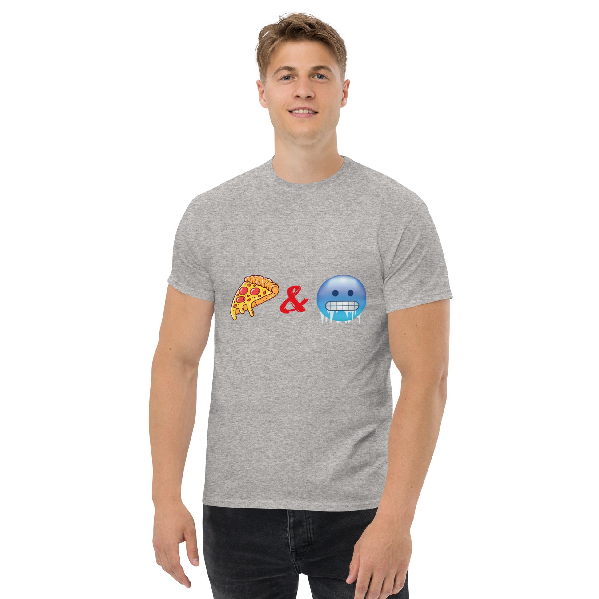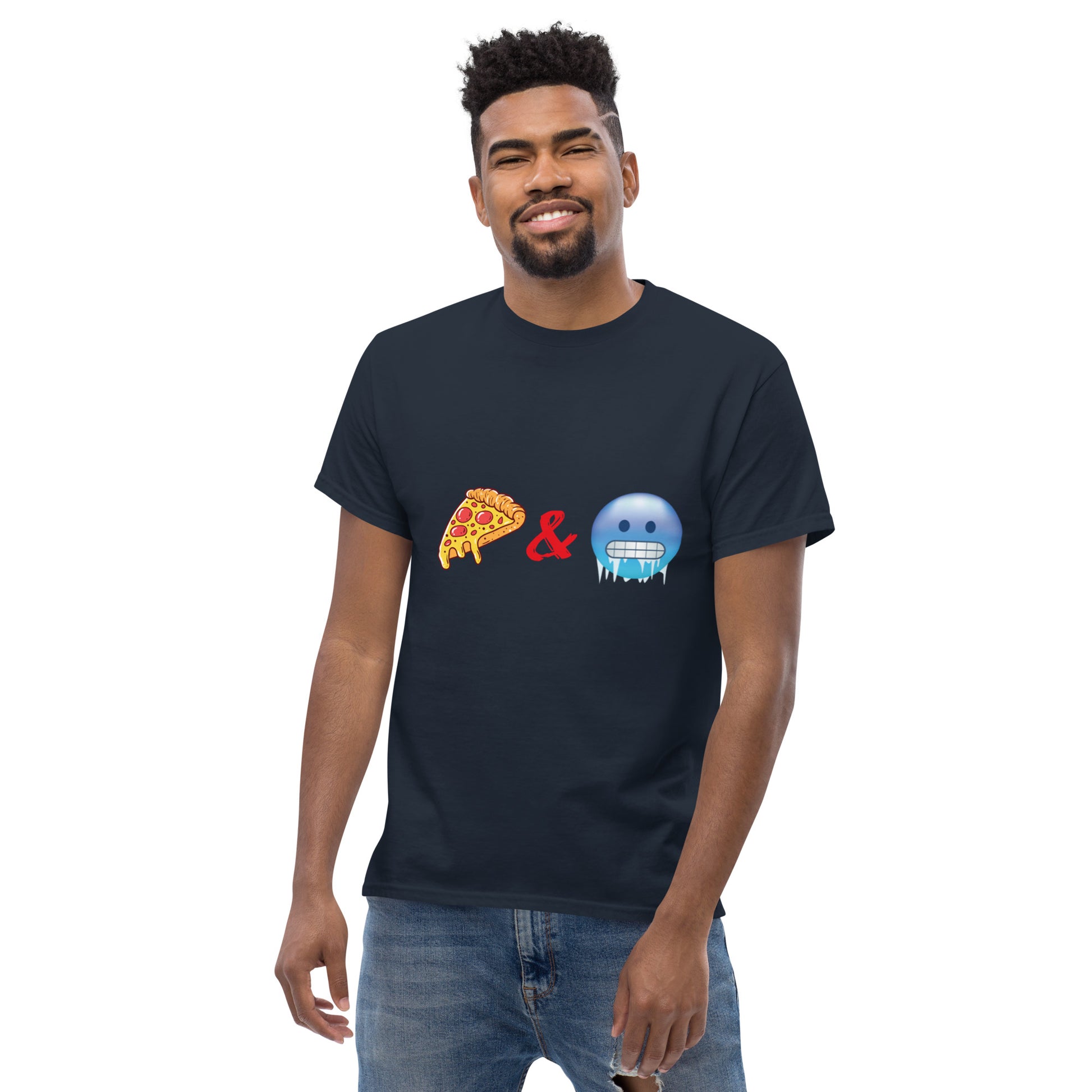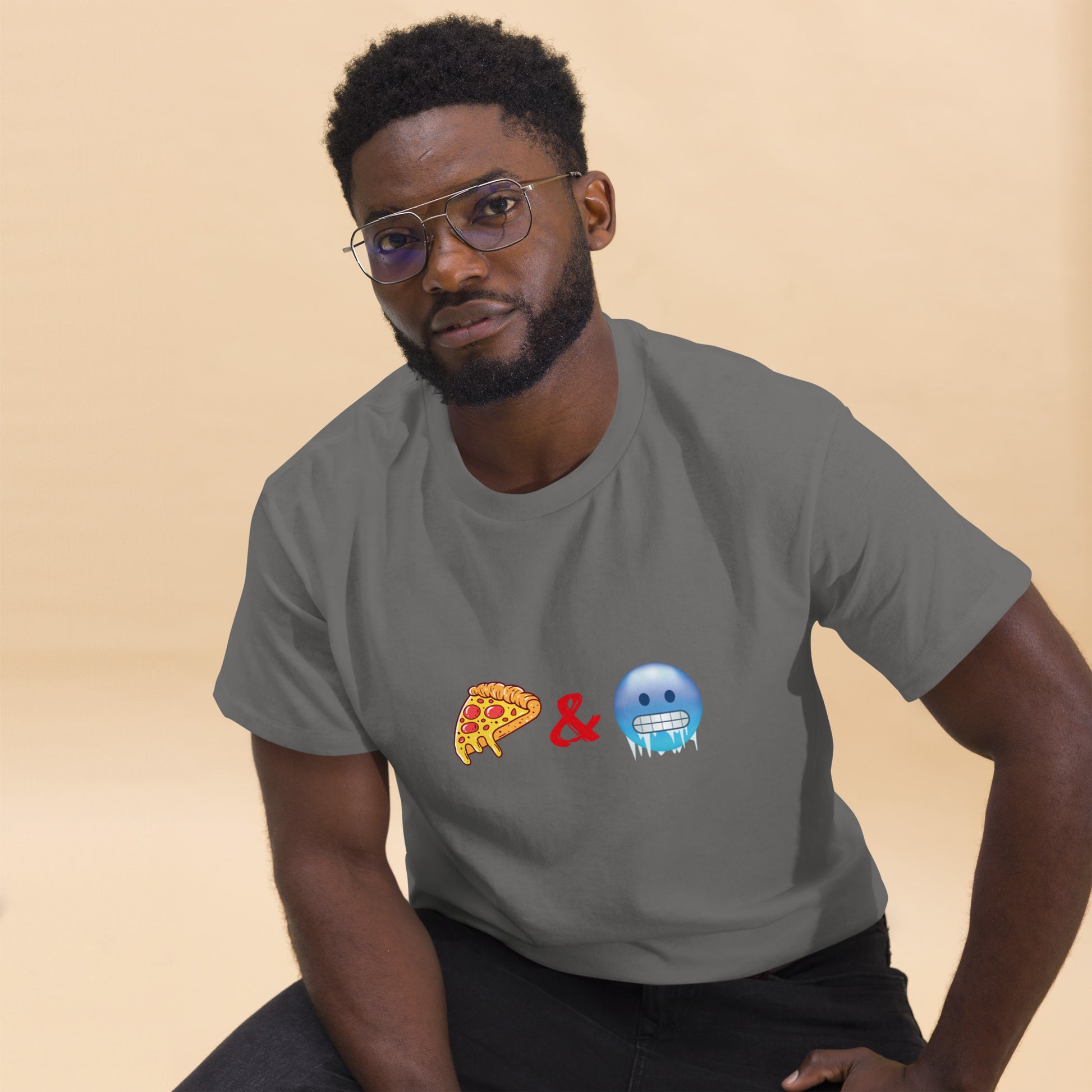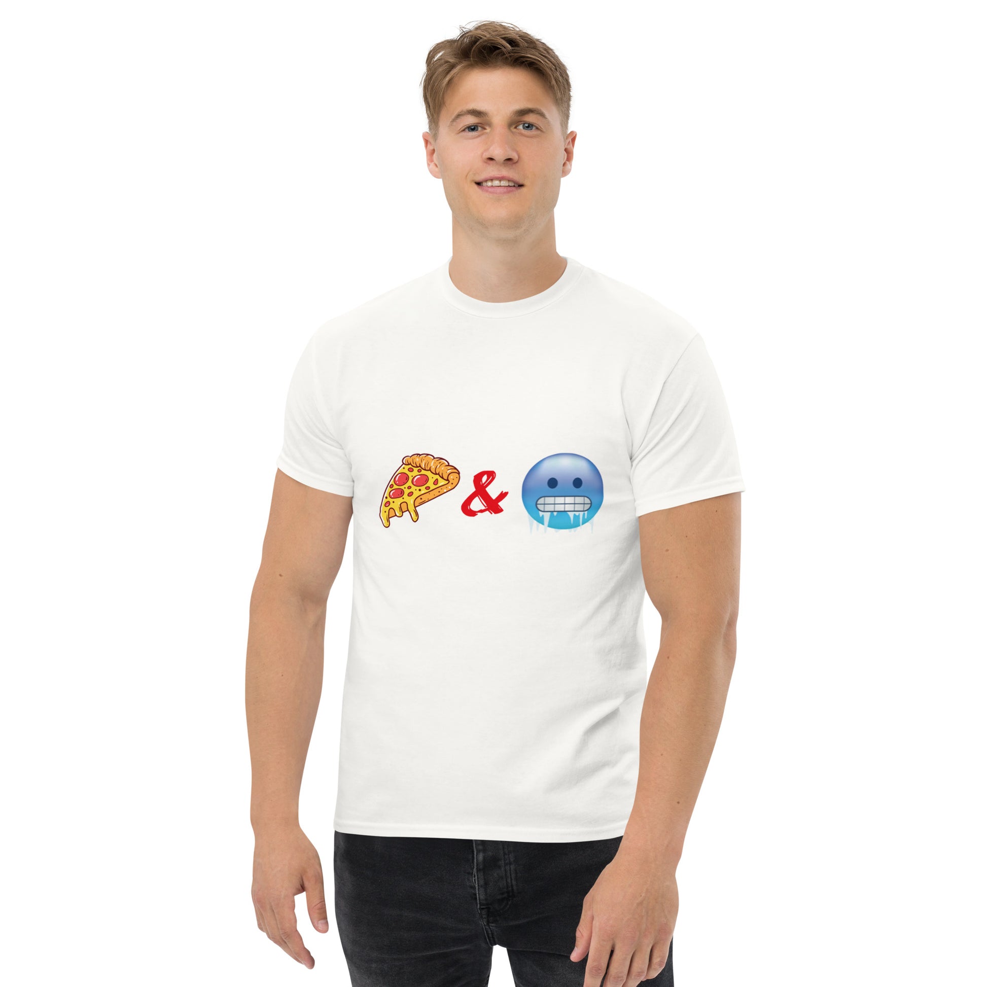 Cook up some laughs with our "Pizza & Chill" Tee, where emojis take center stage to serve you a slice of humor! This shirt, showcases the internet's favorite food-tainment combo: a scrumptious pizza slice and a frosty blue pal exuding those cool, chill-out vibes. The recipe is simple: take one part comfort, one part conversation starter, and a generous helping of playful graphics. This tee is spun from cotton so soft, you'll think you fell into a dough mixer. Ideal for those who pledge allegiance to the pizza party lifestyle and live by the mantra of keeping things breezy. It's not just a piece of clothing; it's the crust to your pizza life. Throw it on and let the world know that you're in the mood for pizza and relaxation – now that's a topping no one can refuse!The 100% cotton men's classic tee will help you land a more structured look. It sits nicely, maintains sharp lines around the edges, and goes perfectly with layered streetwear outfits. Plus, it's extra trendy now!