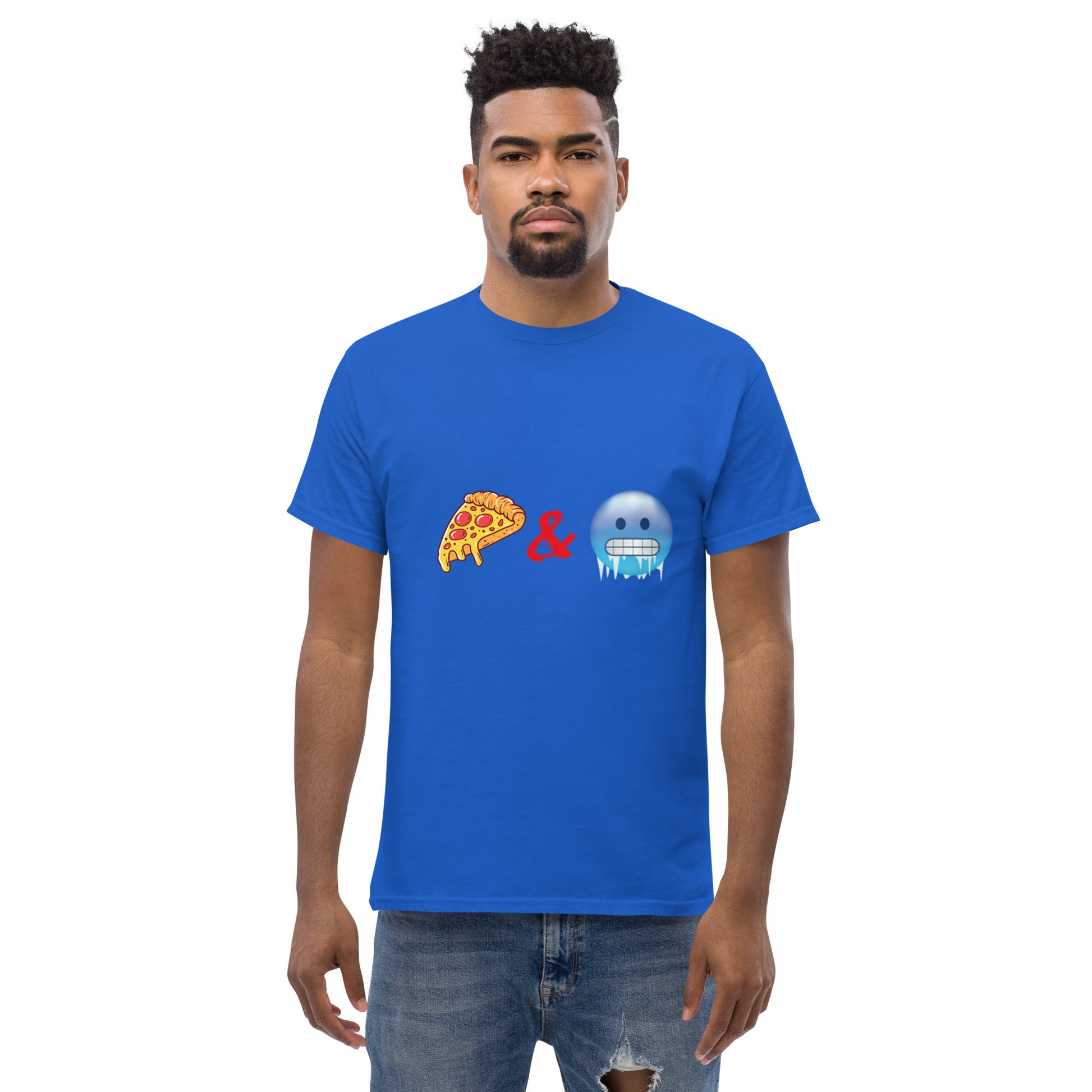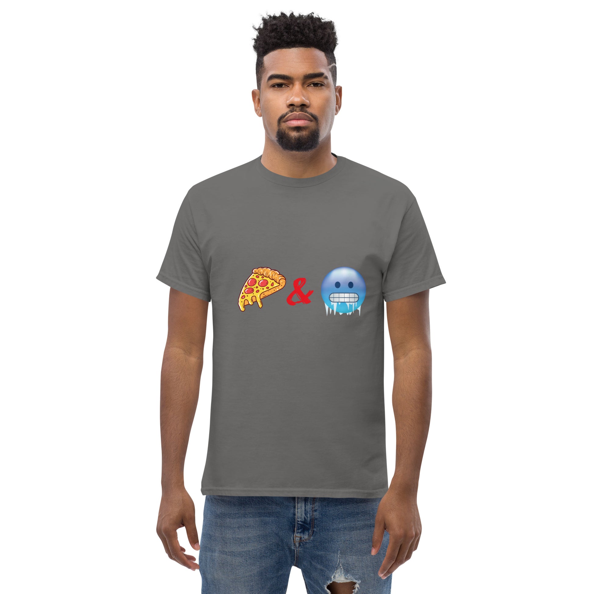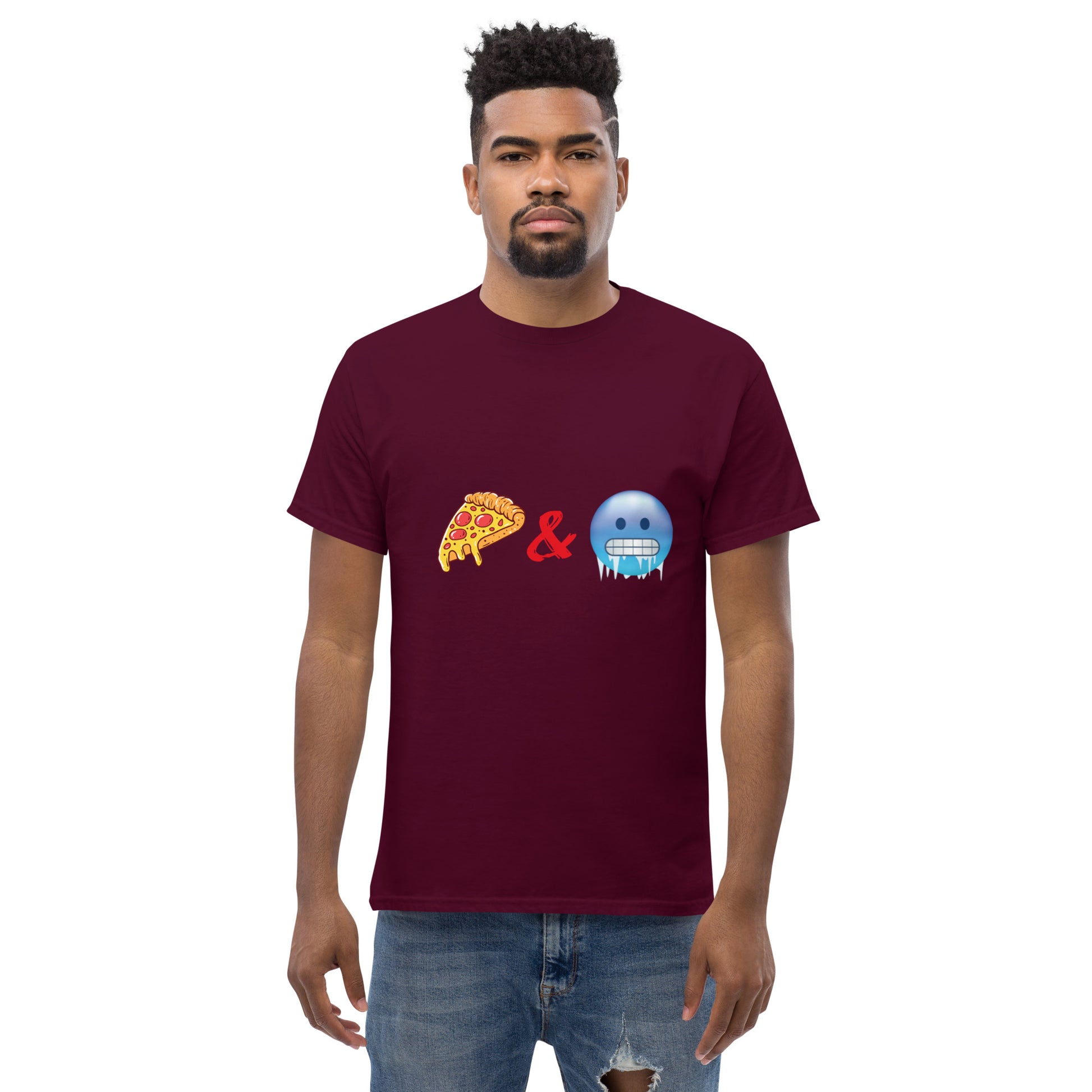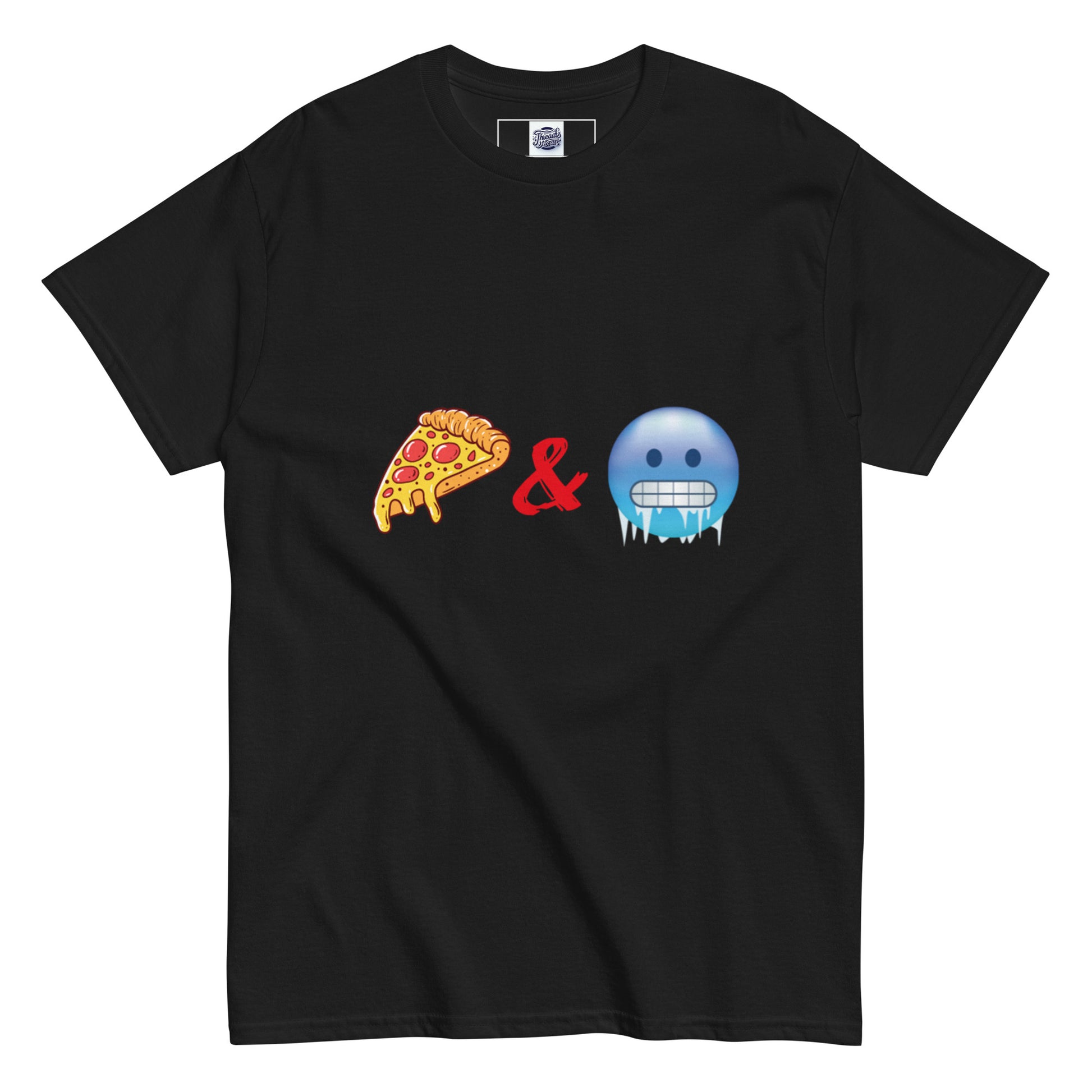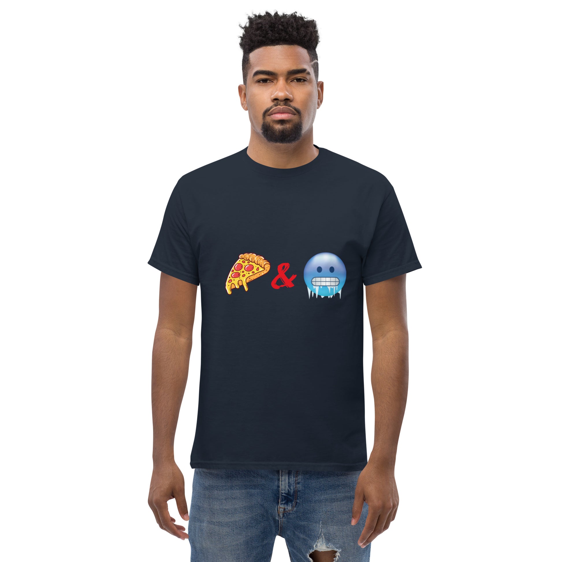 Cook up some laughs with our "Pizza & Chill" Tee, where emojis take center stage to serve you a slice of humor! This shirt, showcases the internet's favorite food-tainment combo: a scrumptious pizza slice and a frosty blue pal exuding those cool, chill-out vibes. The recipe is simple: take one part comfort, one part conversation starter, and a generous helping of playful graphics. This tee is spun from cotton so soft, you'll think you fell into a dough mixer. Ideal for those who pledge allegiance to the pizza party lifestyle and live by the mantra of keeping things breezy. It's not just a piece of clothing; it's the crust to your pizza life. Throw it on and let the world know that you're in the mood for pizza and relaxation – now that's a topping no one can refuse!The 100% cotton men's classic tee will help you land a more structured look. It sits nicely, maintains sharp lines around the edges, and goes perfectly with layered streetwear outfits. Plus, it's extra trendy now!