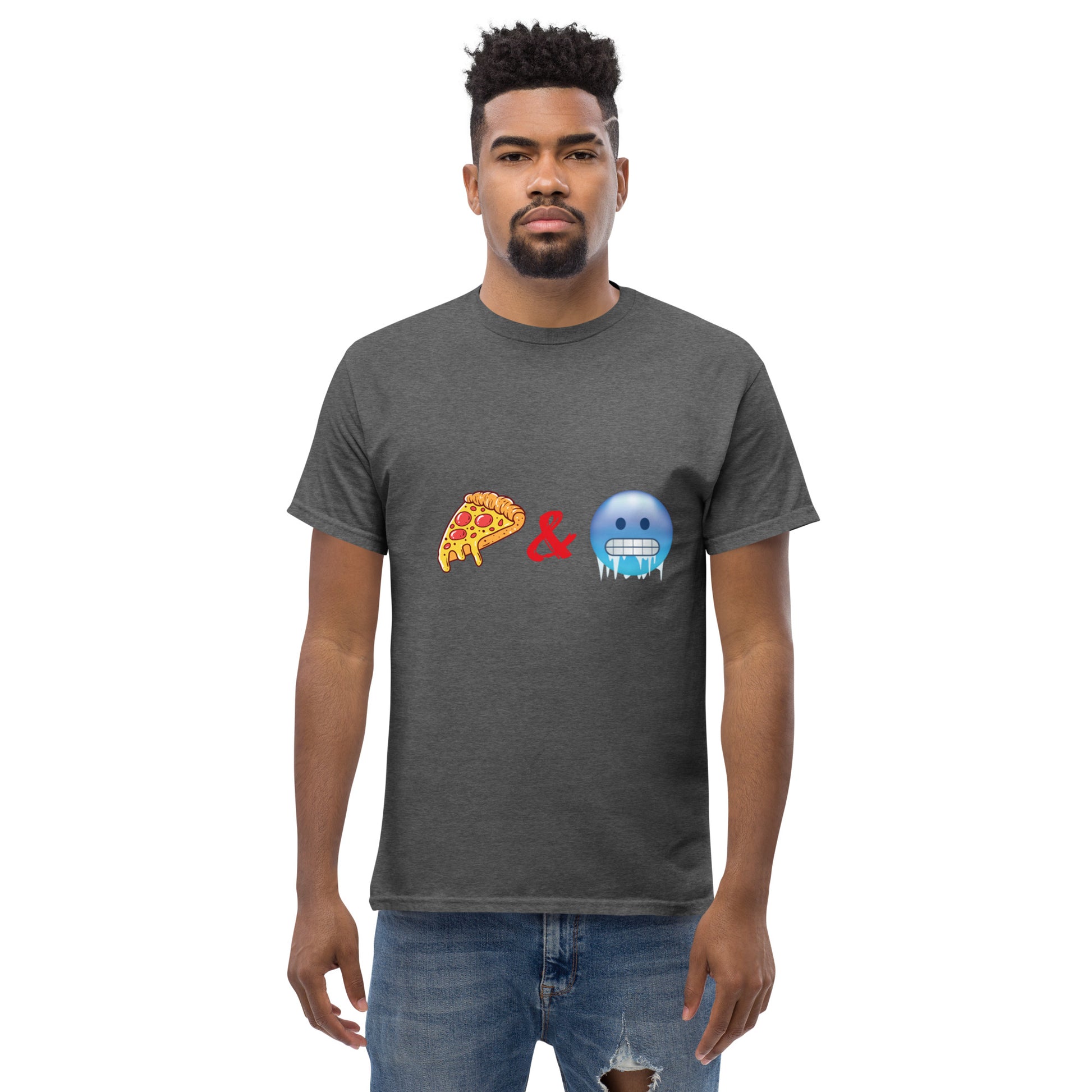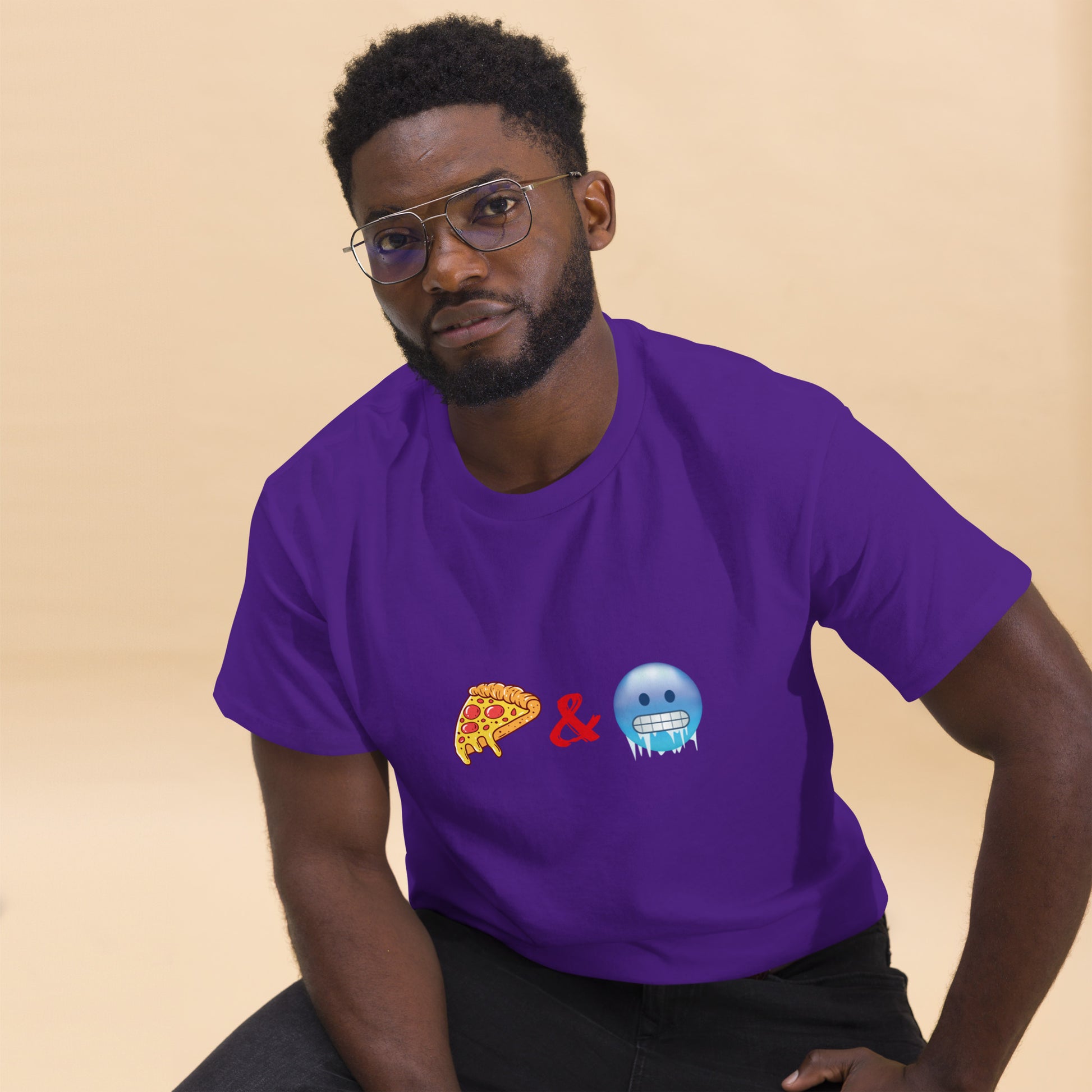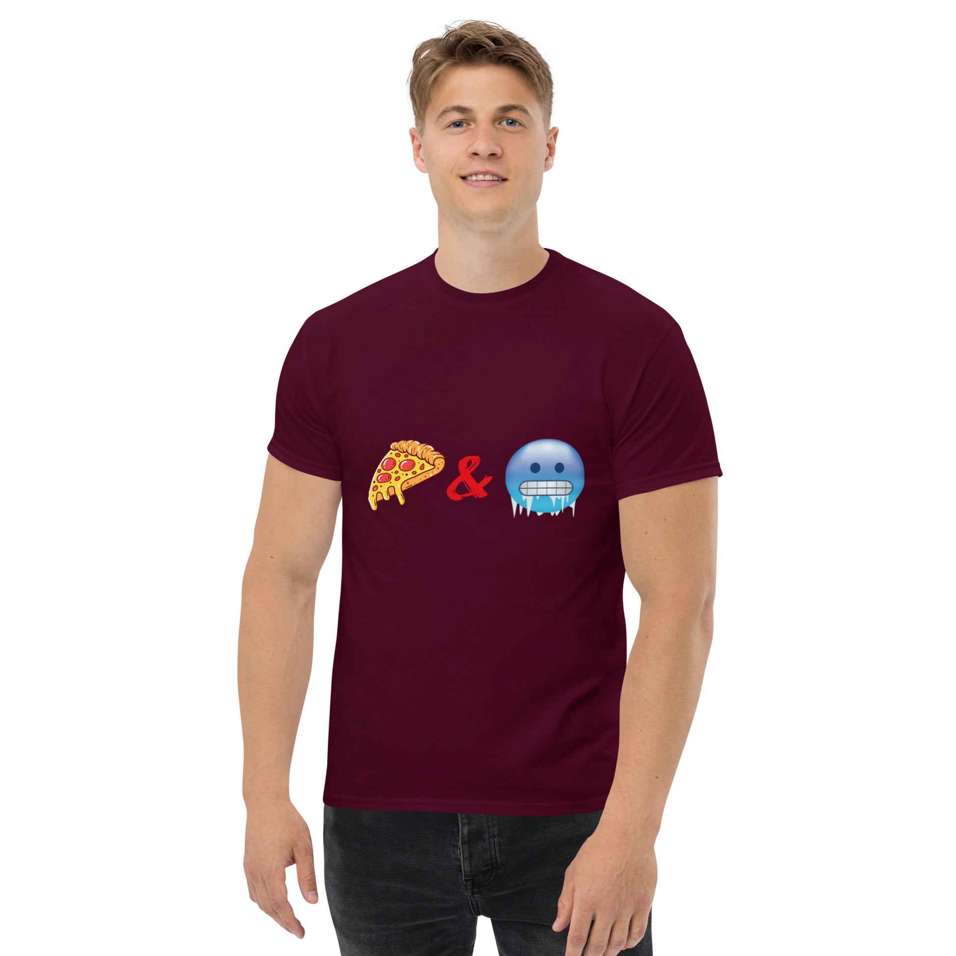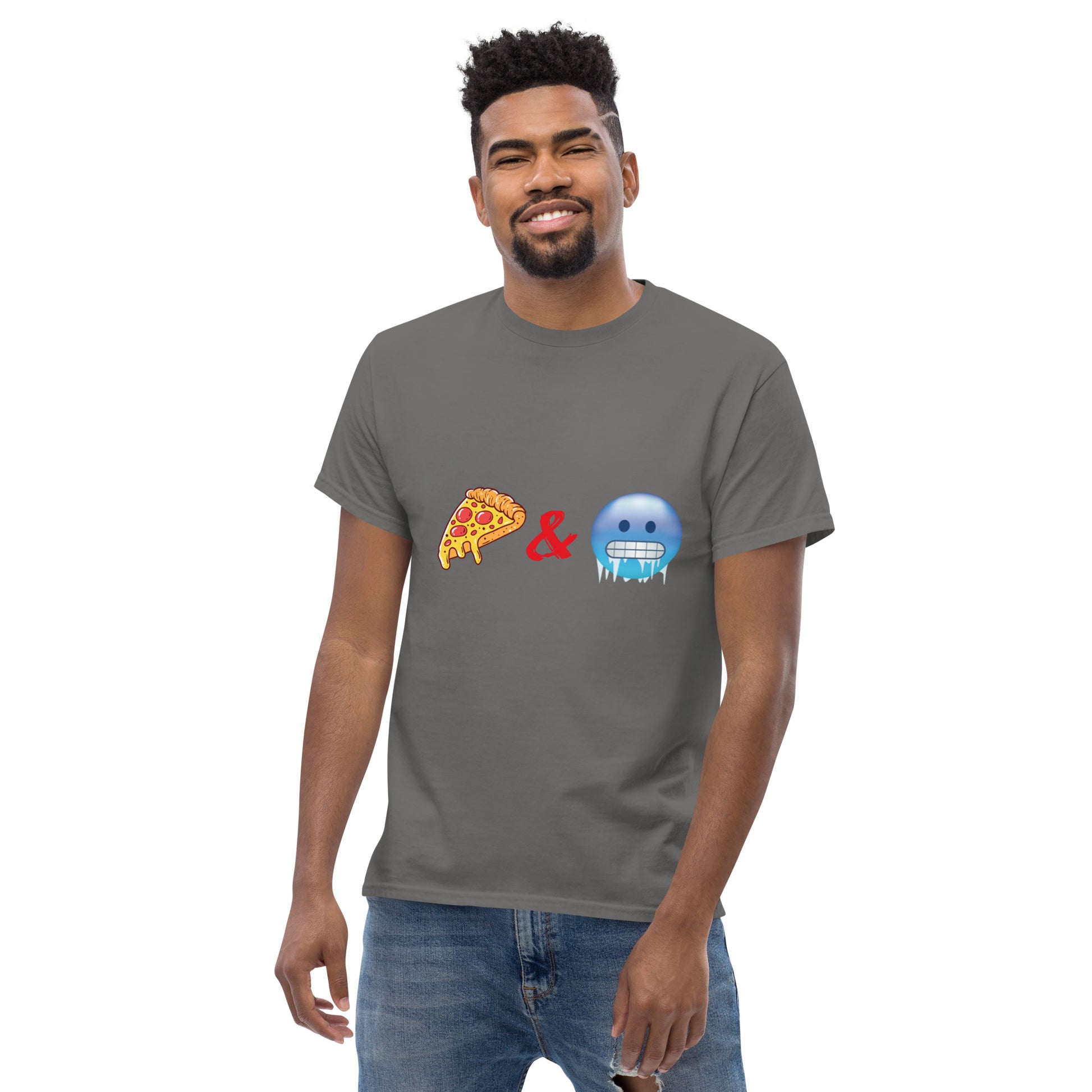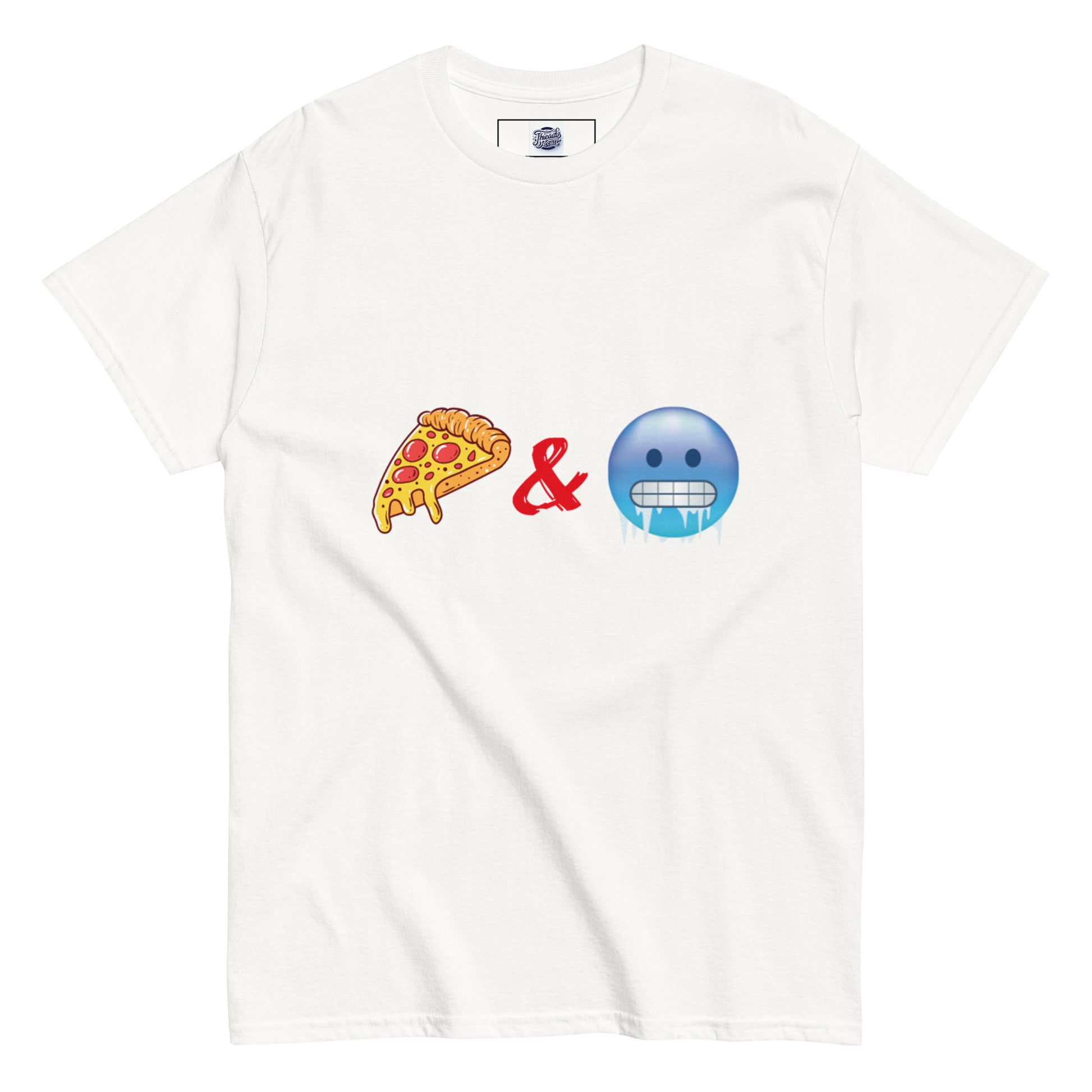Cook up some laughs with our "Pizza & Chill" Tee, where emojis take center stage to serve you a slice of humor! This shirt, showcases the internet's favorite food-tainment combo: a scrumptious pizza slice and a frosty blue pal exuding those cool, chill-out vibes. The recipe is simple: take one part comfort, one part conversation starter, and a generous helping of playful graphics. This tee is spun from cotton so soft, you'll think you fell into a dough mixer. Ideal for those who pledge allegiance to the pizza party lifestyle and live by the mantra of keeping things breezy. It's not just a piece of clothing; it's the crust to your pizza life. Throw it on and let the world know that you're in the mood for pizza and relaxation – now that's a topping no one can refuse!The 100% cotton men's classic tee will help you land a more structured look. It sits nicely, maintains sharp lines around the edges, and goes perfectly with layered streetwear outfits. Plus, it's extra trendy now!
