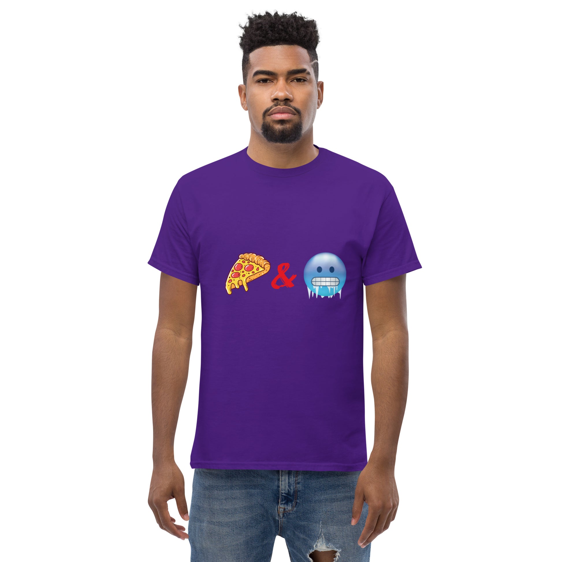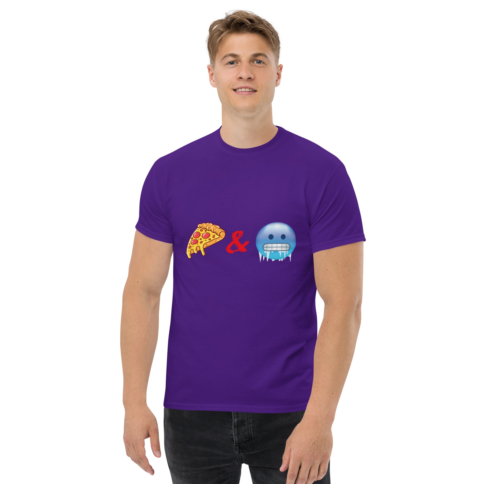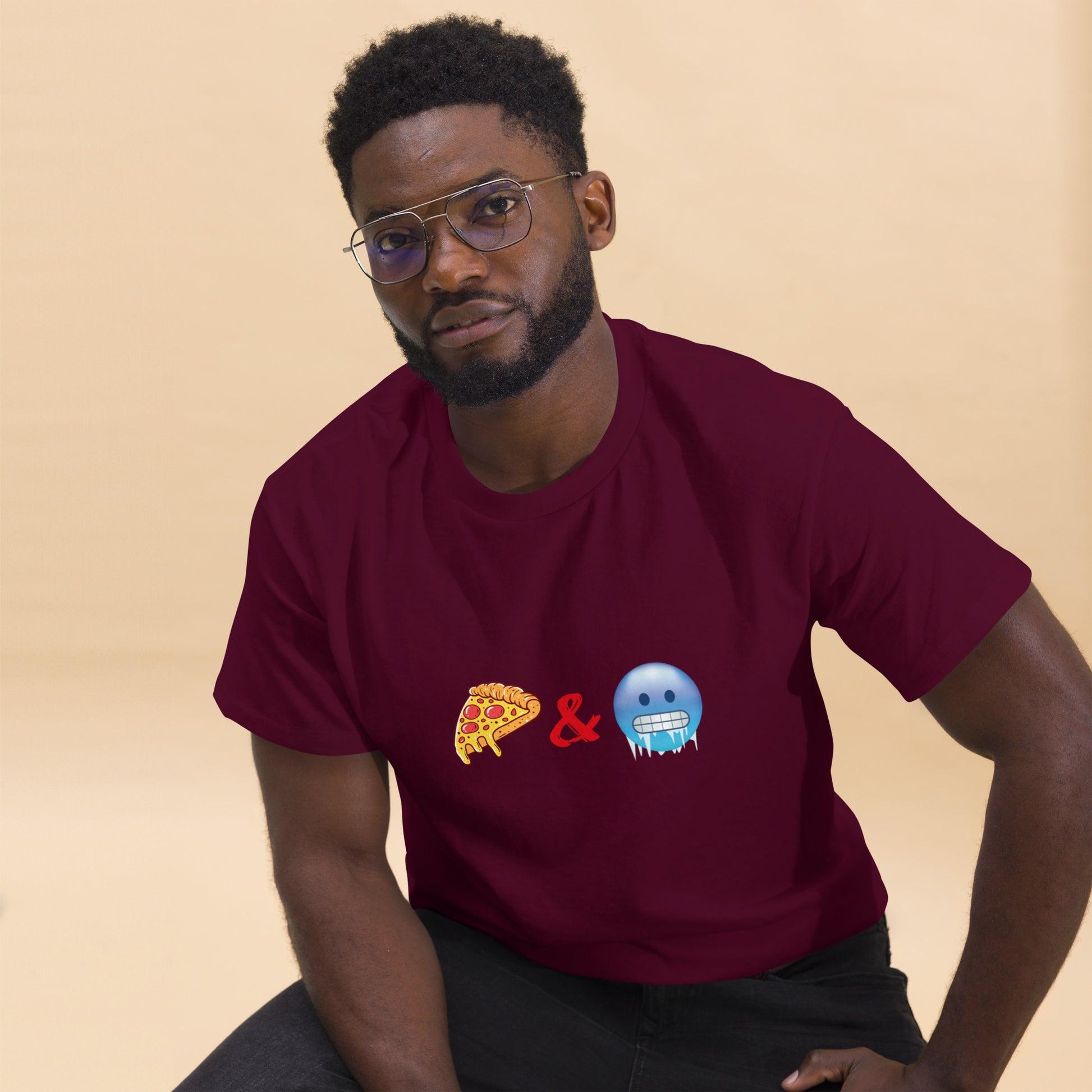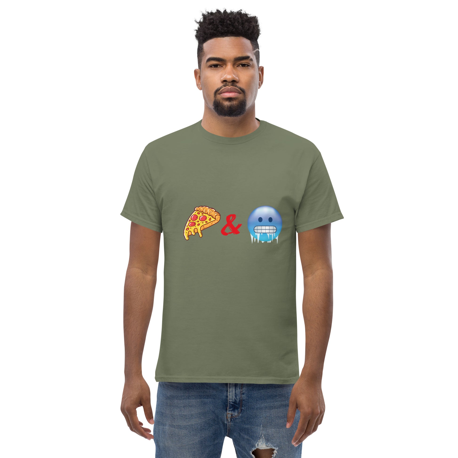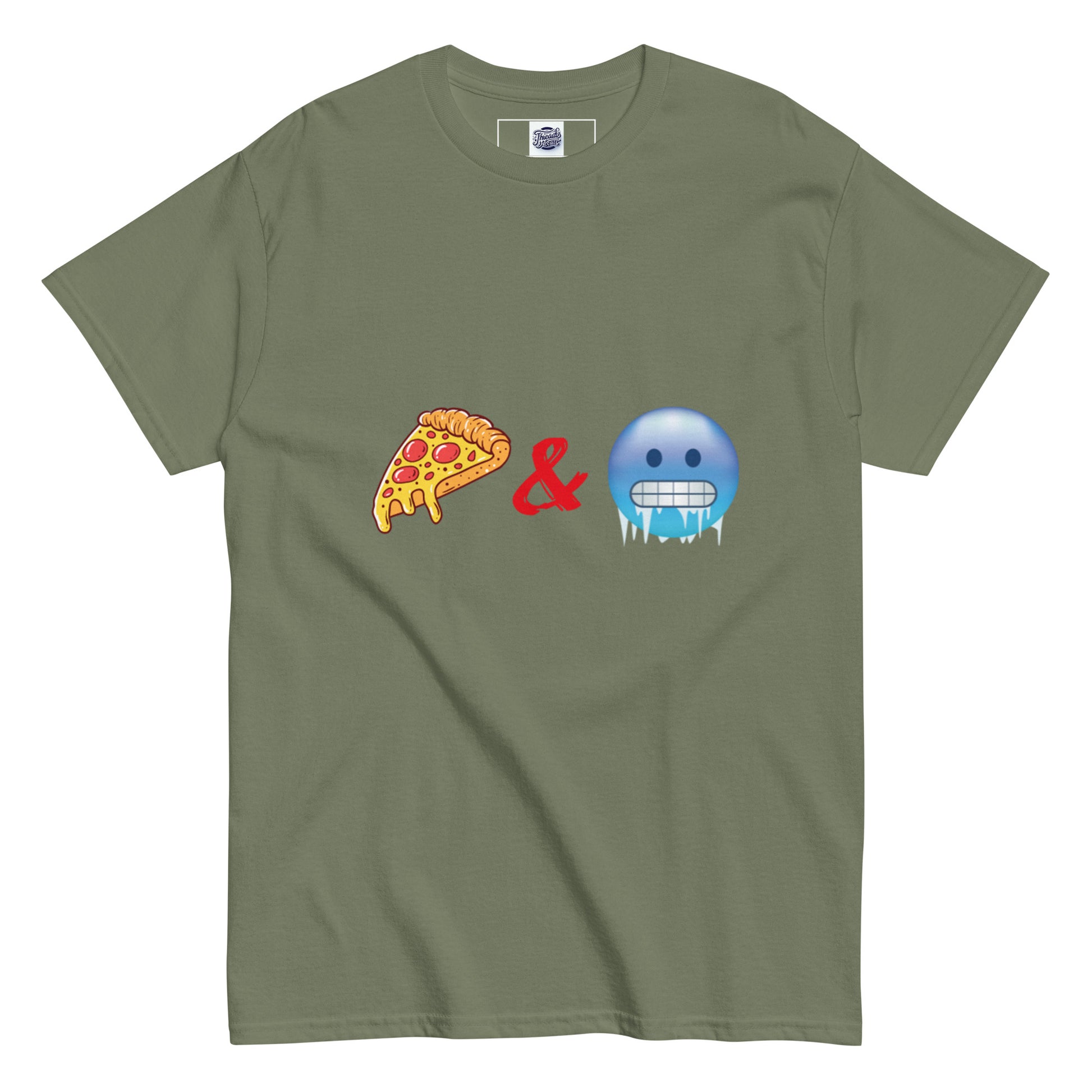Cook up some laughs with our "Pizza & Chill" Tee, where emojis take center stage to serve you a slice of humor! This shirt, showcases the internet's favorite food-tainment combo: a scrumptious pizza slice and a frosty blue pal exuding those cool, chill-out vibes. The recipe is simple: take one part comfort, one part conversation starter, and a generous helping of playful graphics. This tee is spun from cotton so soft, you'll think you fell into a dough mixer. Ideal for those who pledge allegiance to the pizza party lifestyle and live by the mantra of keeping things breezy. It's not just a piece of clothing; it's the crust to your pizza life. Throw it on and let the world know that you're in the mood for pizza and relaxation – now that's a topping no one can refuse!The 100% cotton men's classic tee will help you land a more structured look. It sits nicely, maintains sharp lines around the edges, and goes perfectly with layered streetwear outfits. Plus, it's extra trendy now!