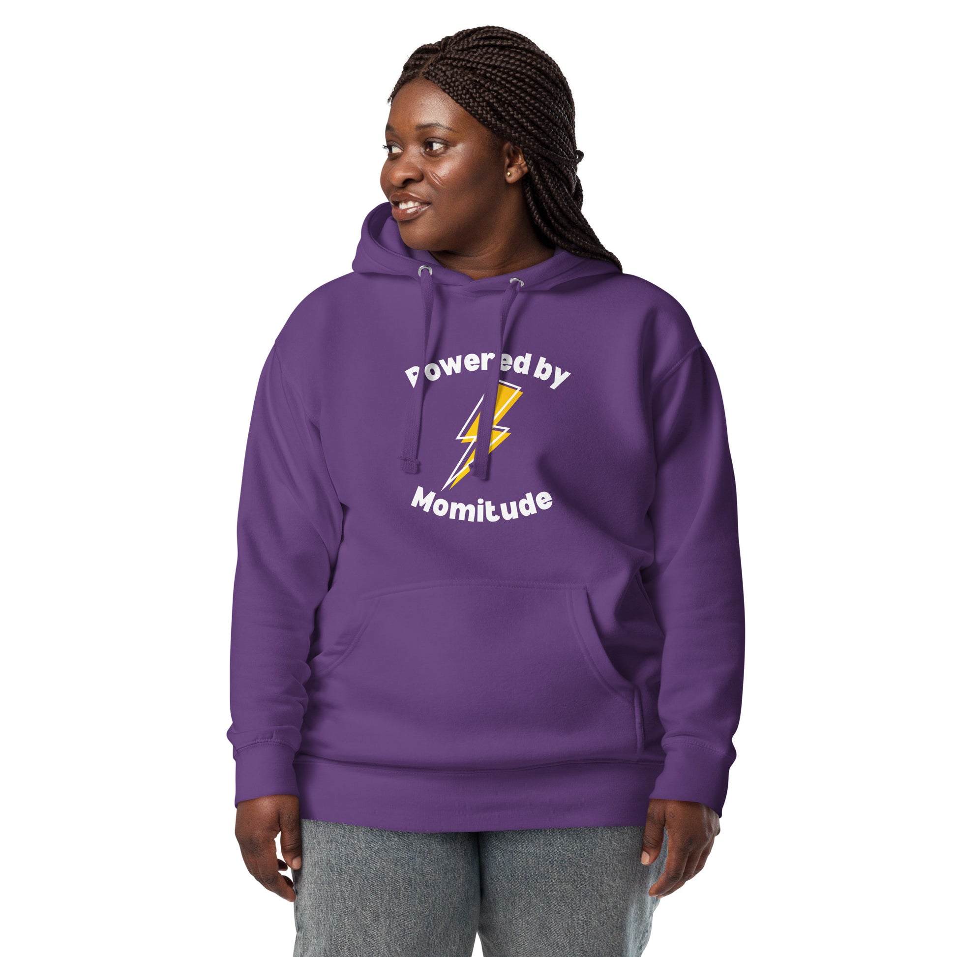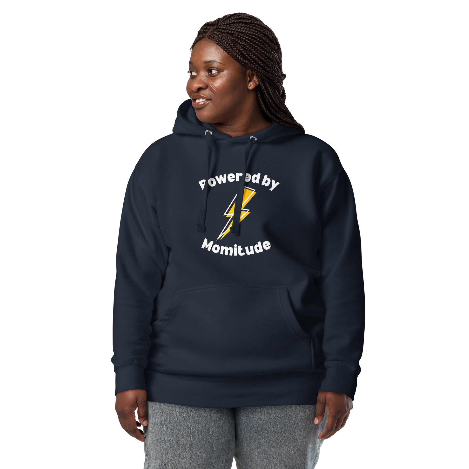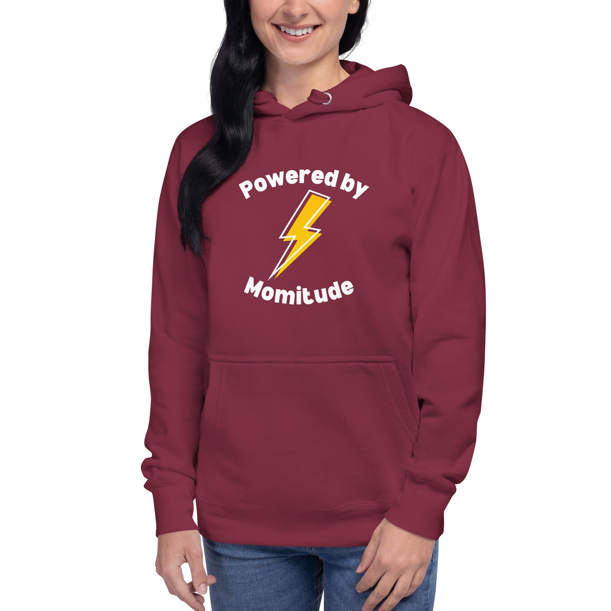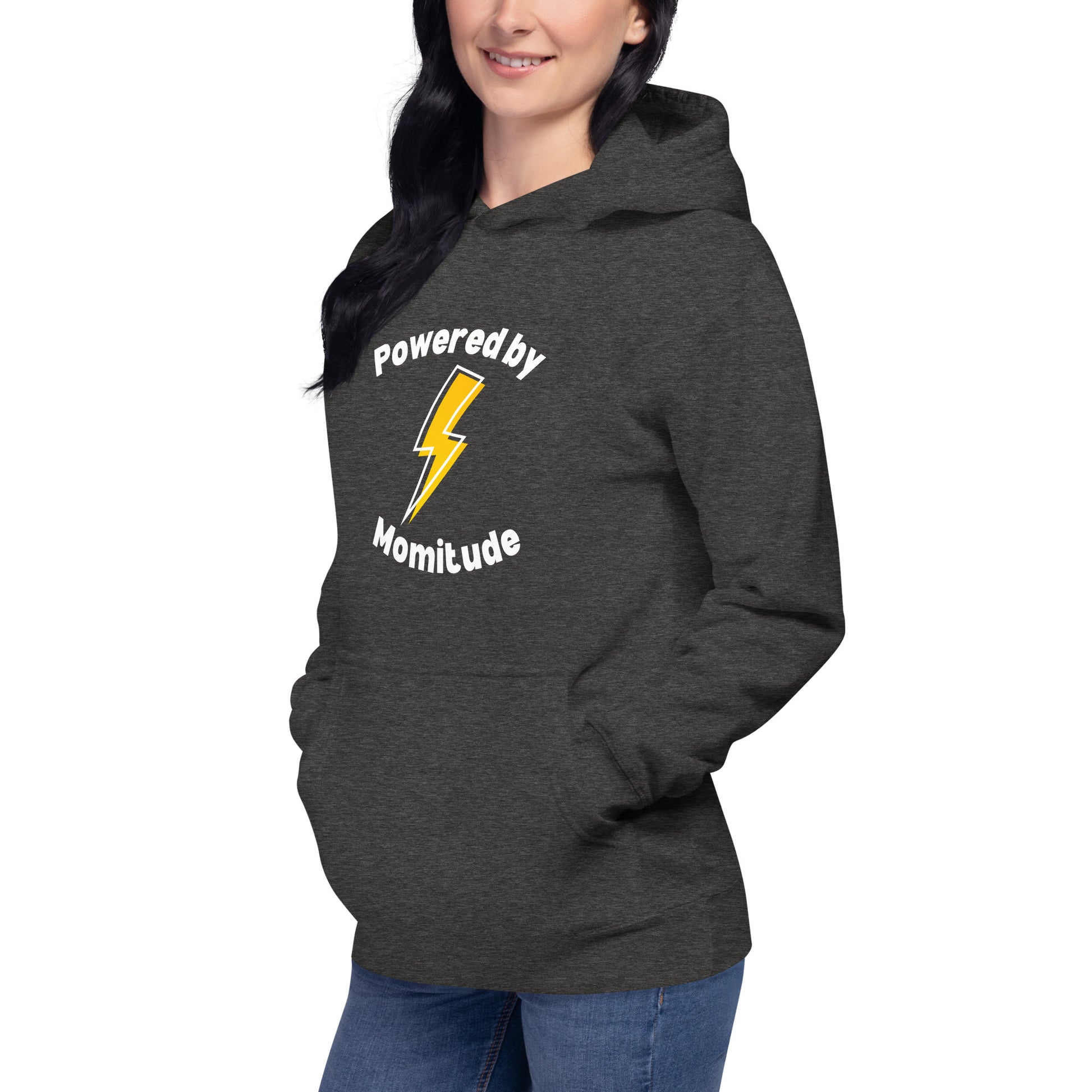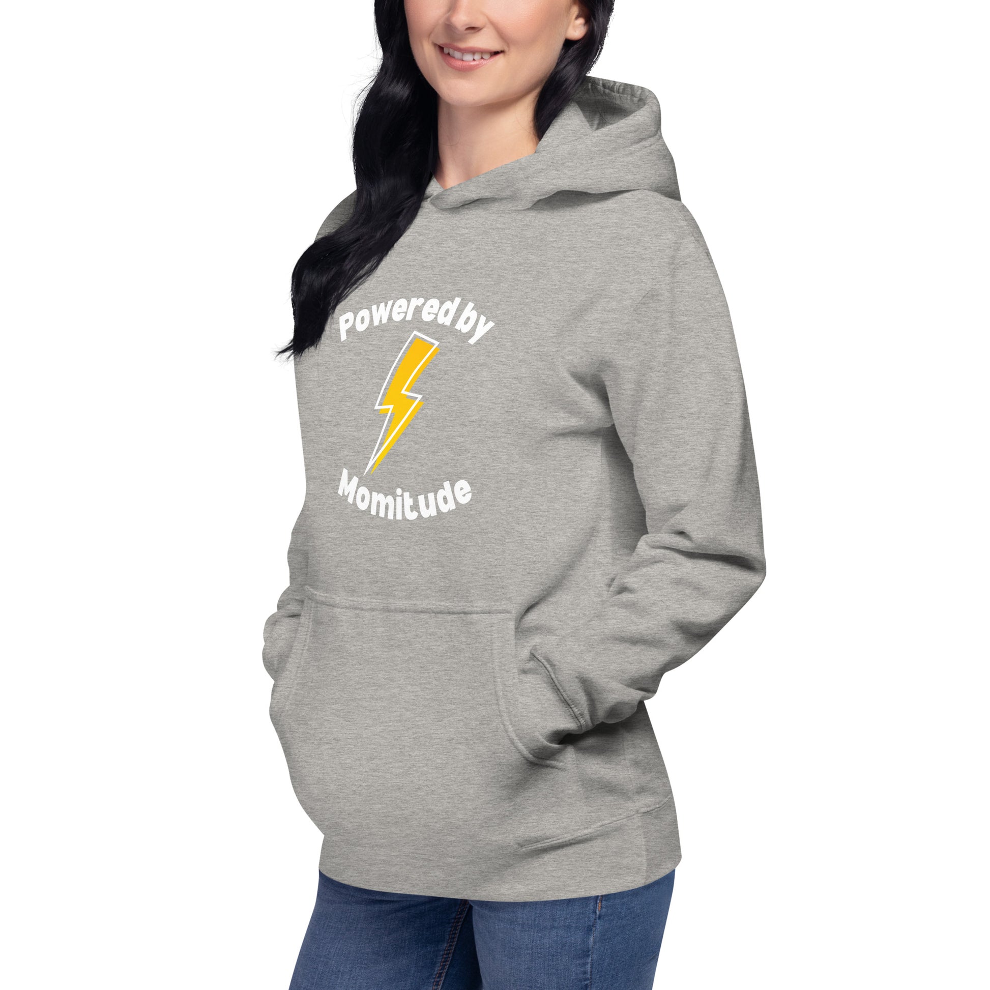 Wrap yourself in warmth and mom power with our "Powered by Momitude" Hoodie! Designed for the unstoppable mom on the go, this cozy hoodie features a bold lightning bolt that captures the essence of motherhood's strength. Its soft lining ensures warmth and comfort during those busy days. With a convenient front pocket and an adjustable hood, it's the ultimate combination of functionality and mom-inspired style. Who knew that the softest hoodie you'll ever own comes with such a cool design. You won't regret buying this classic streetwear piece of apparel with a convenient pouch pocket and warm hood for chilly evenings.