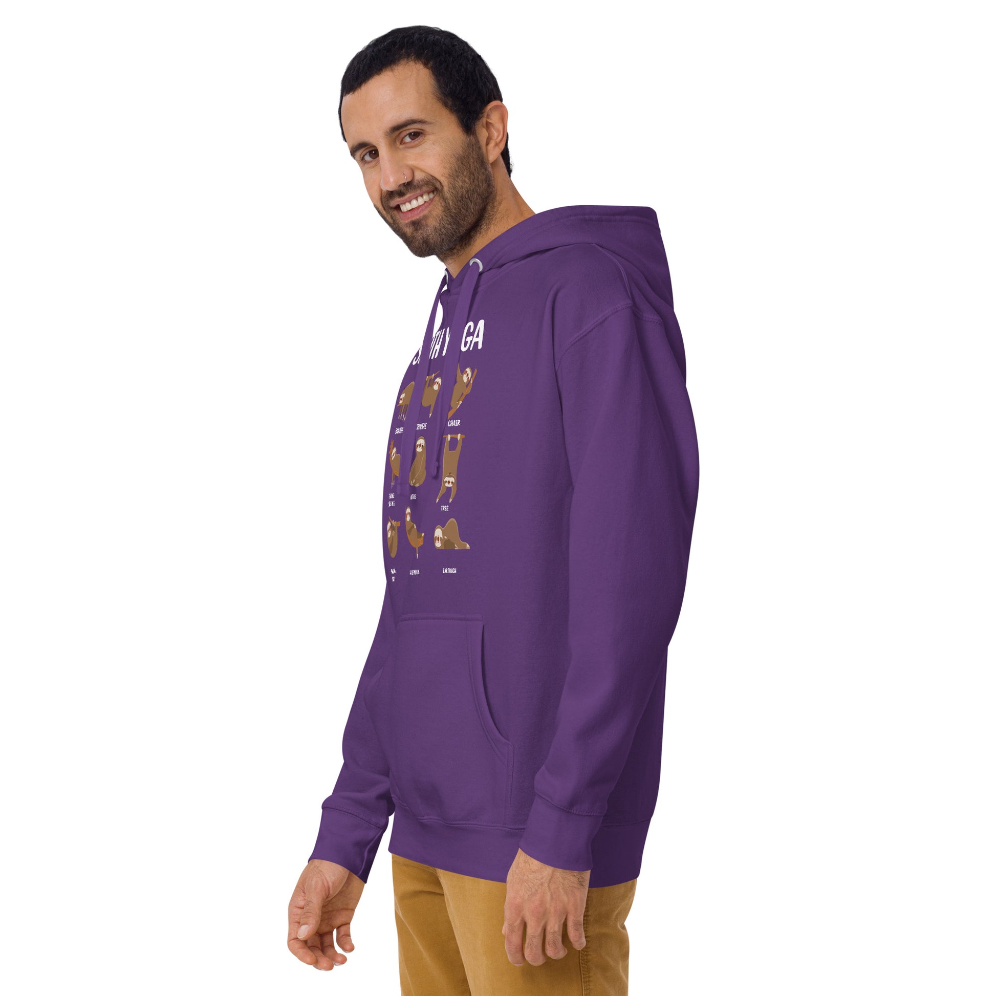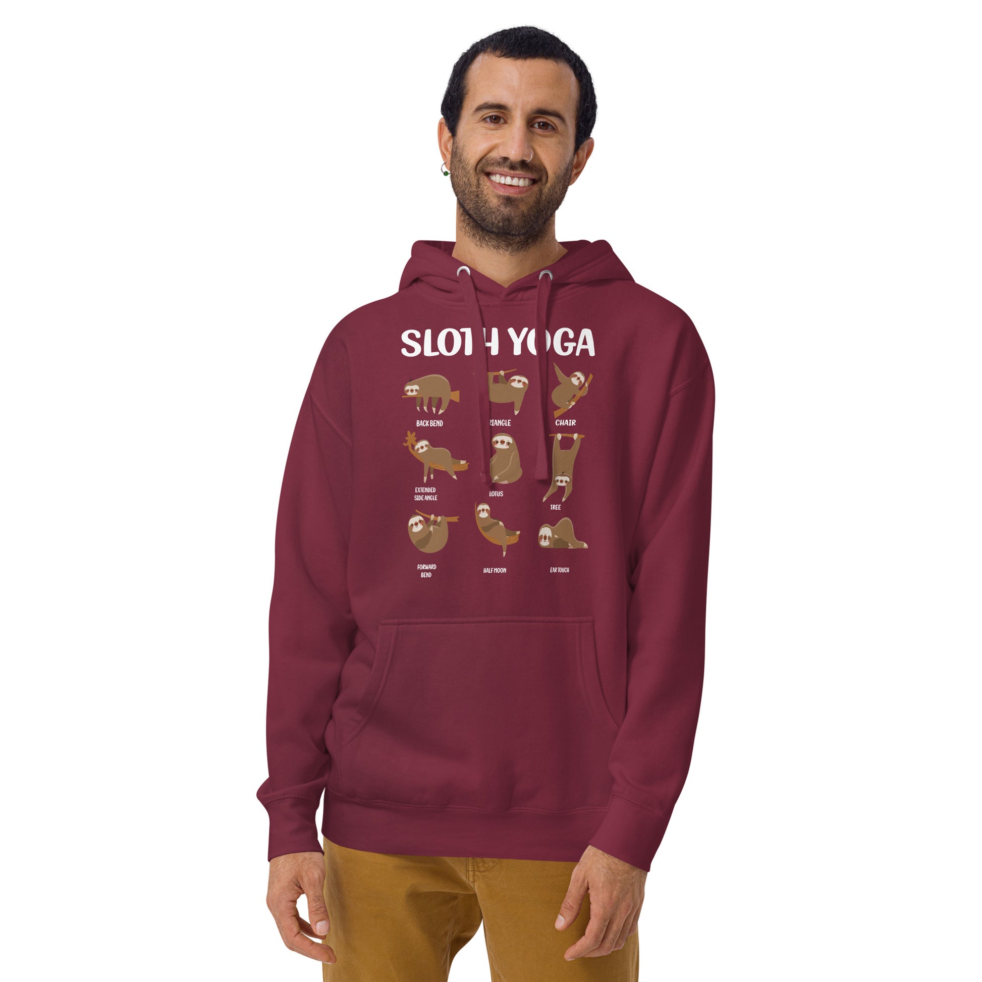 Introducing the Sloth Asana Hoodie, the perfect fit for anyone who believes in taking life one breath (or nap) at a time. This hoodie doesn’t rush – it’s in it for the long, relaxed stretch. Adorned with the chillest yoga master of the animal kingdom, it's a hilarious homage to taking things slow. Each pose demonstrates the art of the 'stretch-and-snooze,' making it ideal for those leisurely days or a lighthearted yoga session. Embrace your inner sloth and let your fashion reflect your zen spirit with a dose of humor. It's not just a hoodie; it's your chill vibe in wearable form. Who knew that the softest hoodie you'll ever own comes with such a cool design. You won't regret buying this classic streetwear piece of apparel with a convenient pouch pocket and warm hood for chilly evenings.