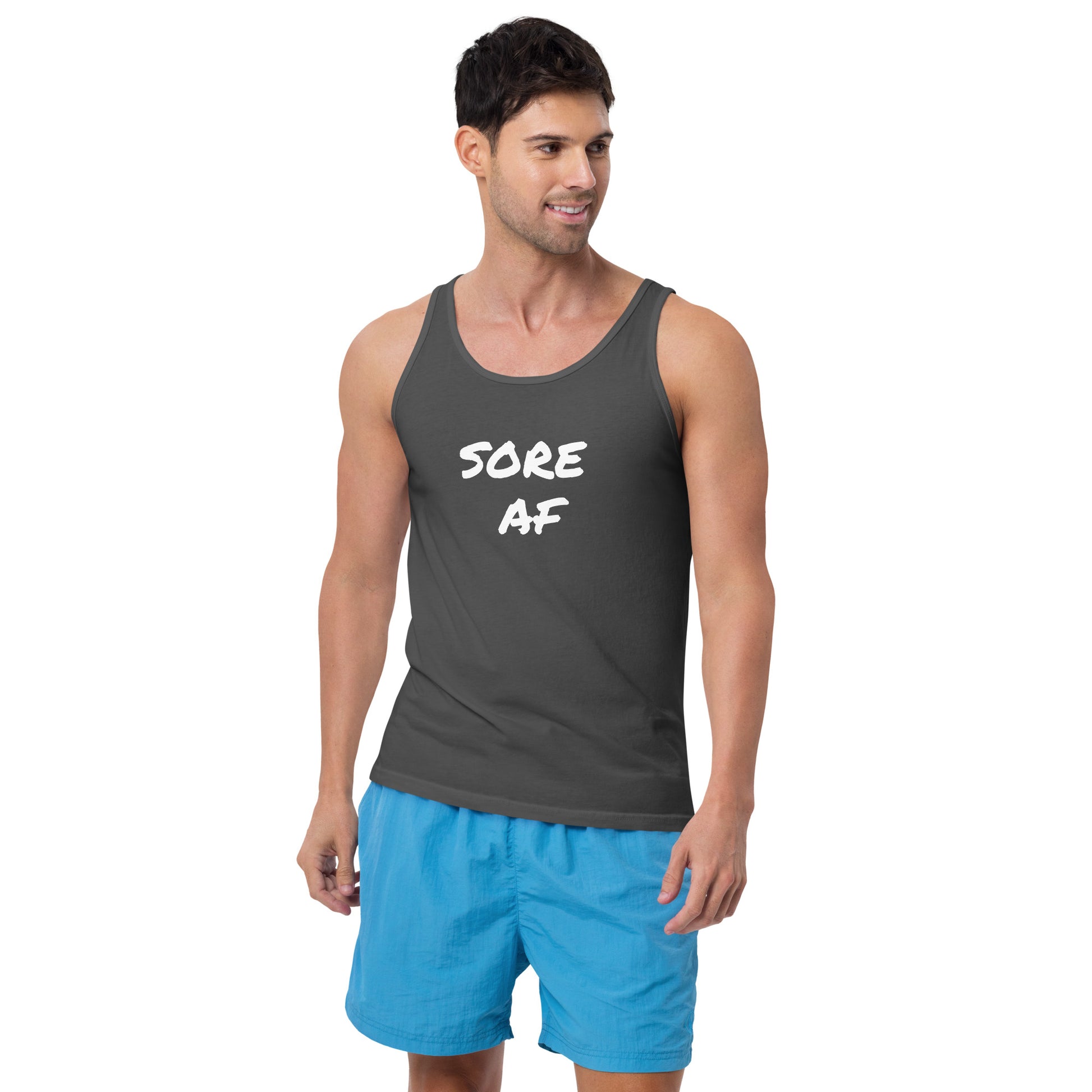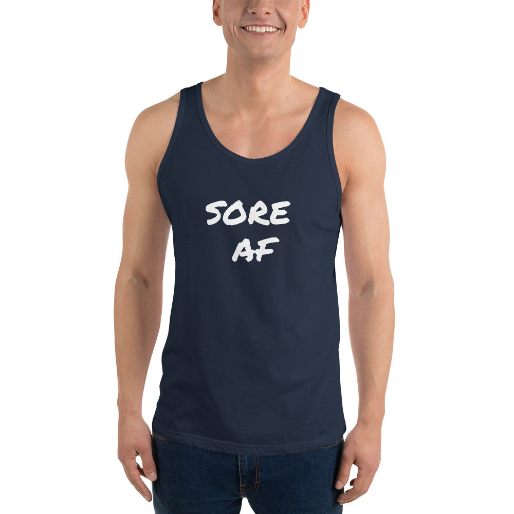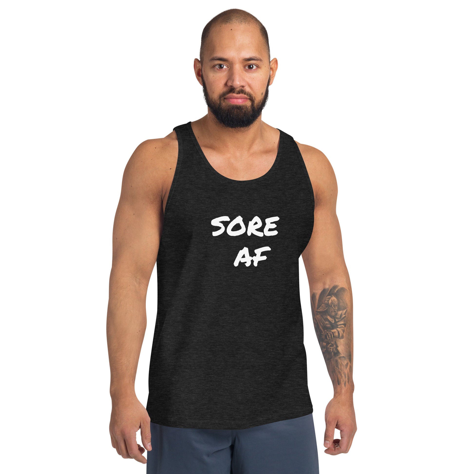 This "Sore AF" tank top is perfect for those hard-core workout days that leave you feeling the burn, or simply as a casual, humorous nod to the pains of staying fit. Its versatile and breathable design makes it ideal for both intense gym sessions and relaxed post-workout hangoutsA classic, staple tank top. A timeless classic intended for anyone looking for great quality and softness.