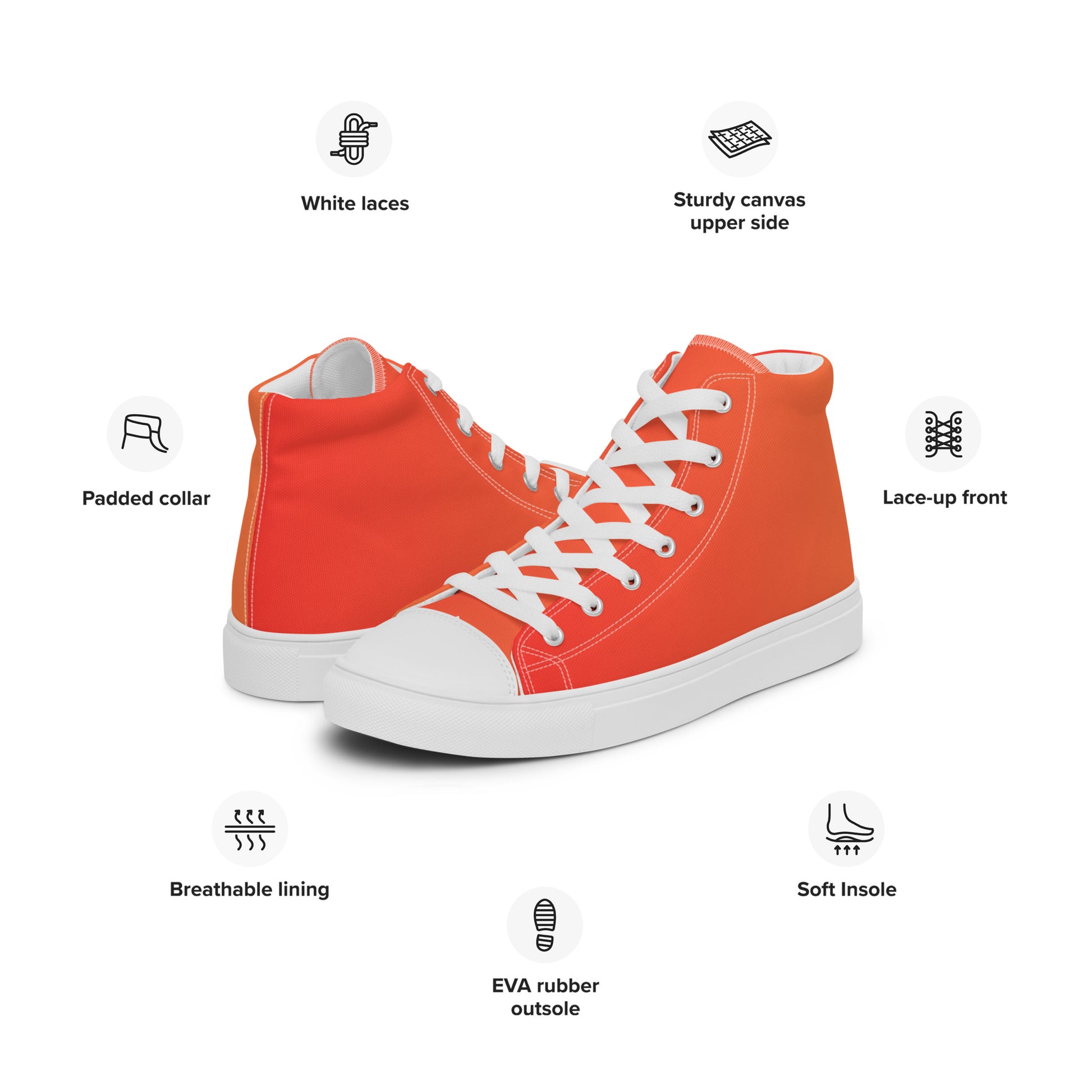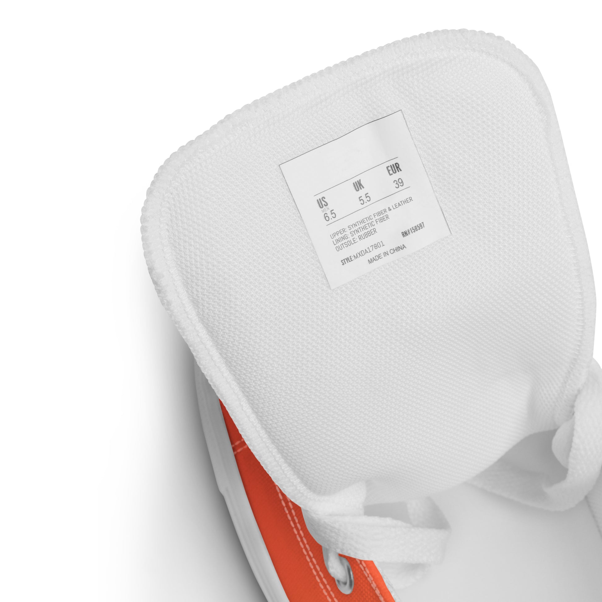 Step up your shoe game with the Tangerine Twirl Hi-Tops, blending the comfort of a sneaker with the style of a boot. The rich tangerine shade adds a playful spin to the classic hi-top design, ensuring you'll be the center of attention. Constructed with durable materials, a cushioned ankle collar, and a strong rubber sole, these hi-tops offer support whether you're on the skate park or the city streets. Don’t forget to treat your feet with care! The classic, stylish high top canvas shoes will be a great addition to your wardrobe.