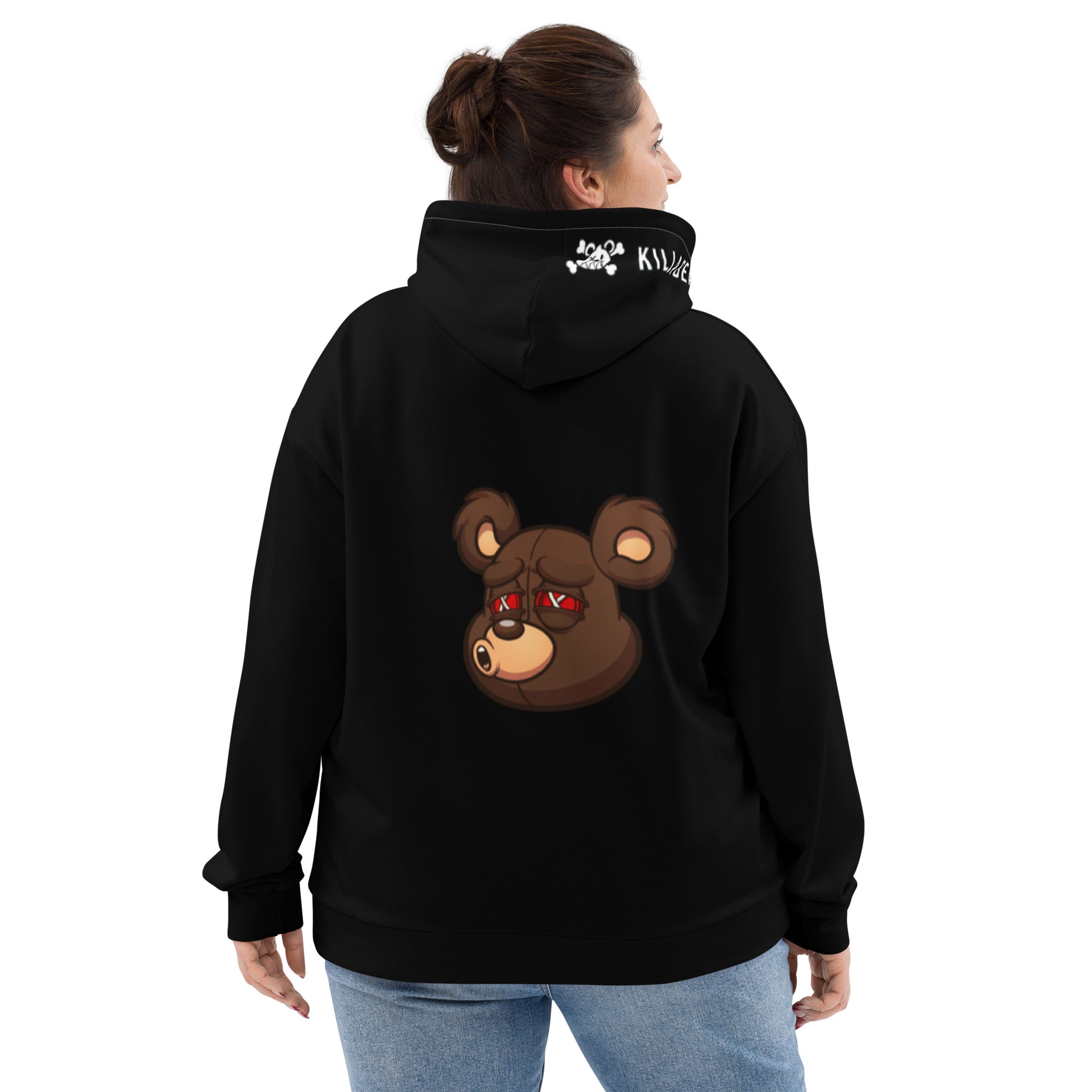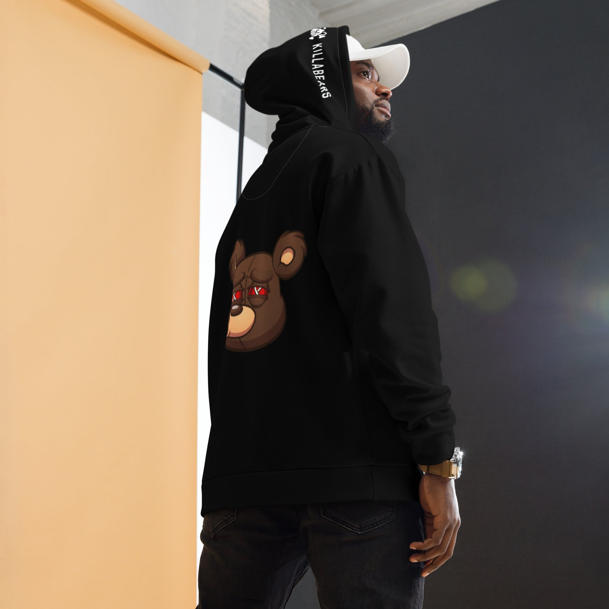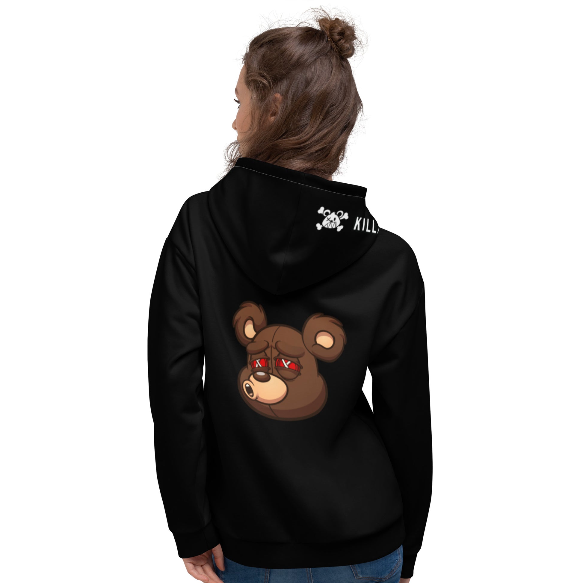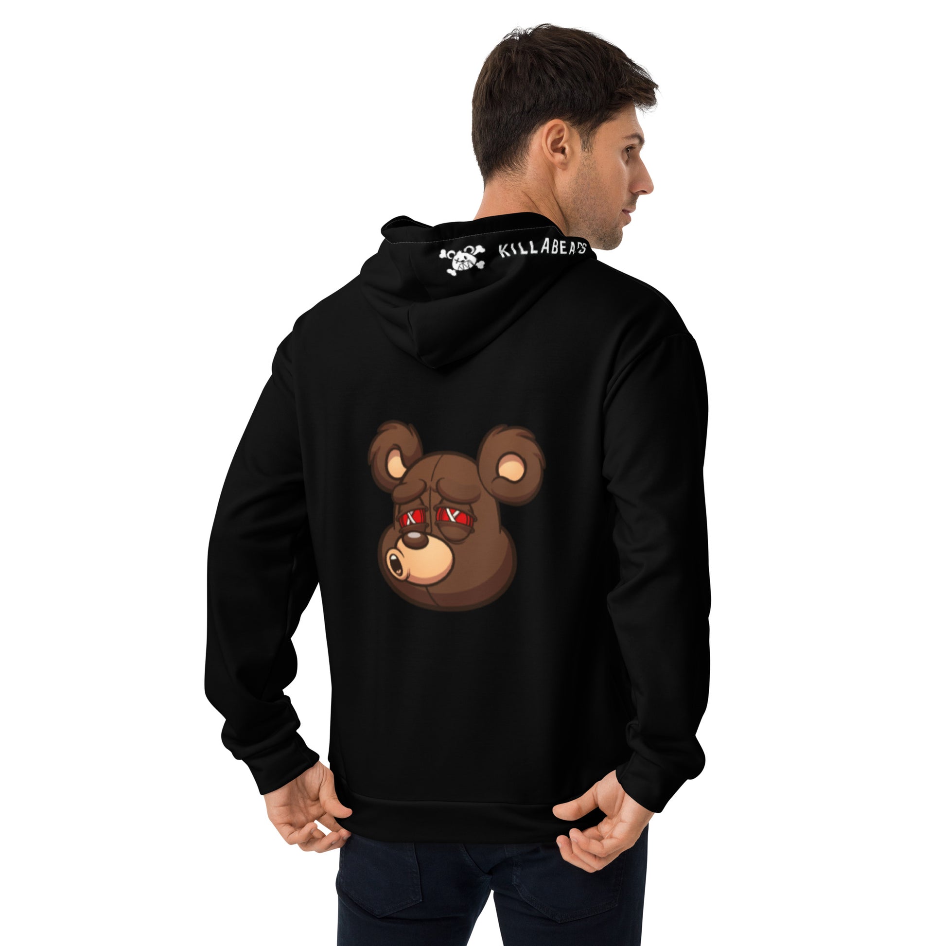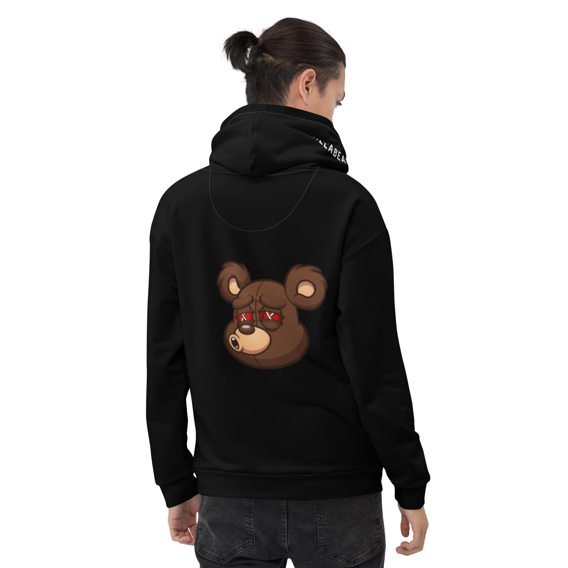 This sleek and stylish hoodie that features a unique "KillaBear 2216" emblem on both the front and back. The front showcases the emblem on the chest, while the back displays a larger, more prominent version for added impact. This comfortable and fashionable hoodie is designed to make a statement with its distinctive bear graphic that combines urban cool with a touch of whimsy.This comfy unisex hoodie has a soft outside with a vibrant print and an even softer brushed fleece inside. The hoodie has a relaxed fit, and it’s perfect for wrapping yourself into on a chilly evening.